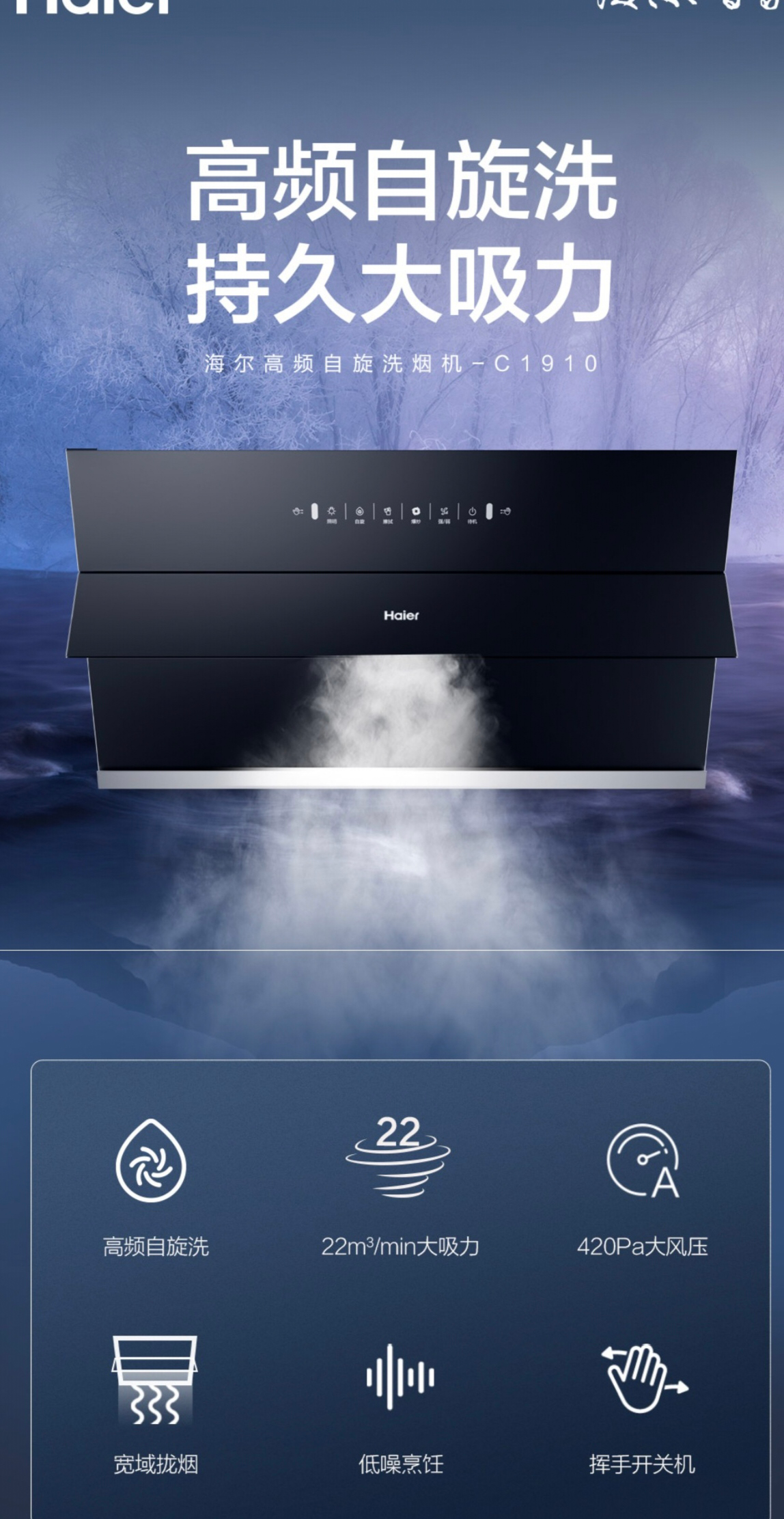 海尔 CXW-258-C1910 油烟机高频自旋洗持久大吸力