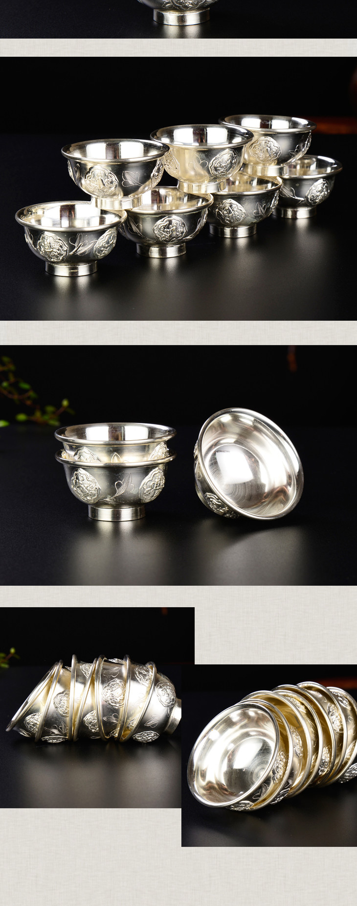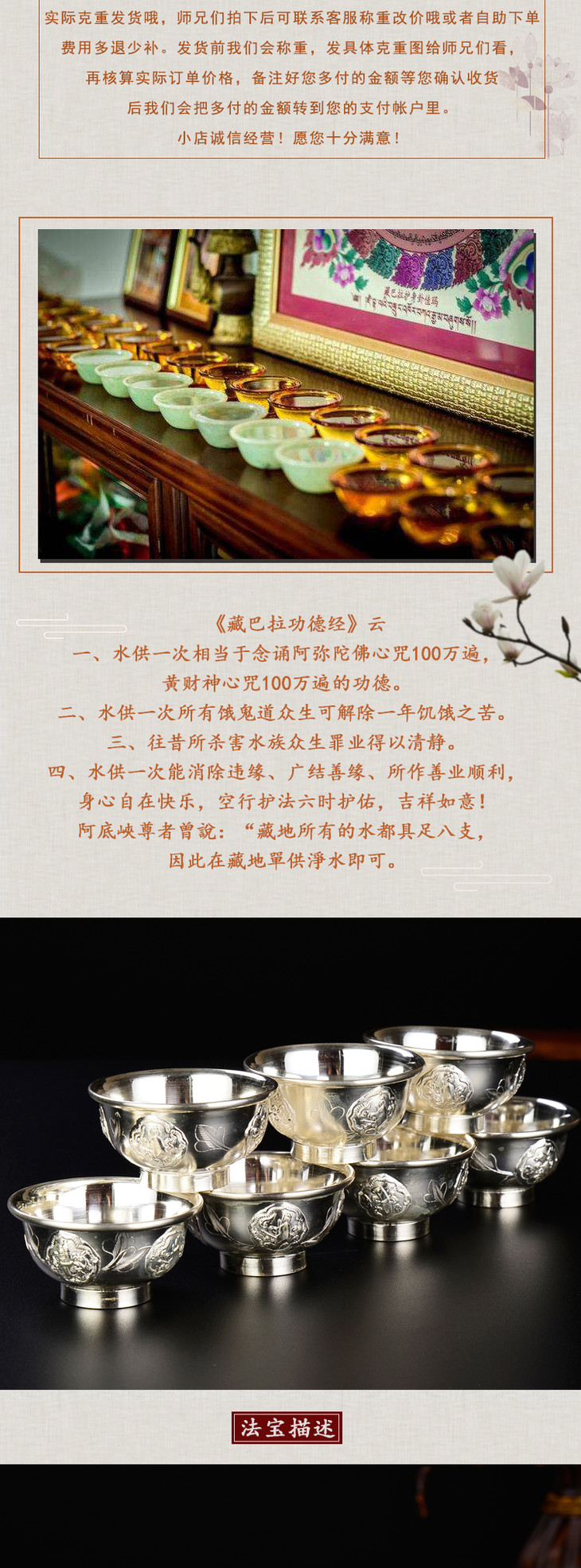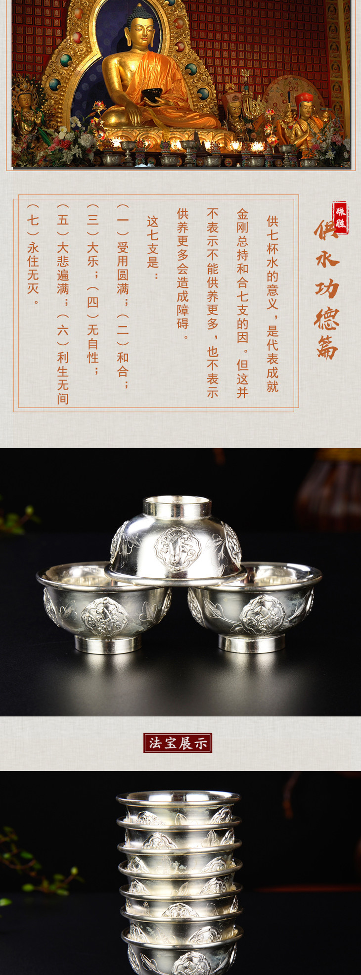 藏传密宗 足银纯银刻花供水七供杯净水碗供水碗/净水碗6公分1个链接
