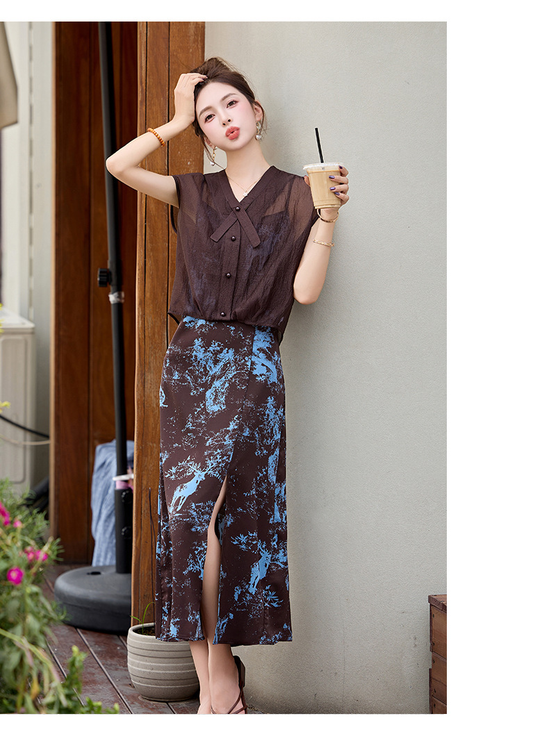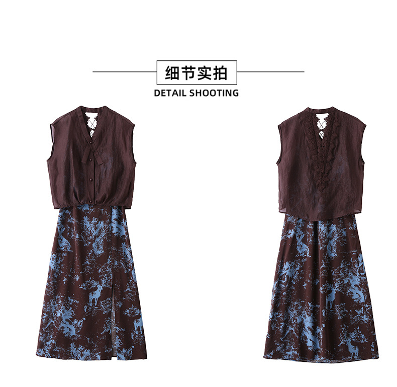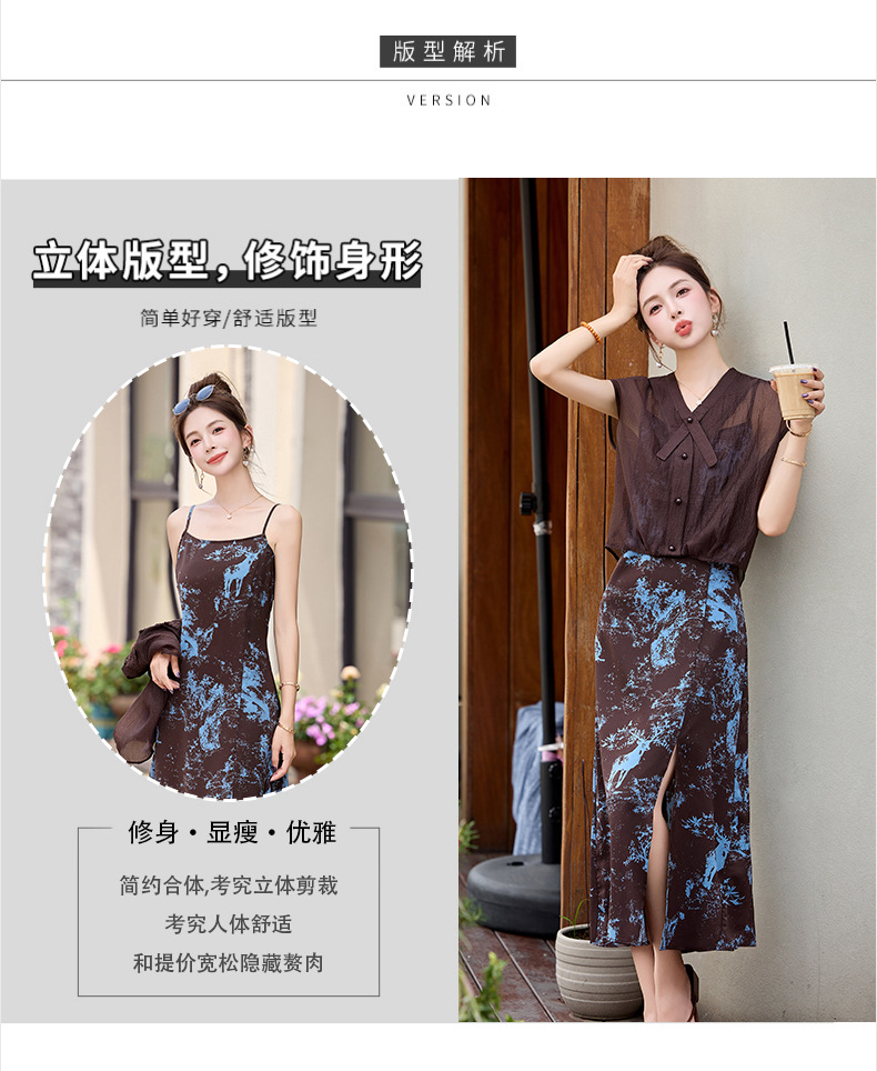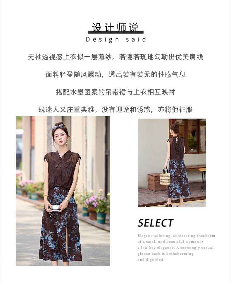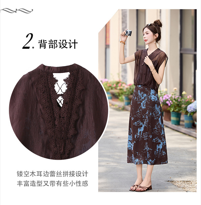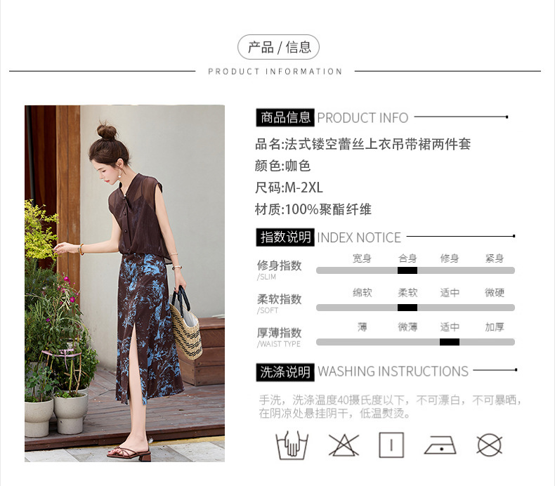 法式镂空,蕾丝上衣吊带裙两件套HR-X1017