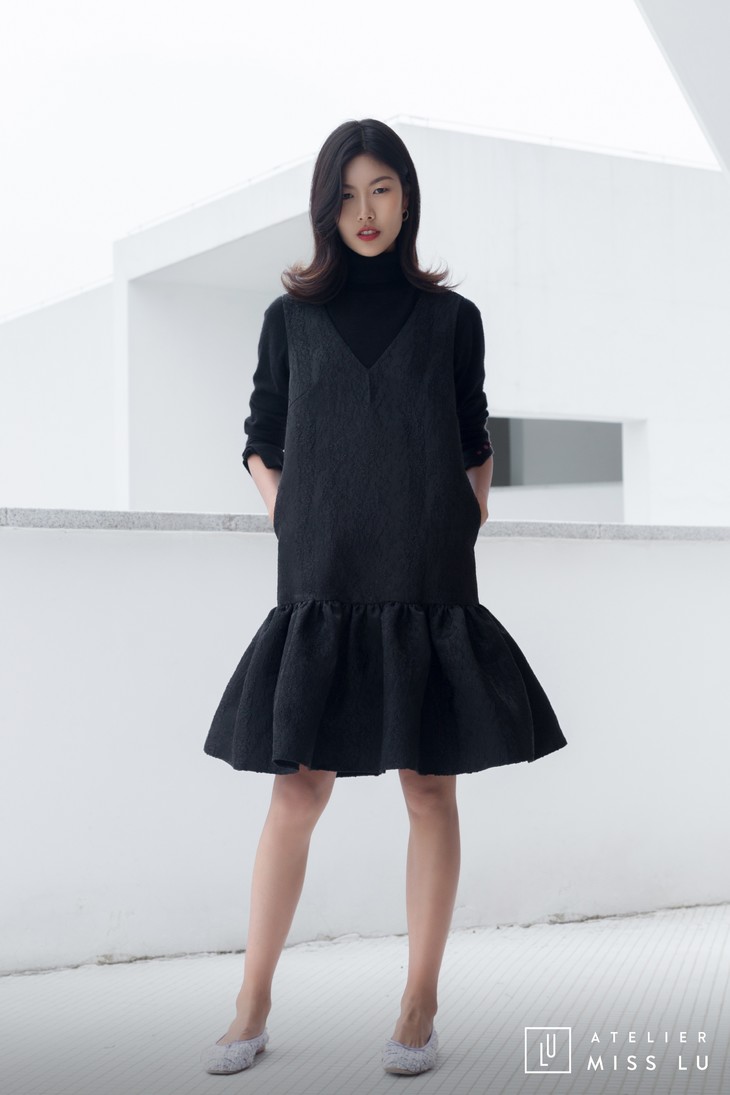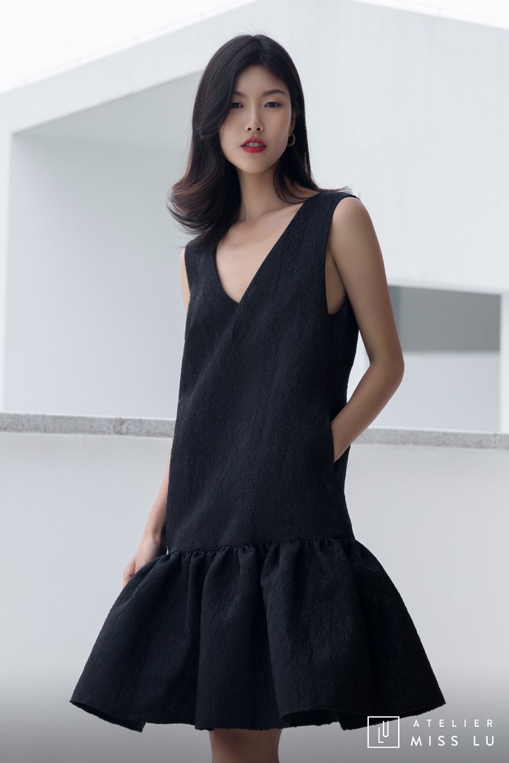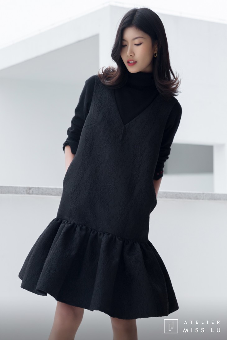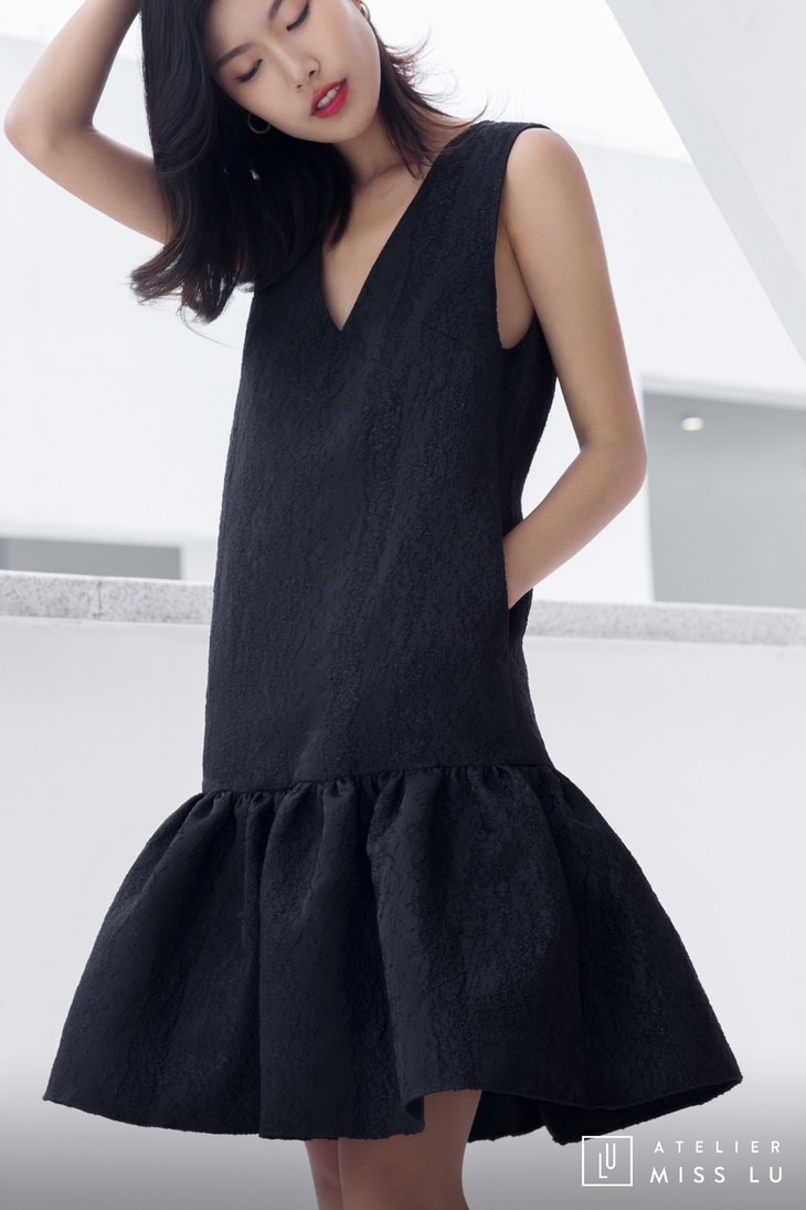AtelierMissLu / Christy -黑色下摆褶皱装饰背心裙