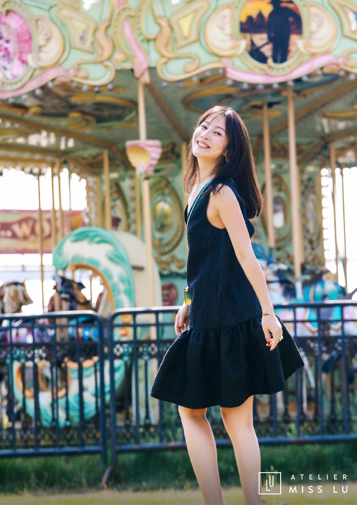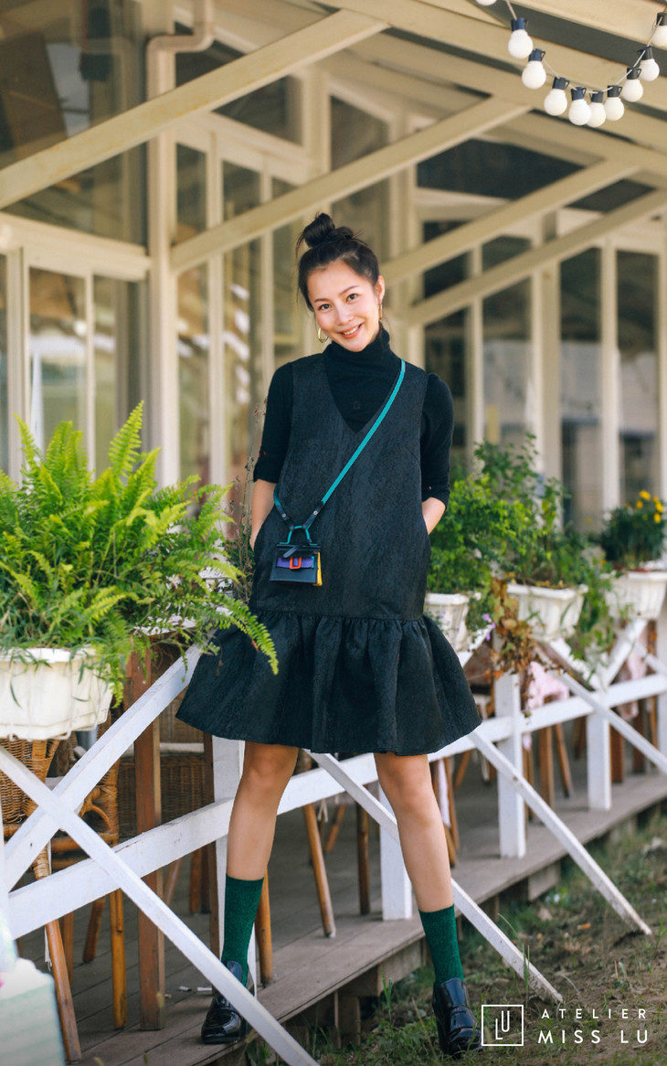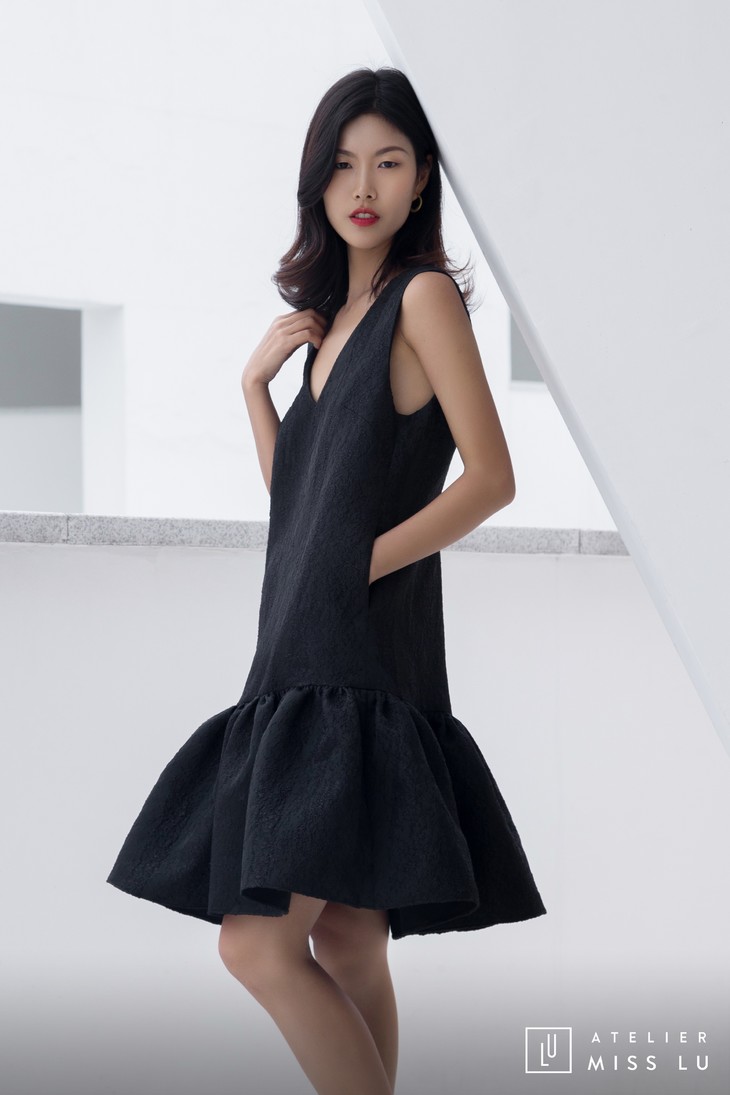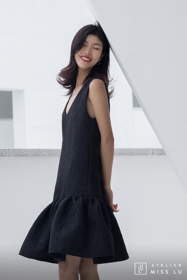 AtelierMissLu / Christy -黑色下摆褶皱装饰背心裙