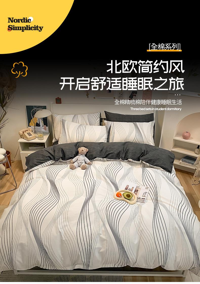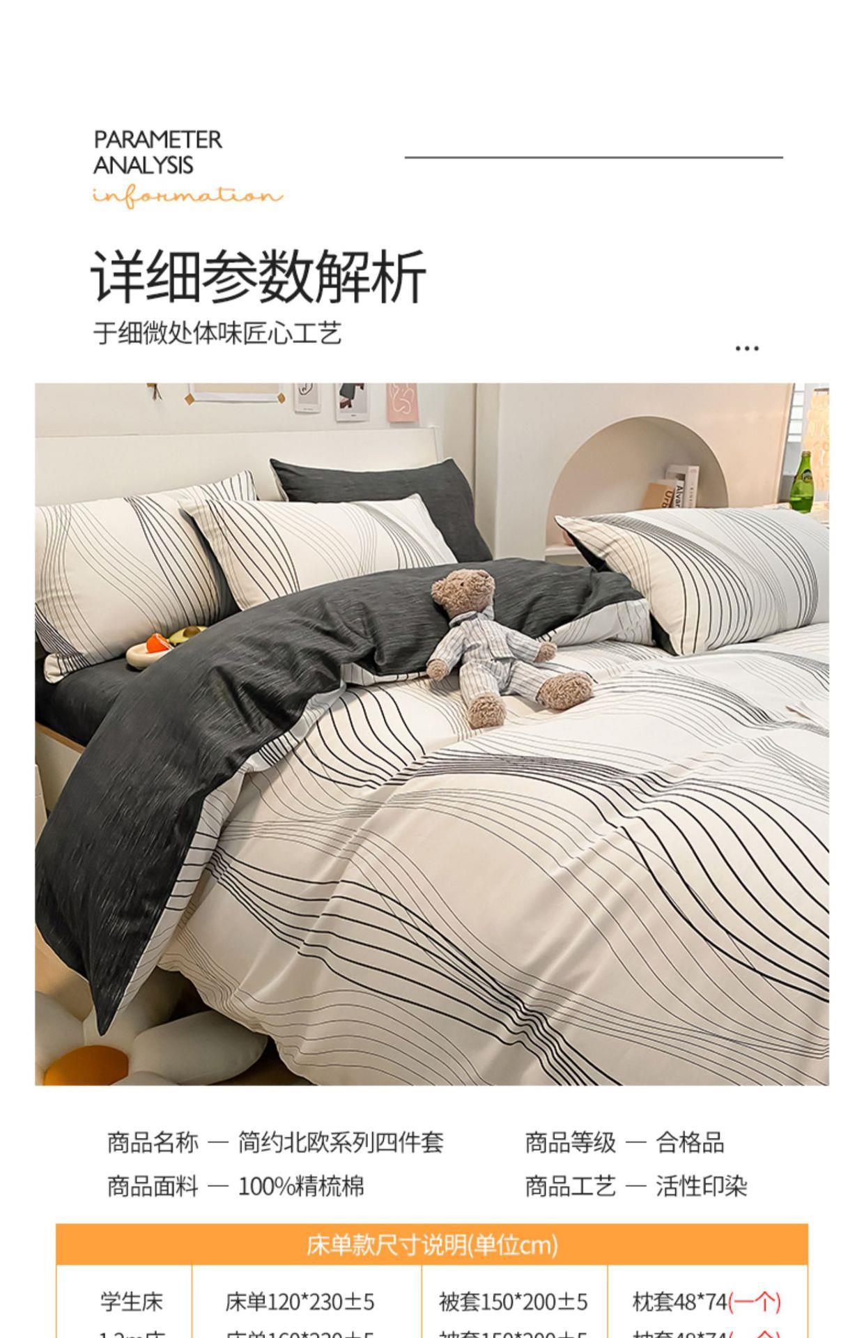 严选北欧简约ins轻奢四件套全棉纯棉床上用品被罩被套床笠宿舍4三