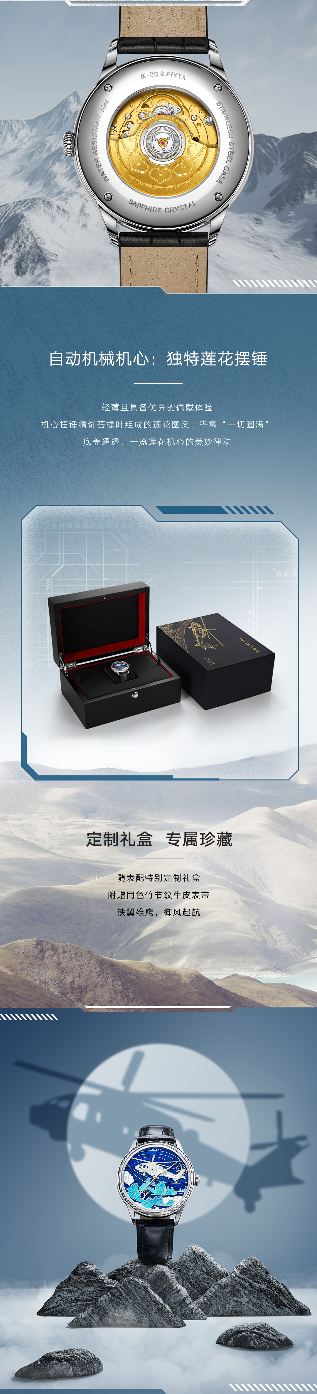 飞亚达马赫系列“直-20”主题珐琅款机械男表GA881019.PQK\GA881019.WQB