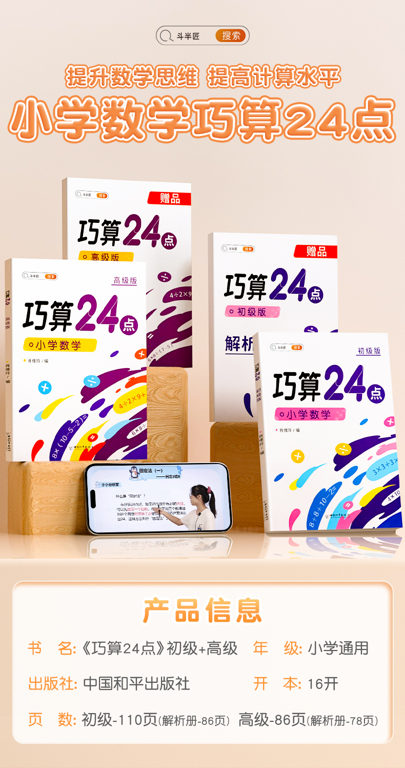 【斗半匠】巧算24点数学专项训练小学3-6年级通用