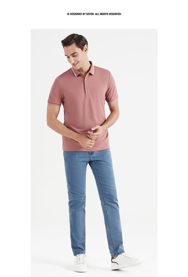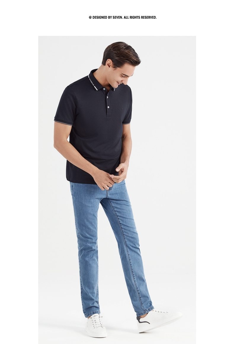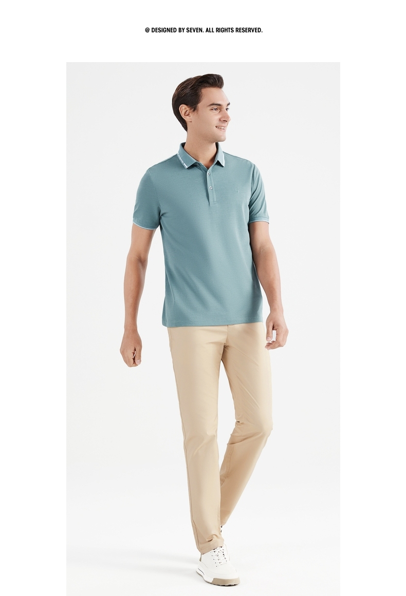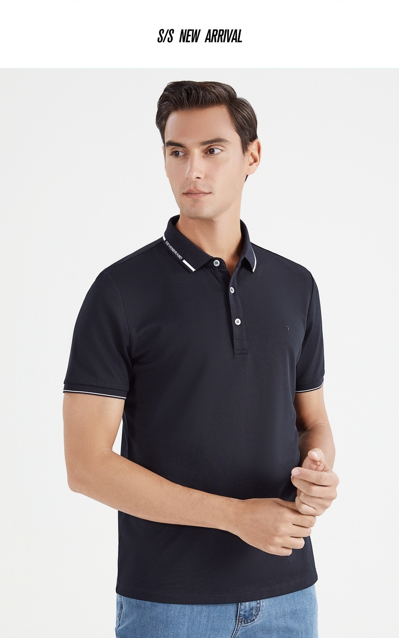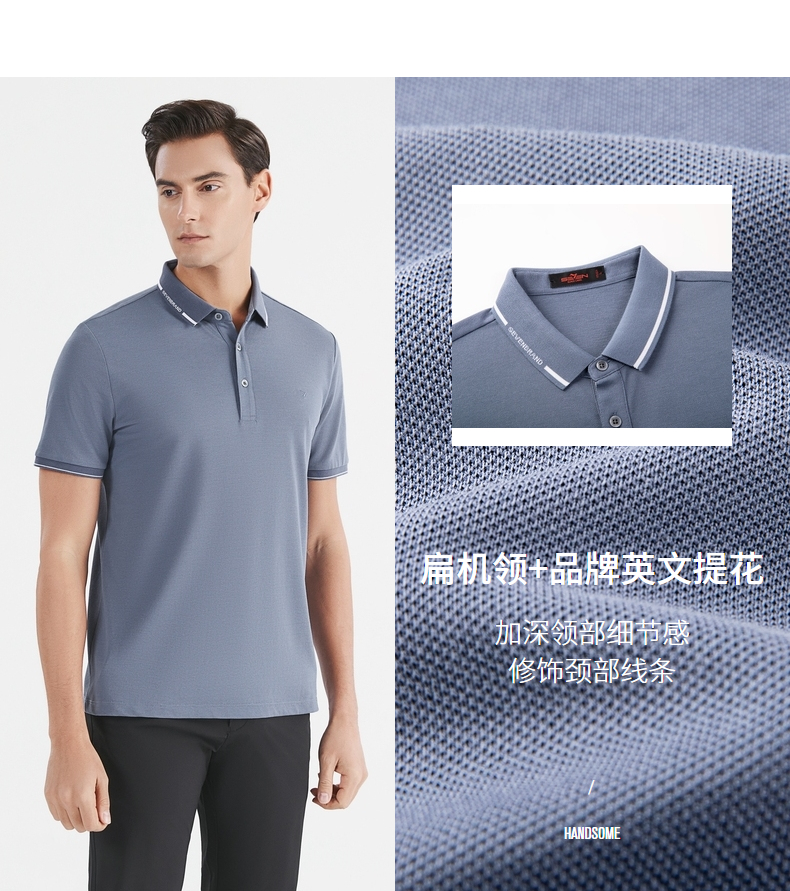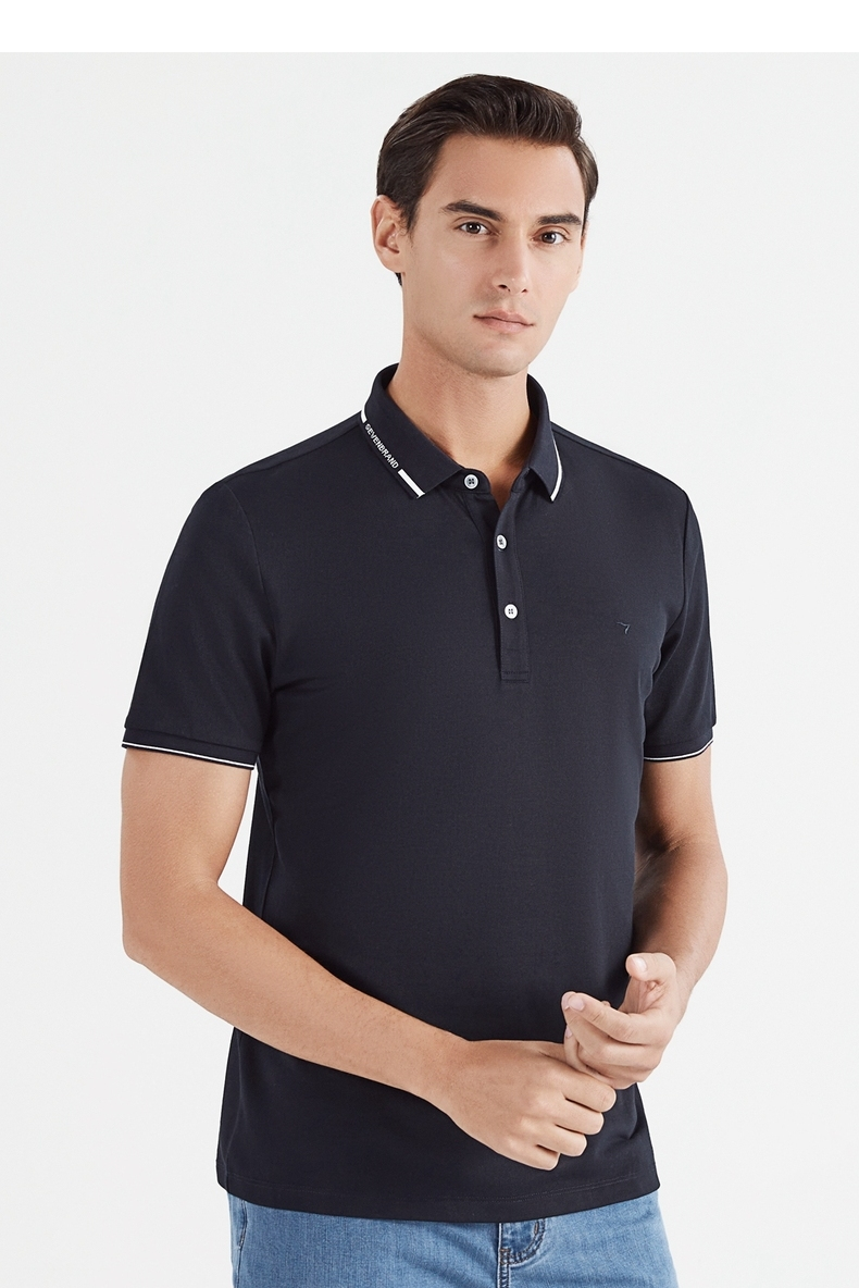 【冰氧吧】柒牌短袖polo衫男夏季薄款含桑蚕丝翻领字母体恤衫 122T70630