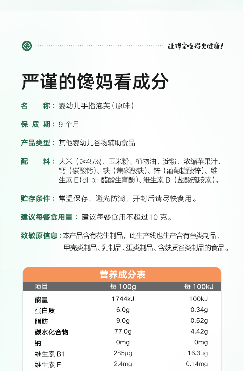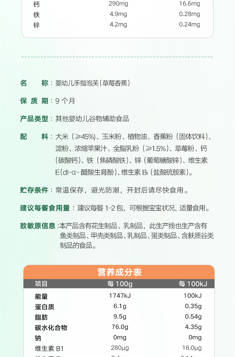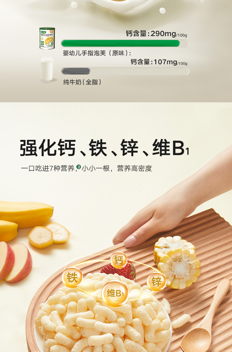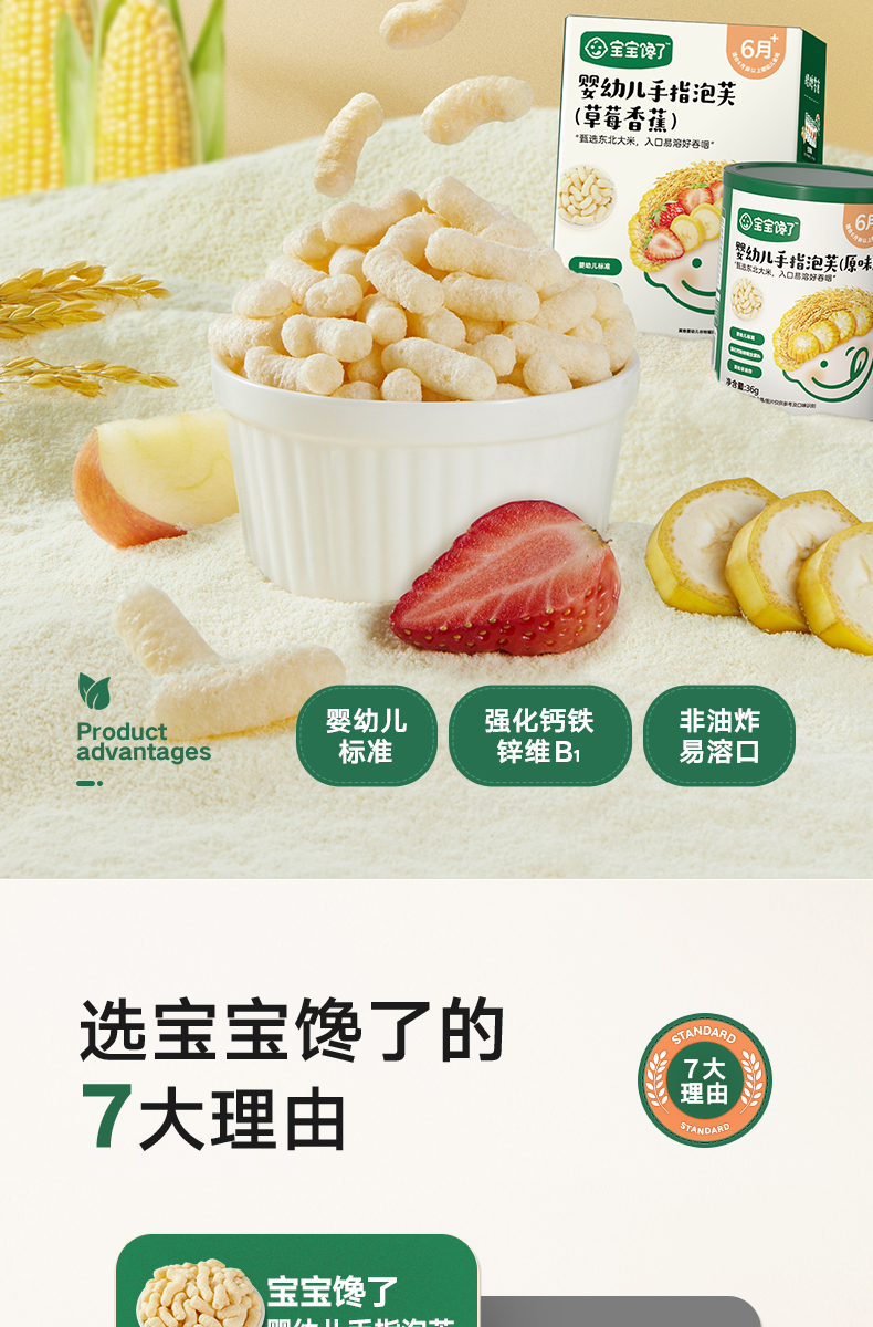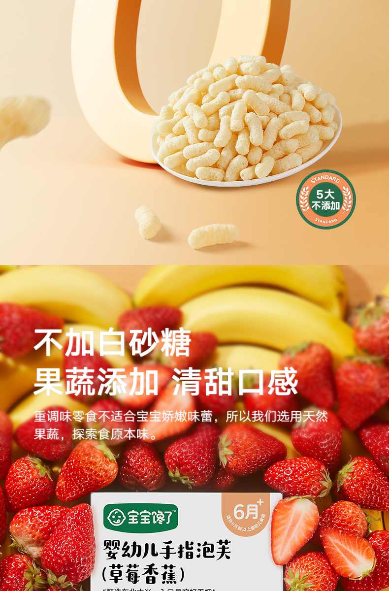 【宝宝馋了】婴幼儿手指泡芙(原味/草莓香蕉味) 强化钙铁锌 送6月+婴幼儿食谱