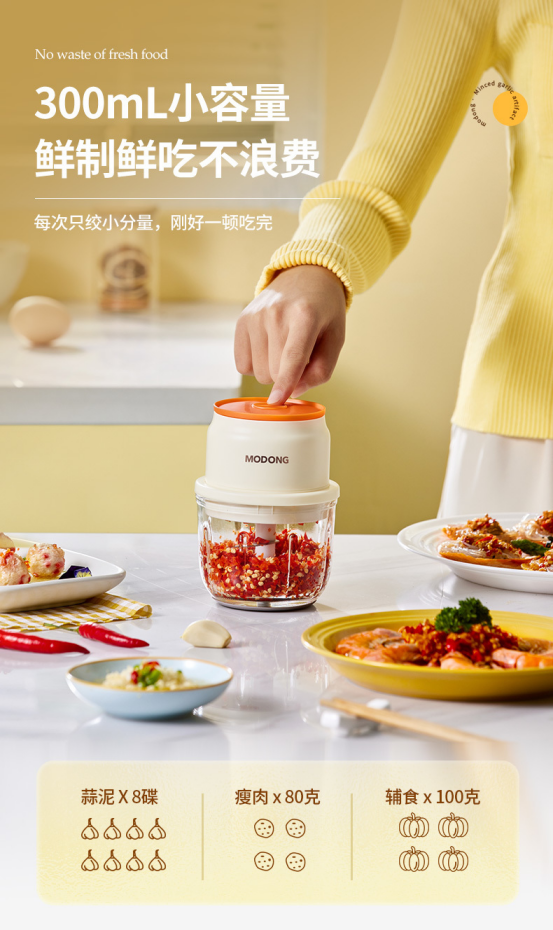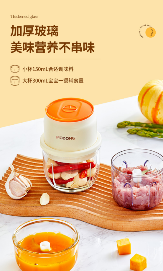 【MODONG摩动多功能食物切碎机300ml玻璃杯款】 ☺️绞肉、蒜泥、辅食~咻地一下通通搞定✨ 高转速➕加厚杯身➕长续航 ➕大容量省时省力又省心
