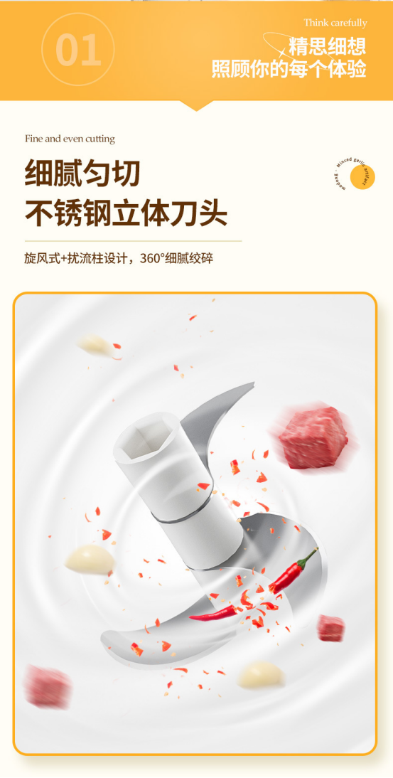 这个强力电机强就强在不光能切蒜,就连各种肉类也丝毫没有抵抗力 羊肉50秒、牛肉60秒、鸡肉45秒,而且丝毫不会逊色于手剁出品! 想吃肉泥肉末肉丸子都放心交给ta!