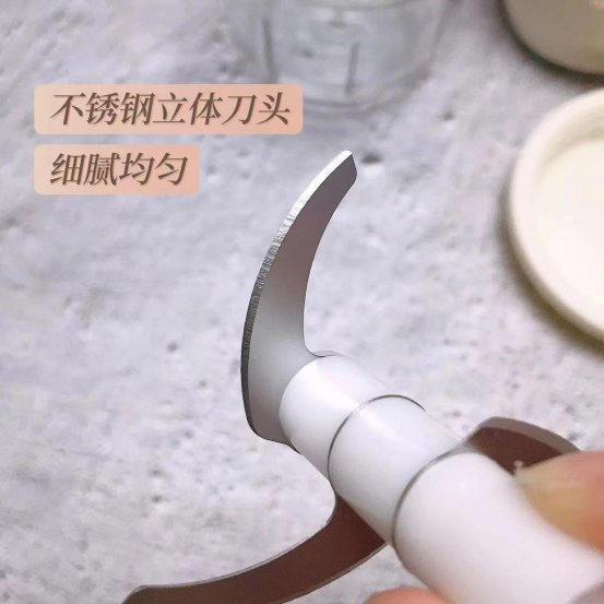 别看它长的小,精工迷你电机,身材虽小动力澎湃强劲!! 420食品级不锈钢刀头,释放食材的营养同时保证了优秀的细腻感 轻轻一点,它的电机高速运转,带动立体三叶刀片高速旋转均匀切绞 刀头耐用,锋利,在刀片强有力的加持下 一机多用不在话下,能快速绞出你想要的效果