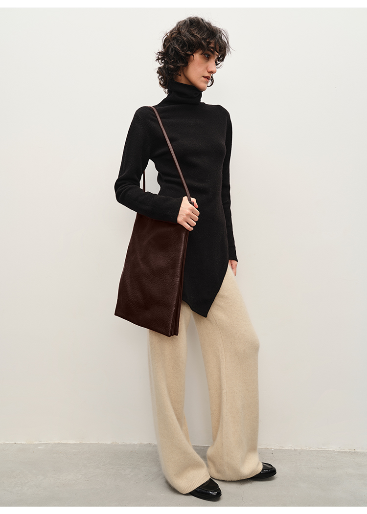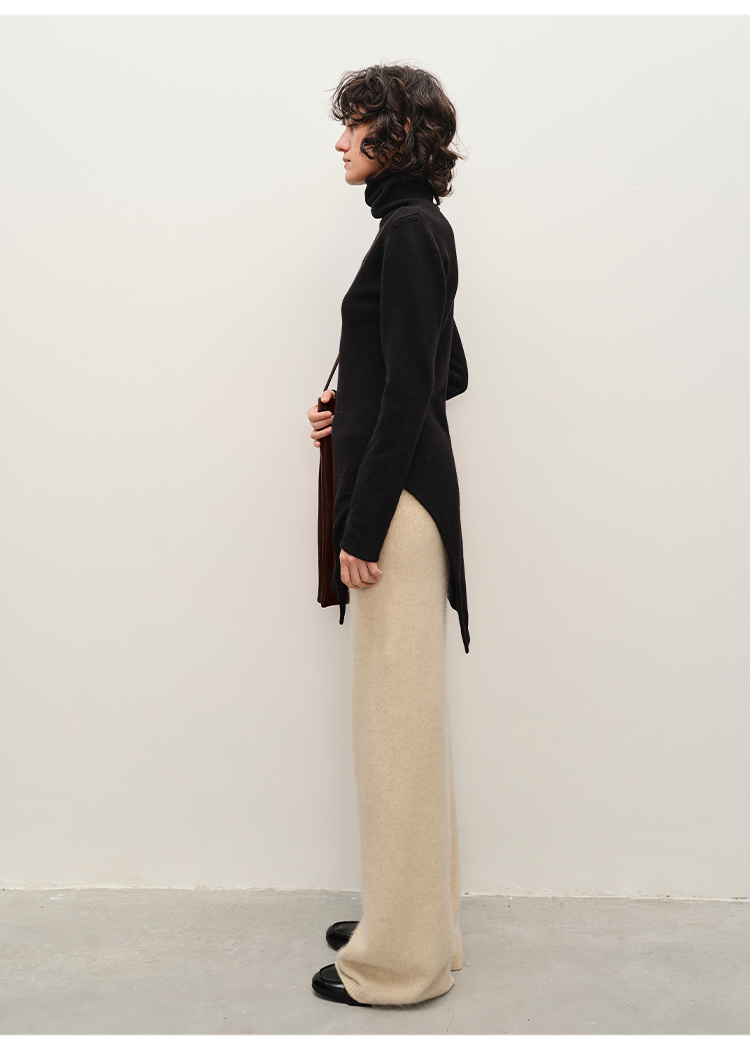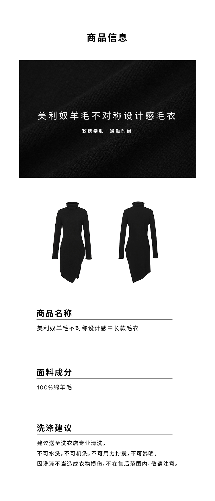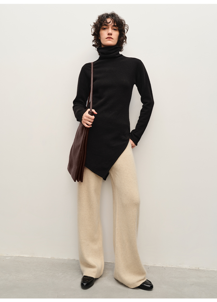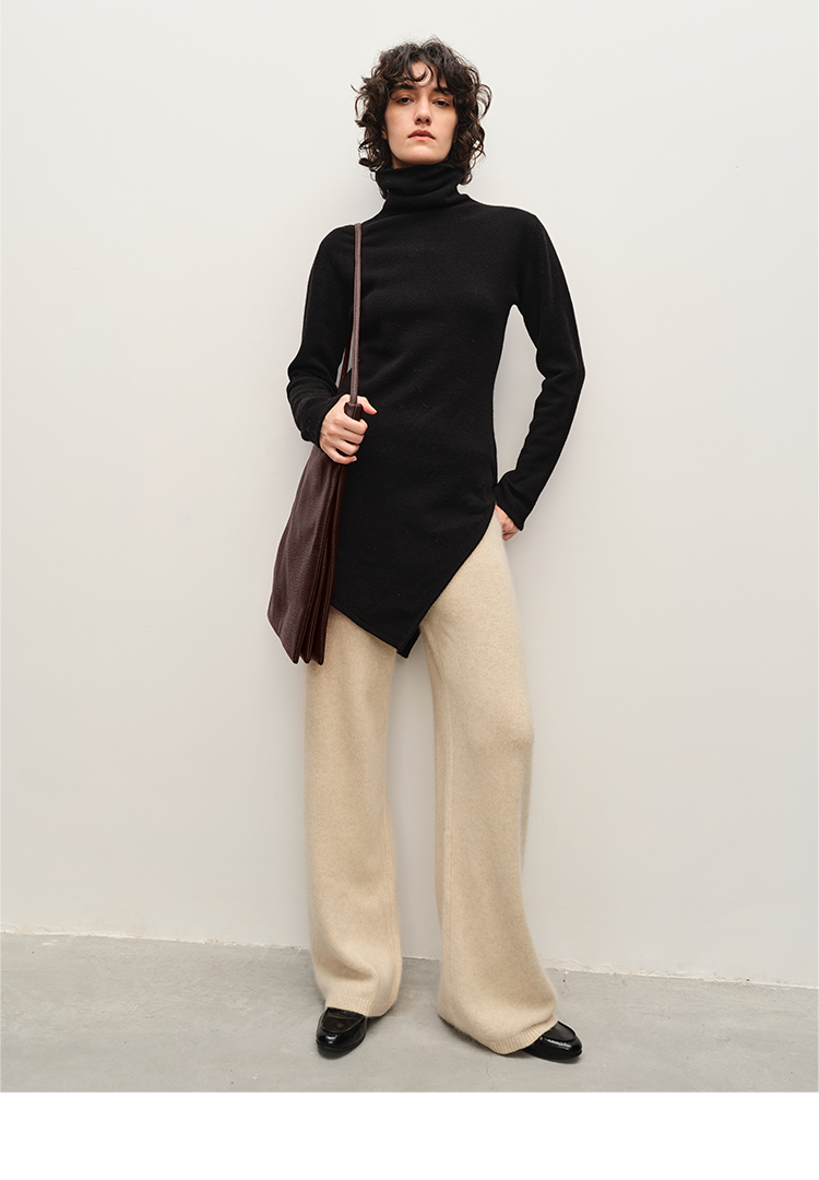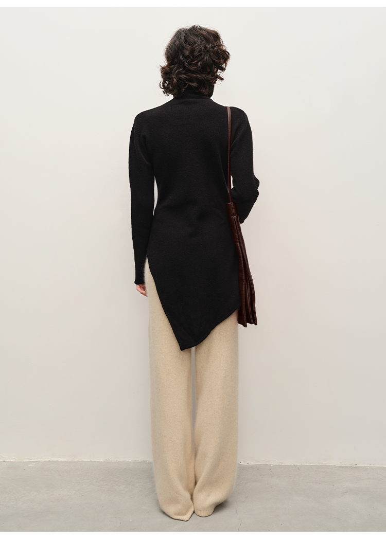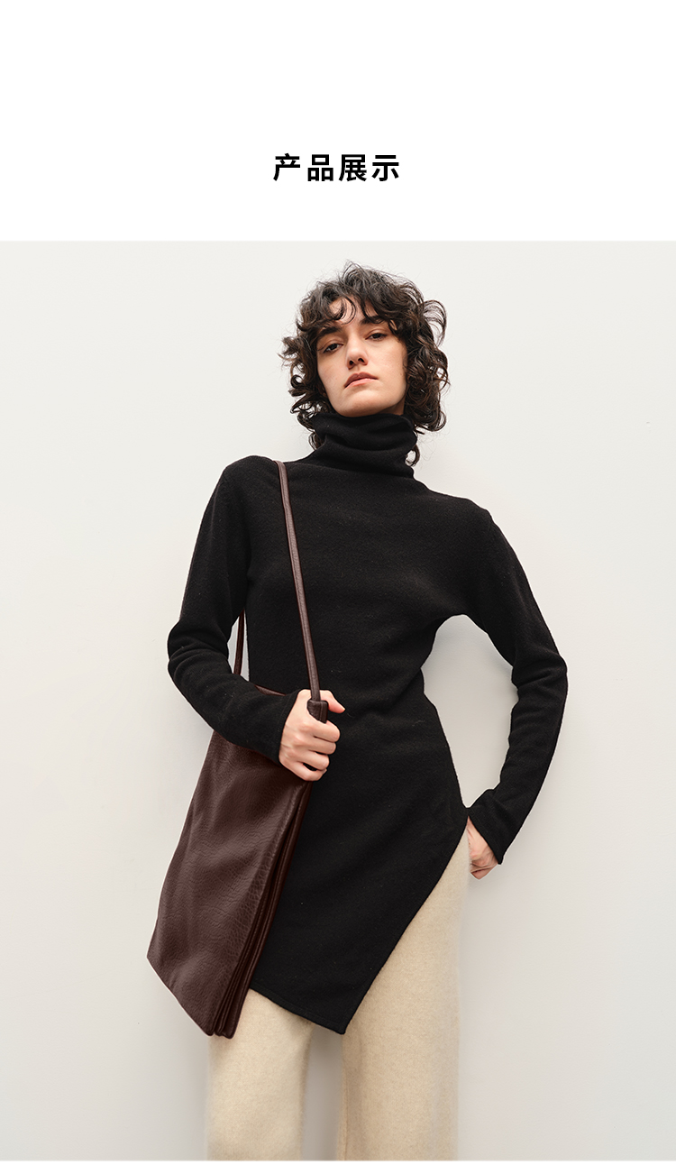 HIDEMI 美利奴羊毛不对称设计感中长款毛衣