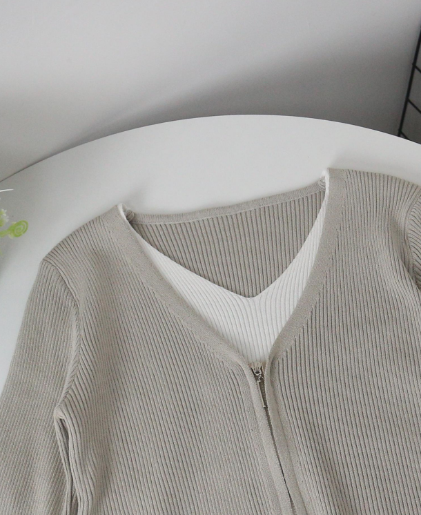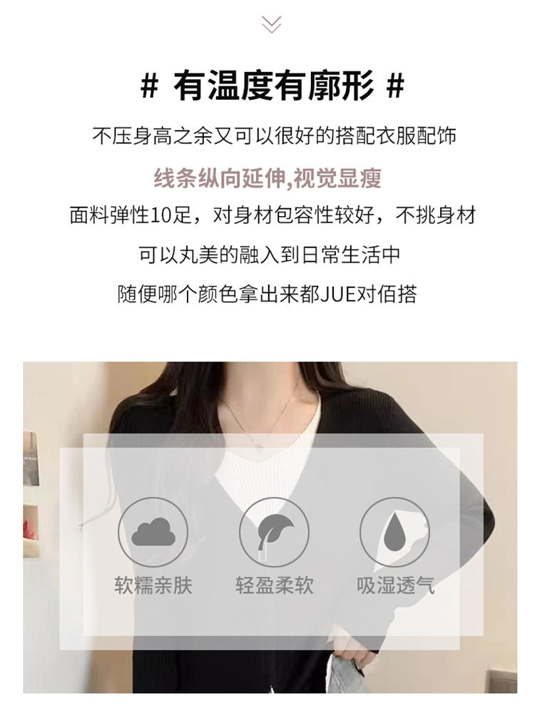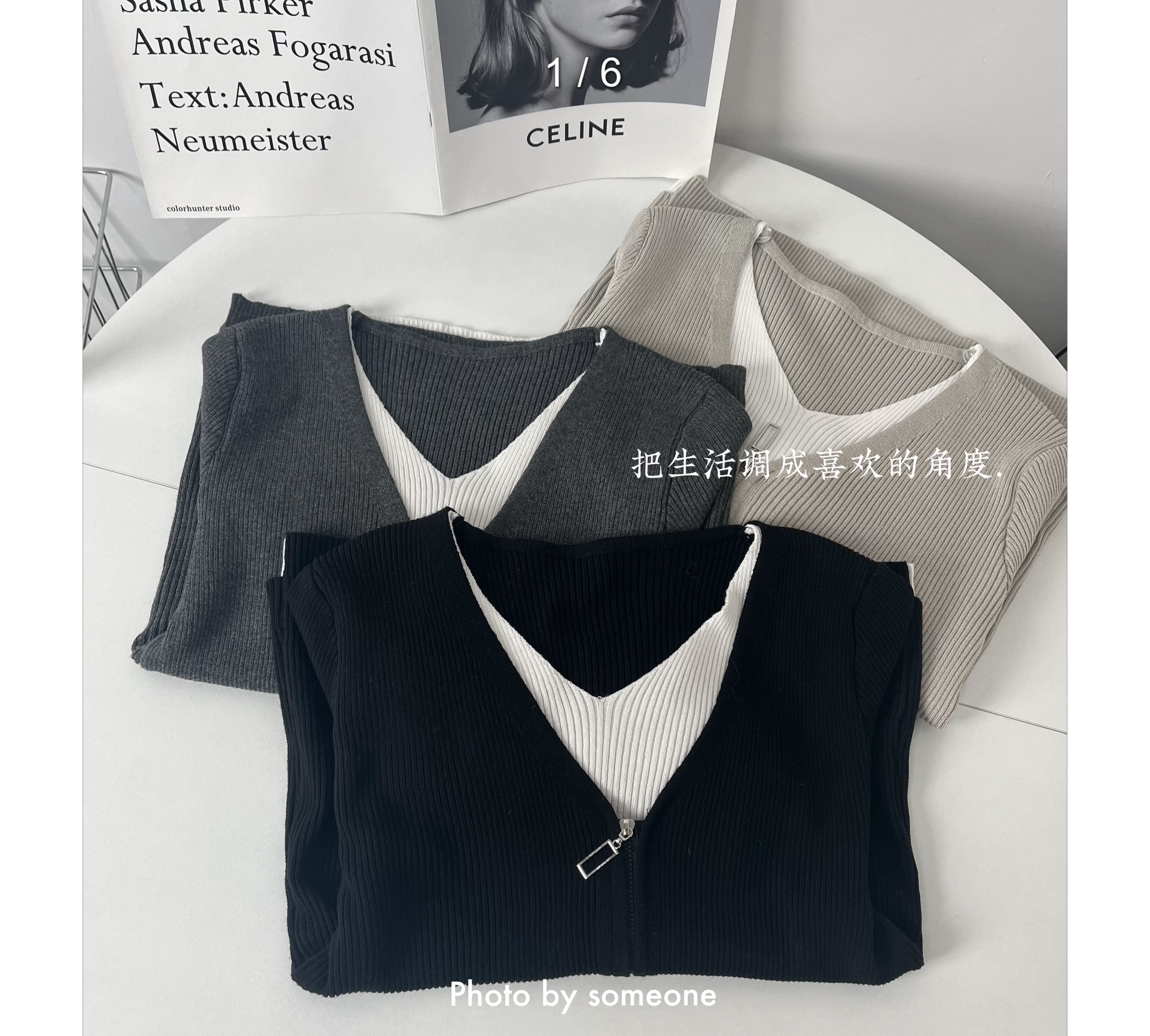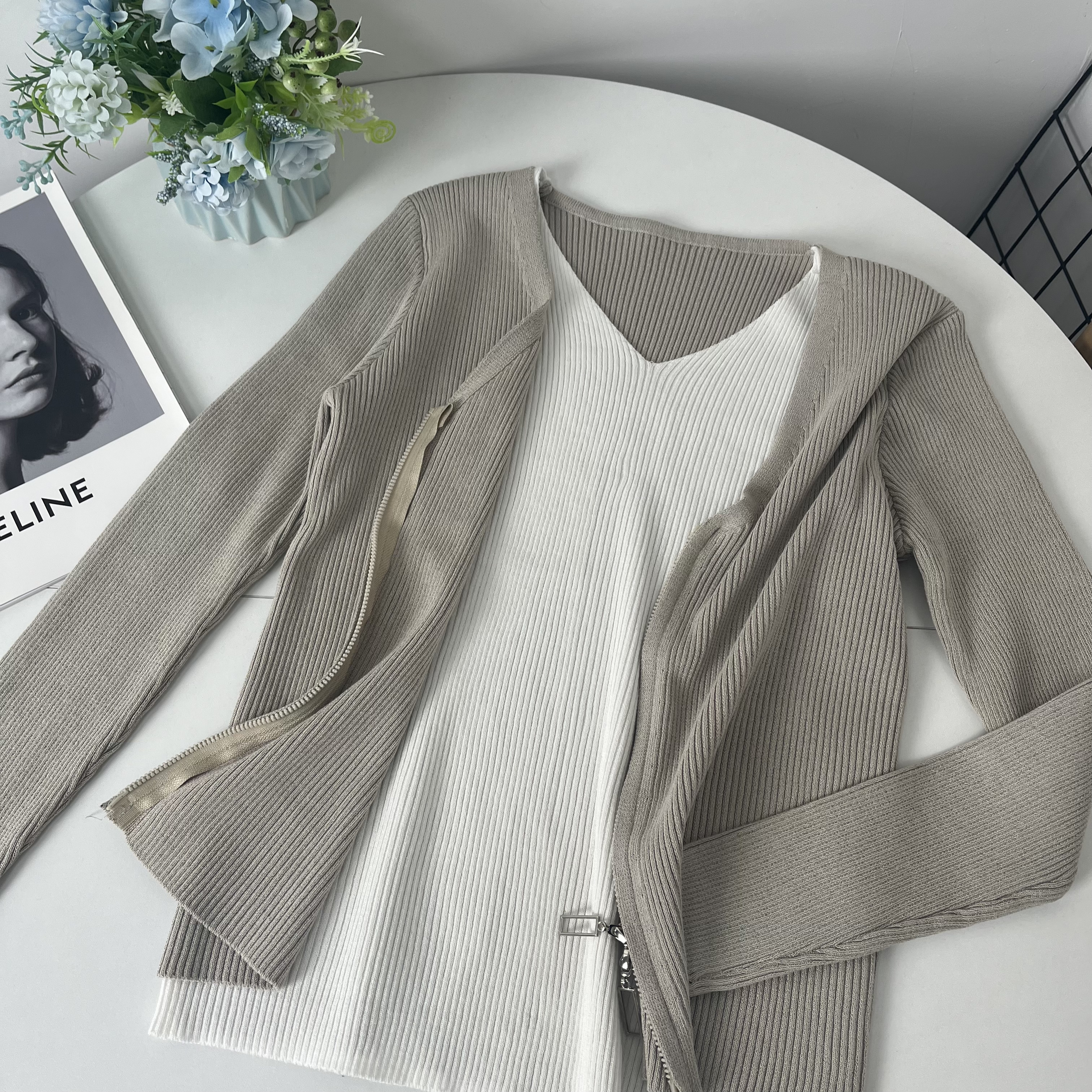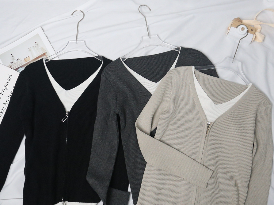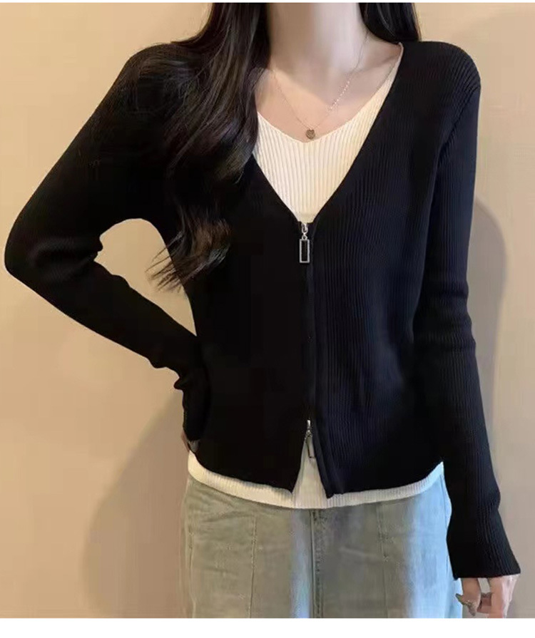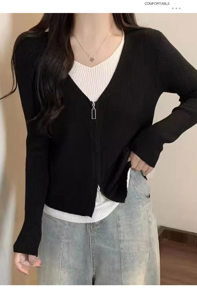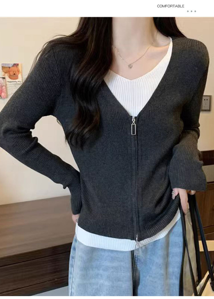 【 V领假两件针织衫 】秋冬慵懒风穿搭 拉链外套新款简约洋气修身显瘦