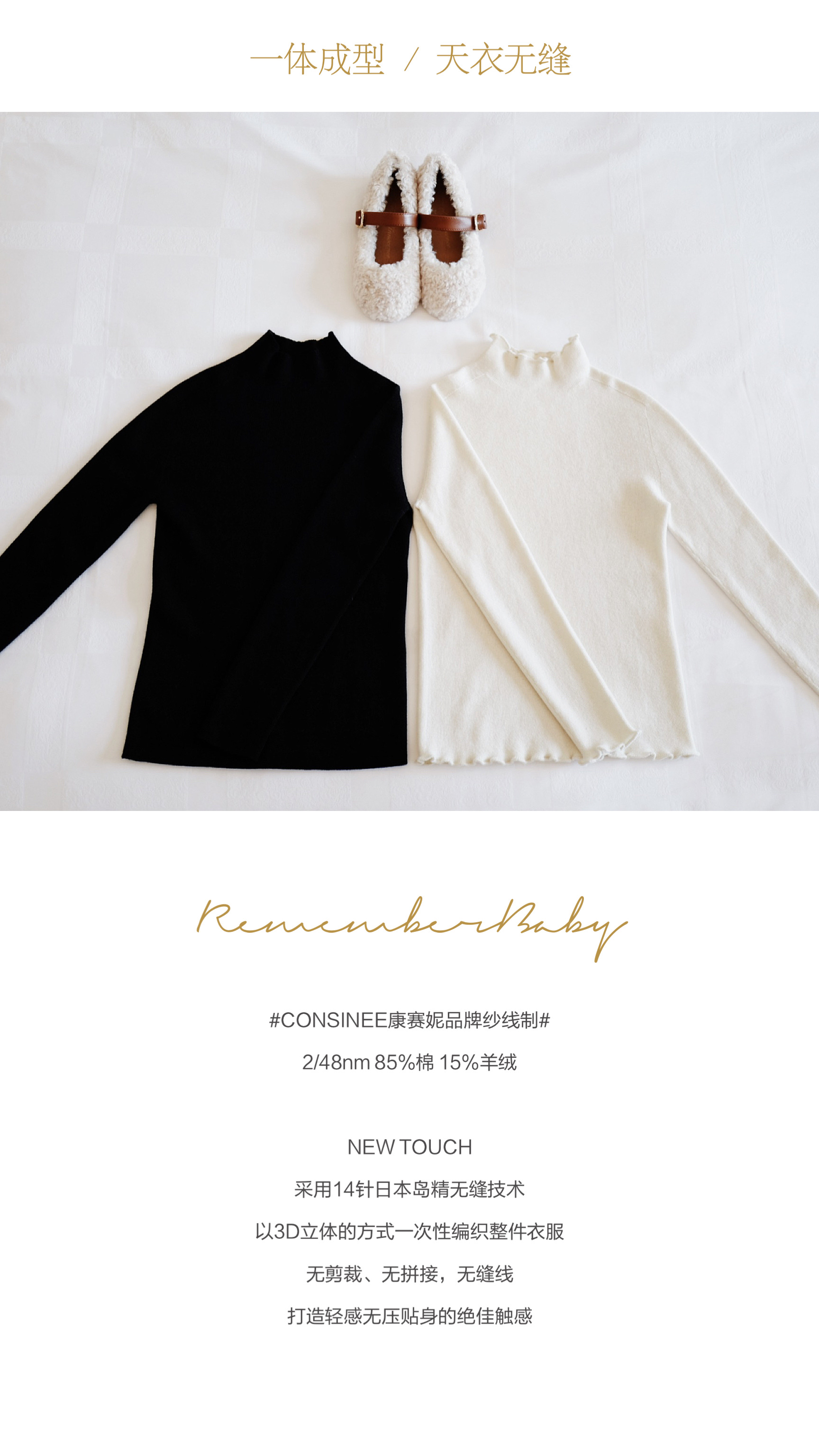 现货 / NEW TOUCH | 亲子款 无缝技术 康赛妮品牌纱线制 85%棉15%羊绒 超舒适无压力打底上衣