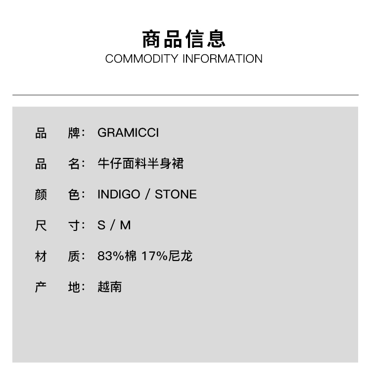GRAMICCI JAPANESE DENIM SKIRT 女款日本牛仔面料半身裙