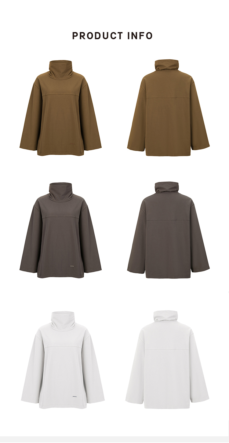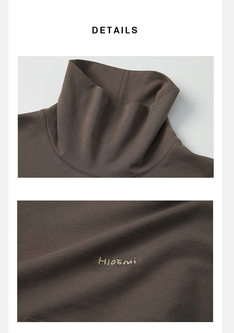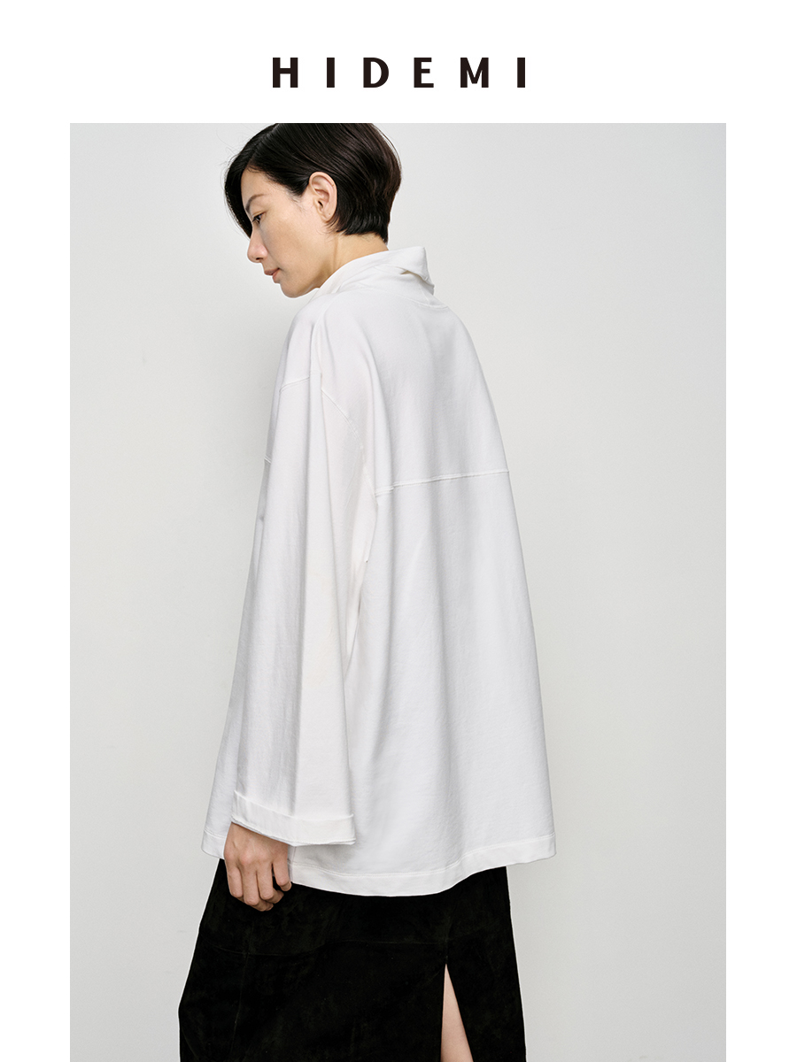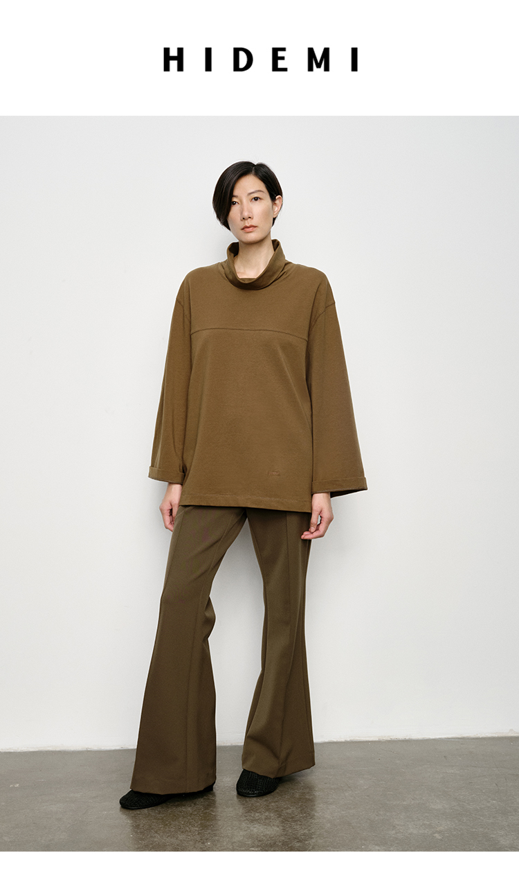HIDEMI 极简廓形堆堆领立领logo刺绣款精梳棉长袖上衣 军绿色/锡器灰/白色