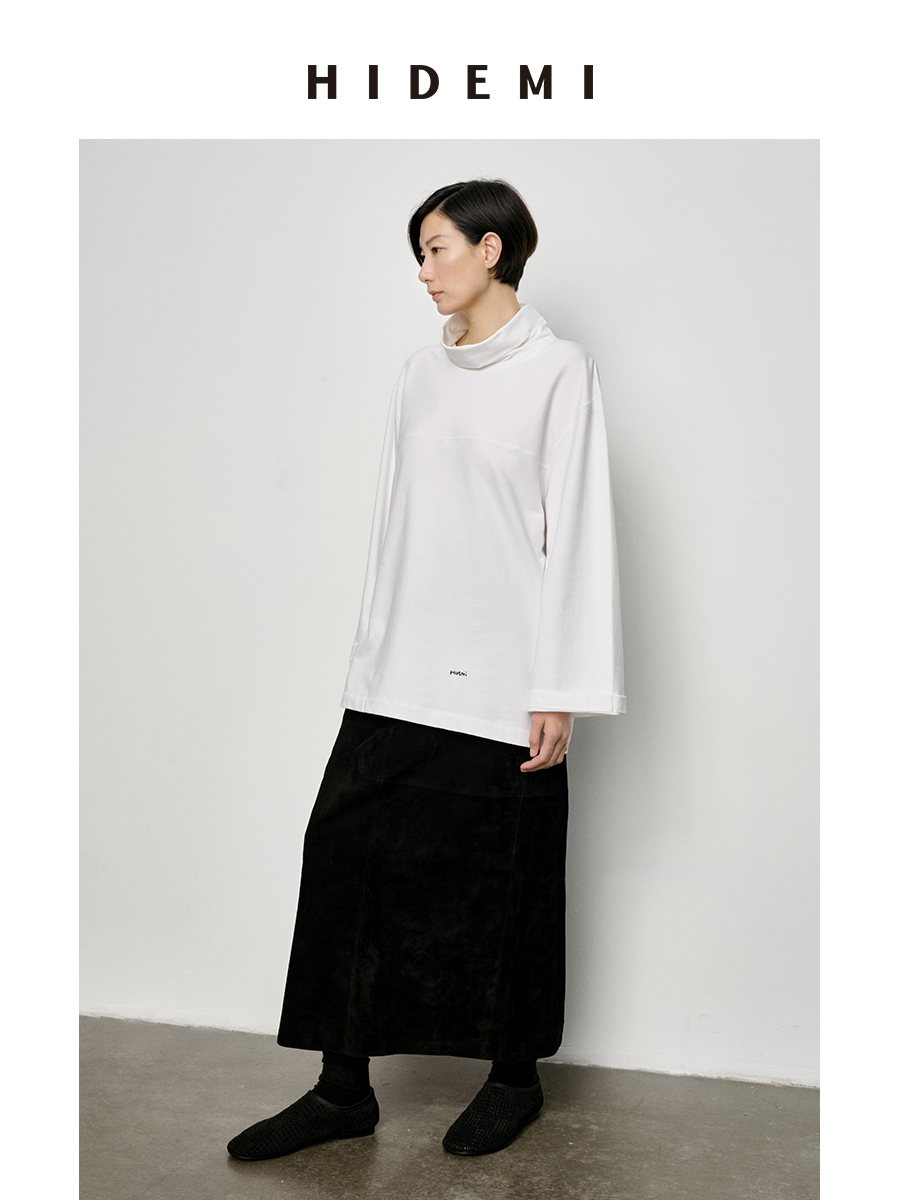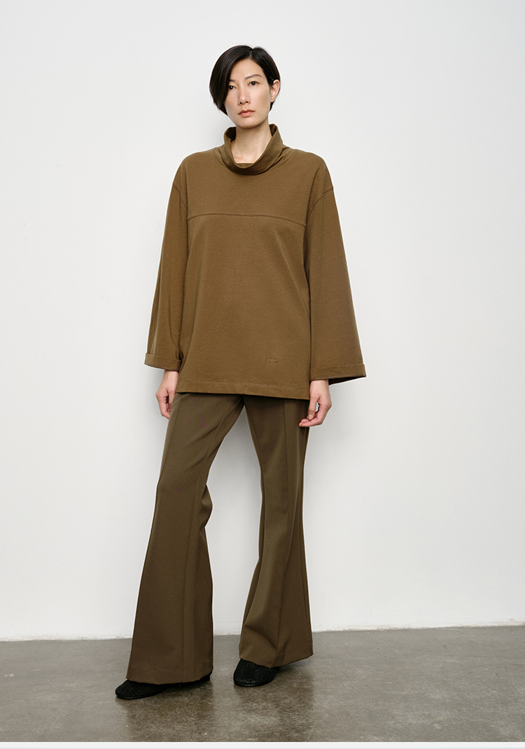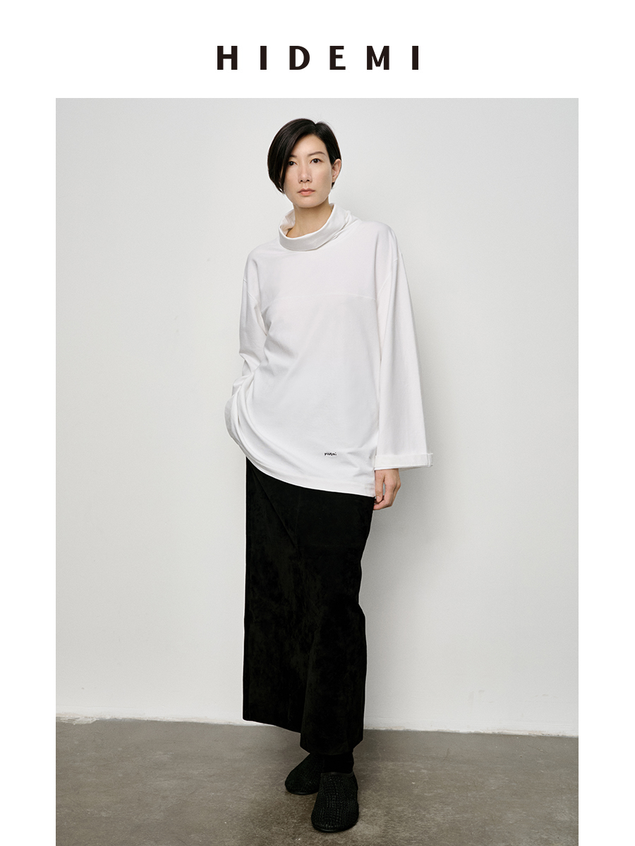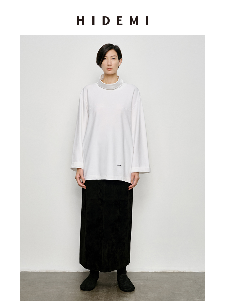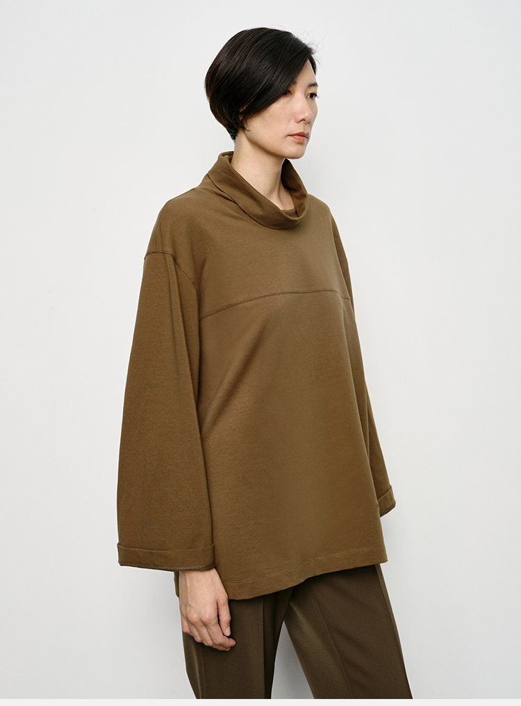 HIDEMI 极简廓形堆堆领立领logo刺绣款精梳棉长袖上衣 军绿色/锡器灰/白色