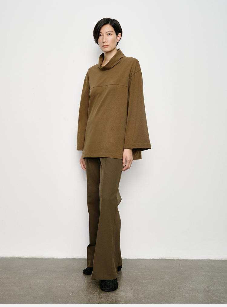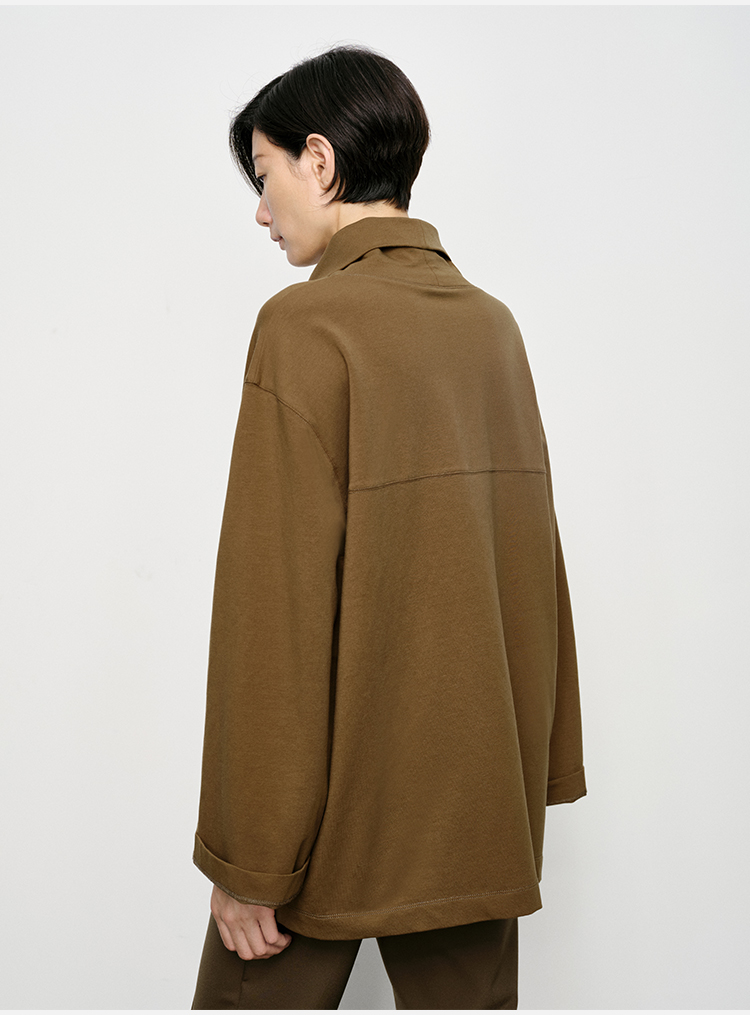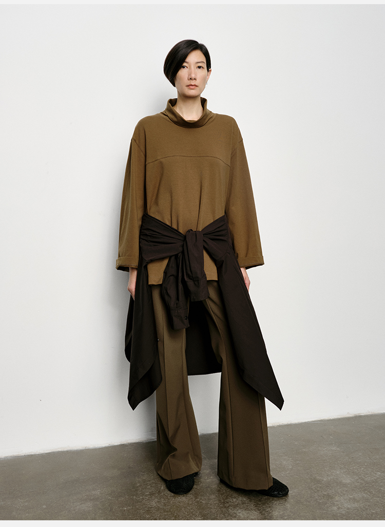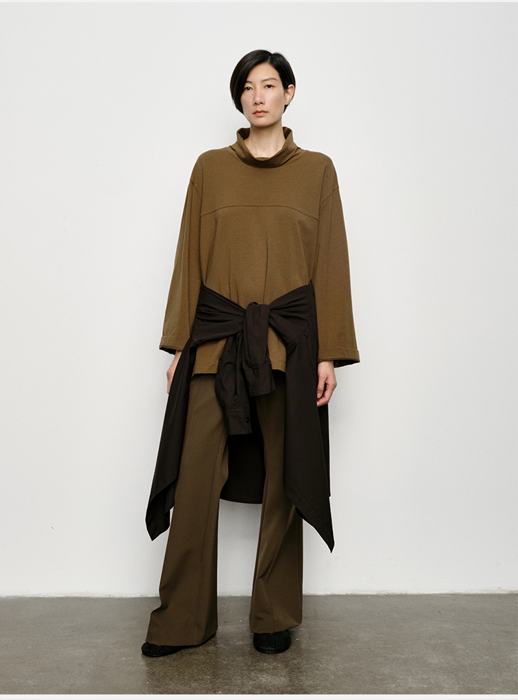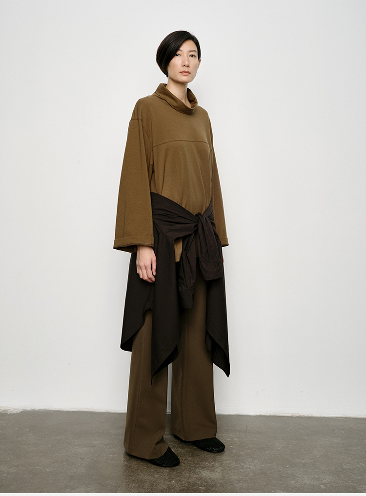 HIDEMI 极简廓形堆堆领立领logo刺绣款精梳棉长袖上衣 军绿色/锡器灰/白色