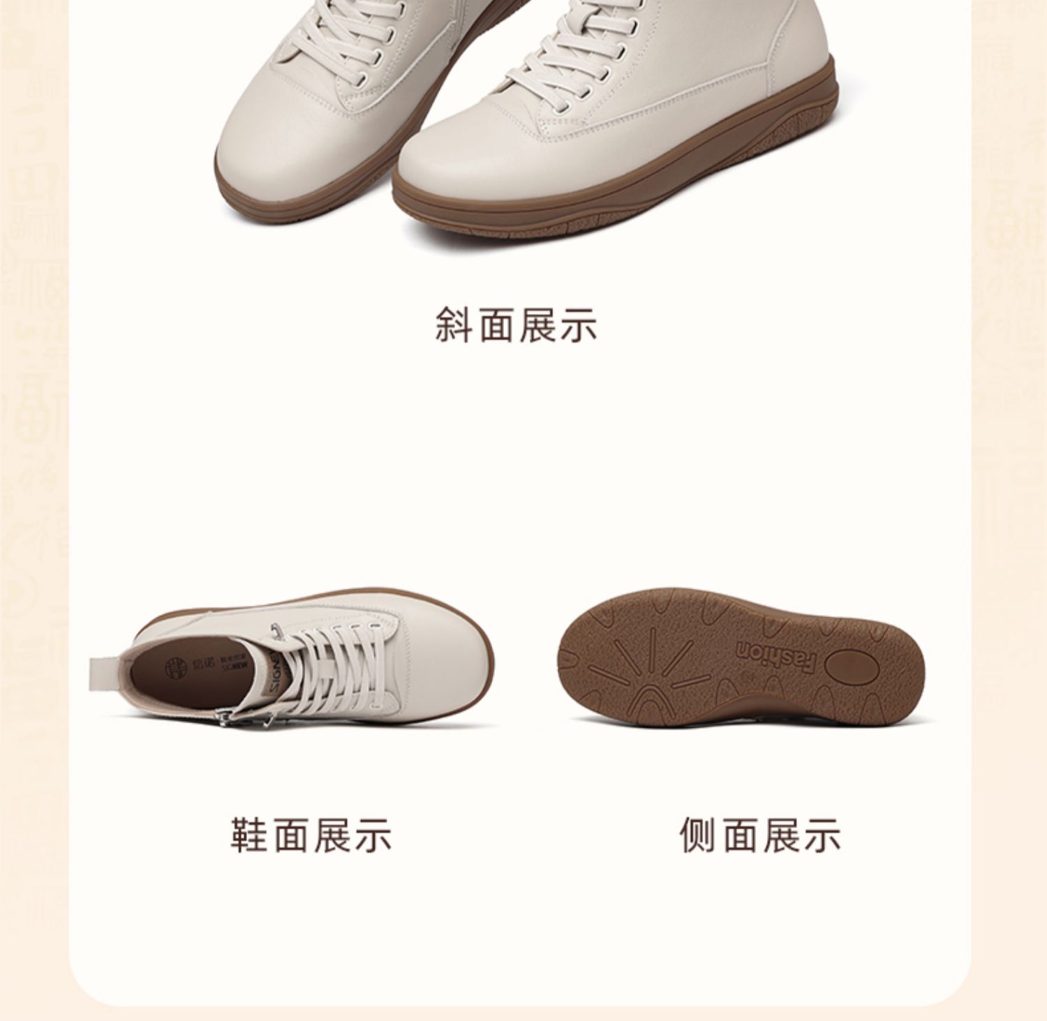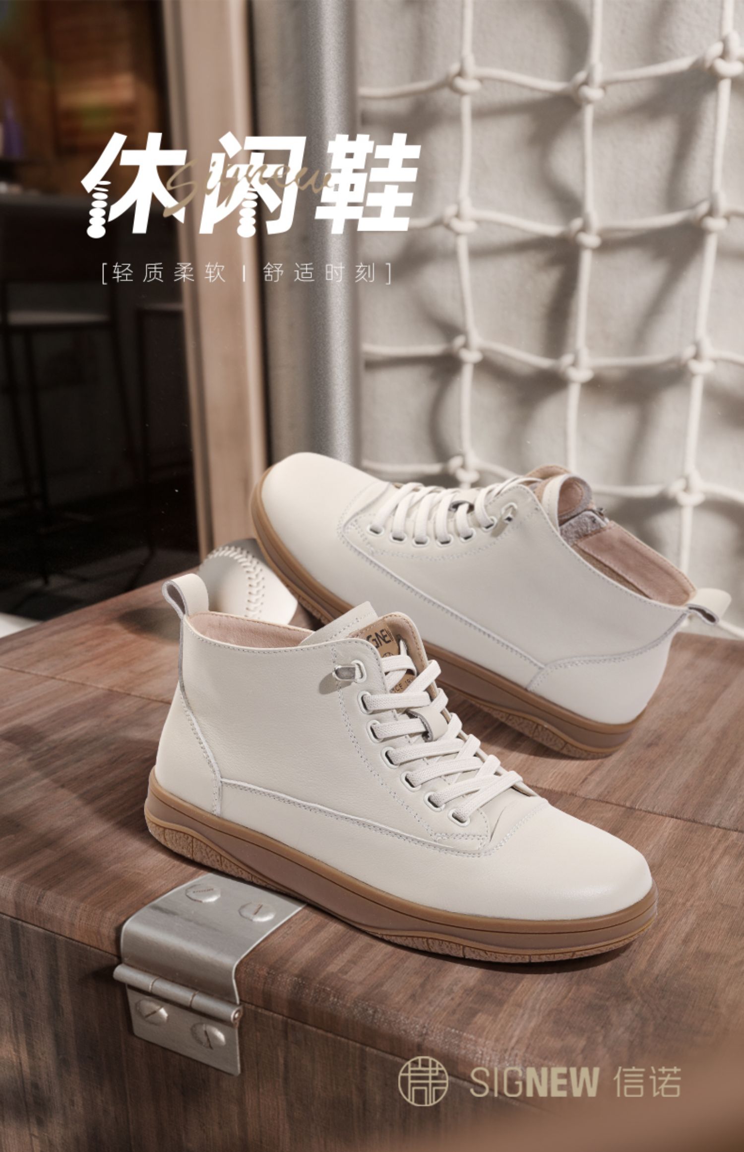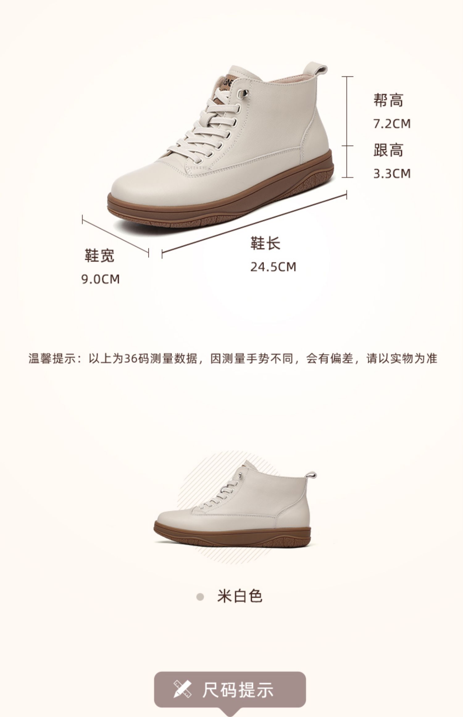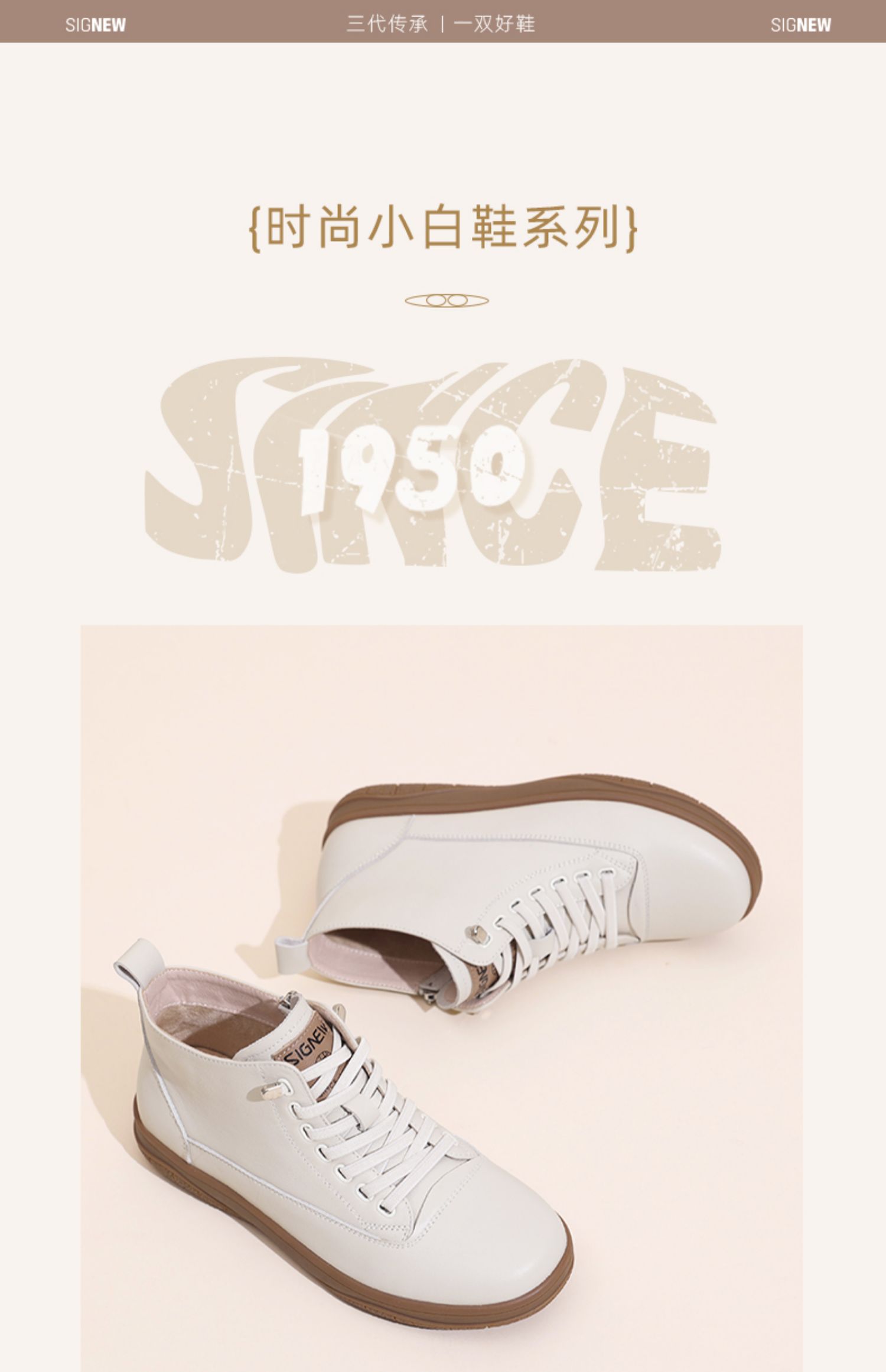 信诺真皮高帮鞋女款2024秋冬新款舒适软底小白鞋妈妈短靴休闲皮鞋M306-3C