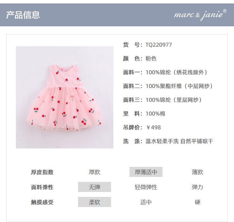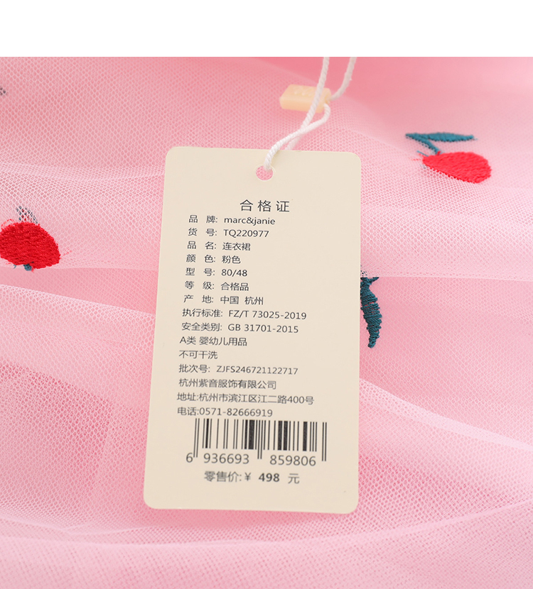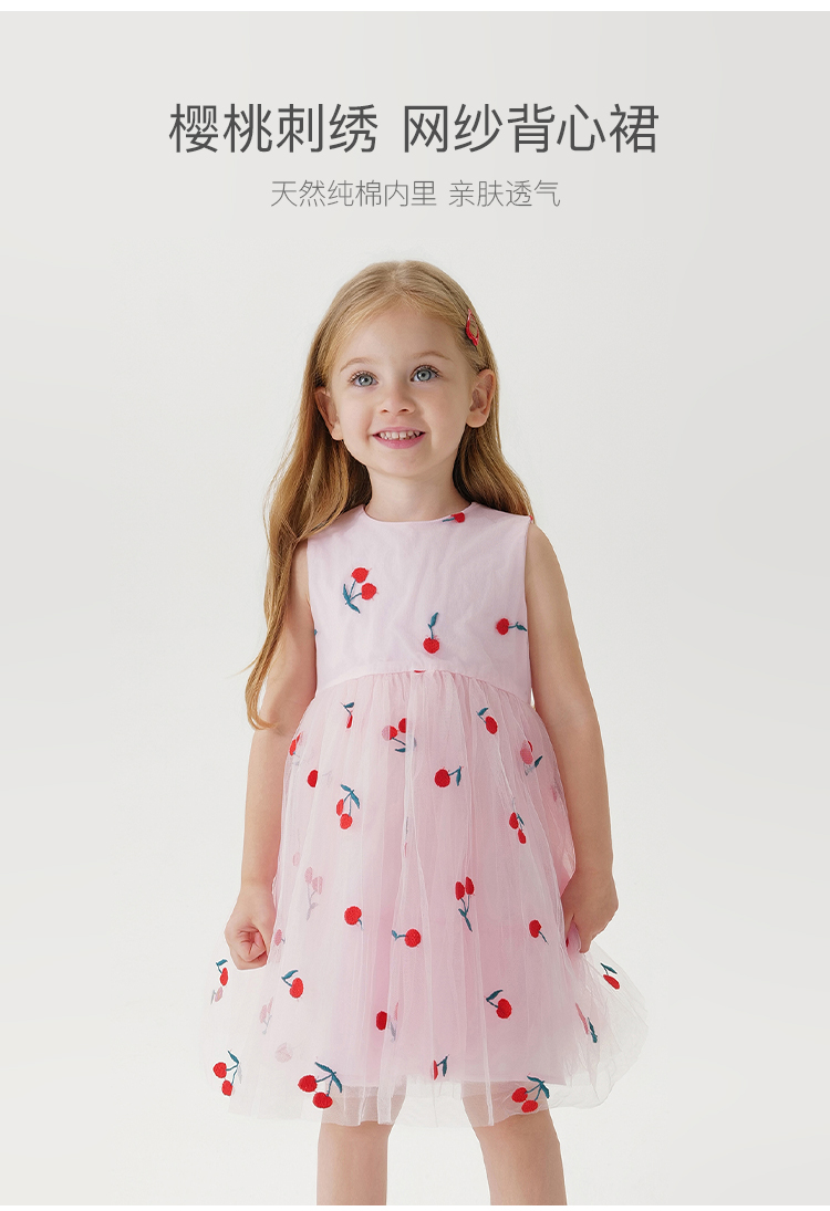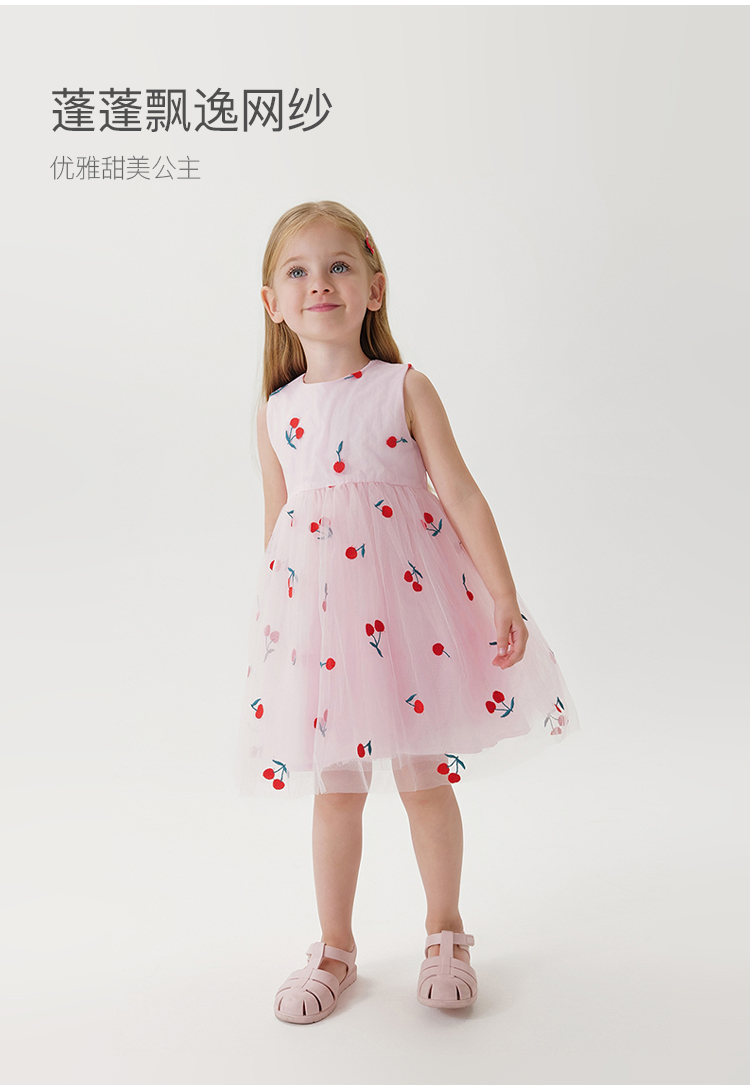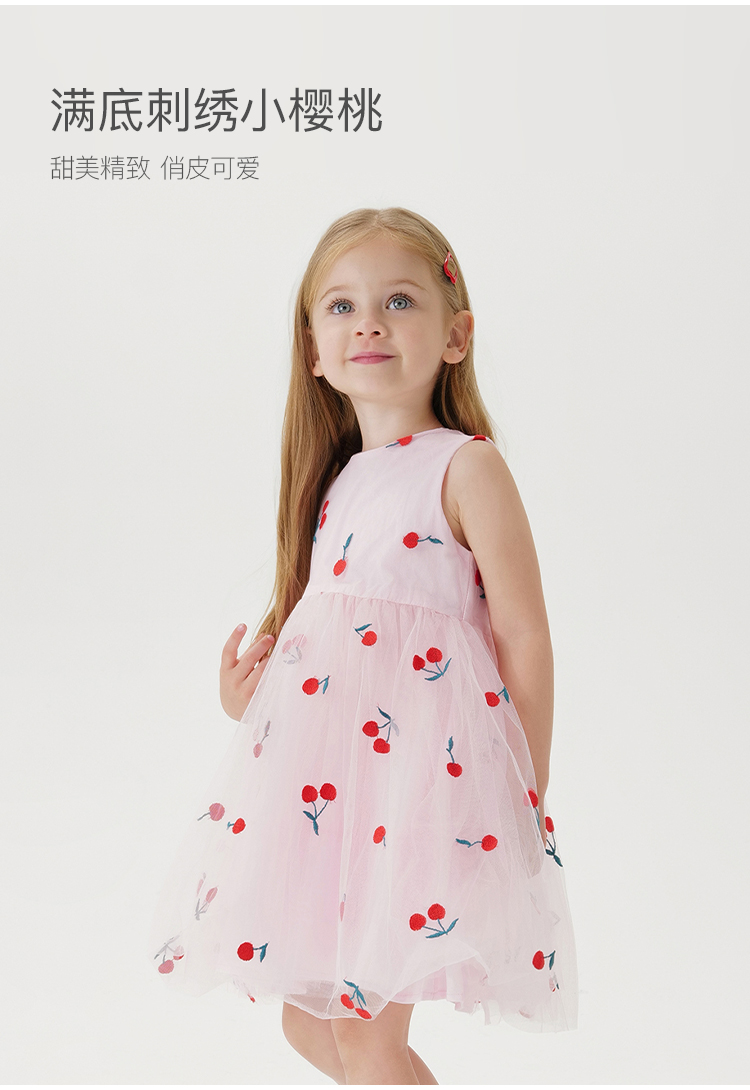 marcjanie马克珍妮夏装新款 女童樱桃绣花网纱连衣裙220977
