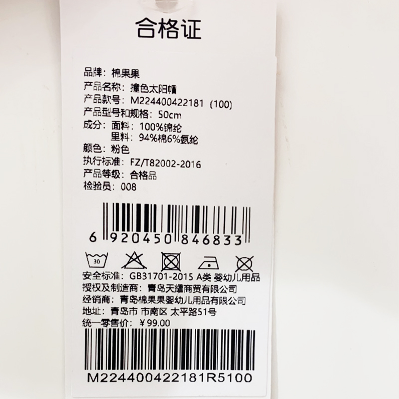 棉果果夏季遮阳帽可爱卡通帽撞色太阳帽女童M224400422181