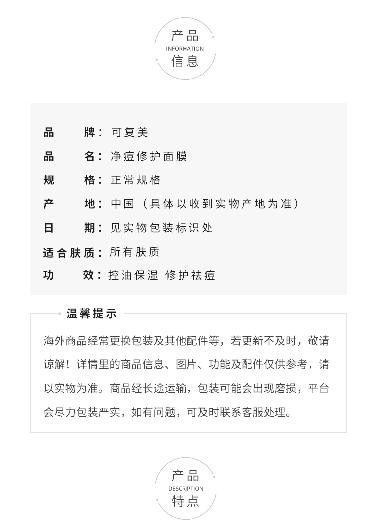 可复美小绿膜 净痘修护膜 双酸修护 温和控痘 小绿膜5片/盒