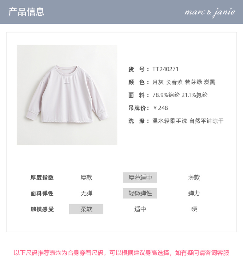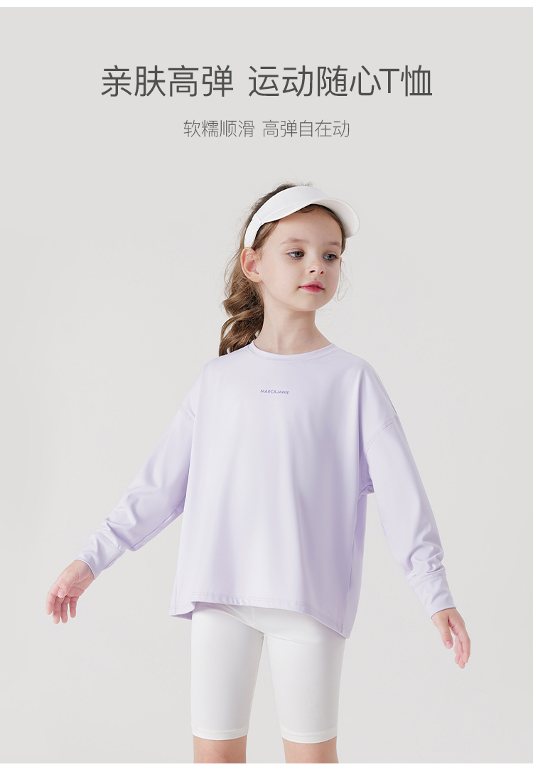 马克珍妮女童运动弹力字母T恤儿童时尚休闲上衣春装新款240271