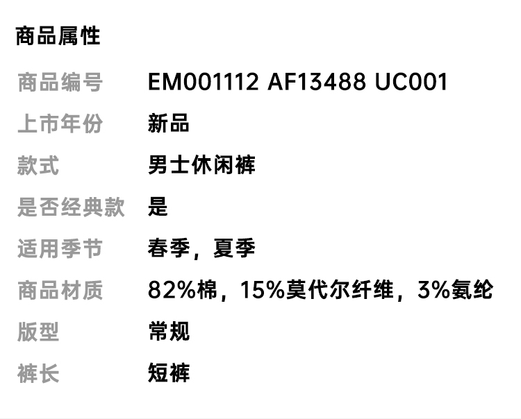 EMPORIO ARMANI 阿玛尼 男士小鹰徽标混纺棉质休闲短裤 黑色 EM001112 AF13488 UC001