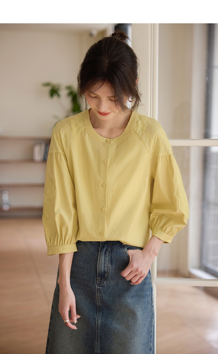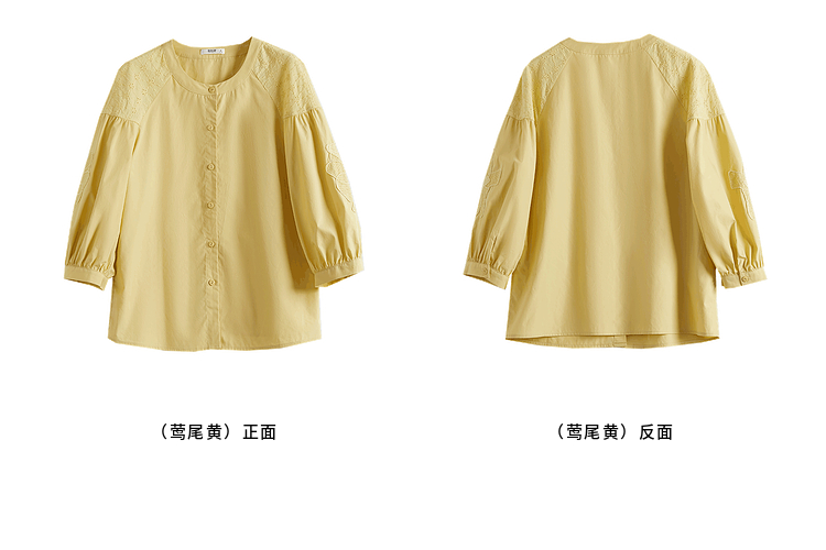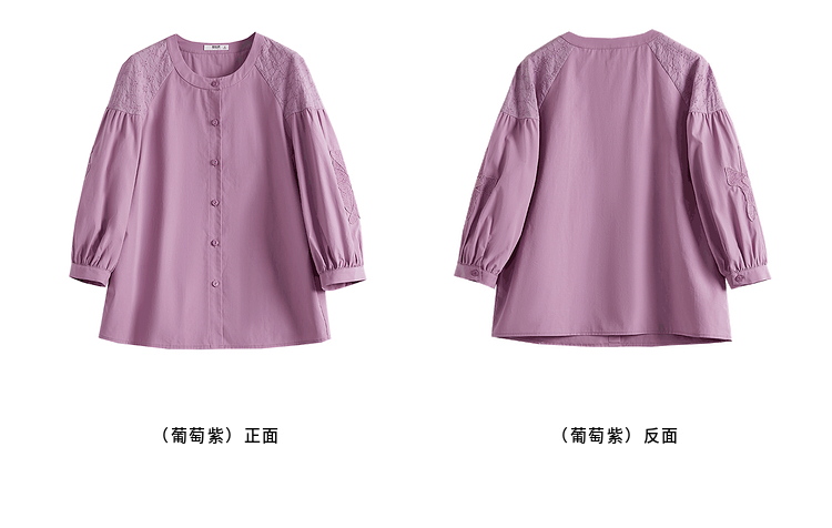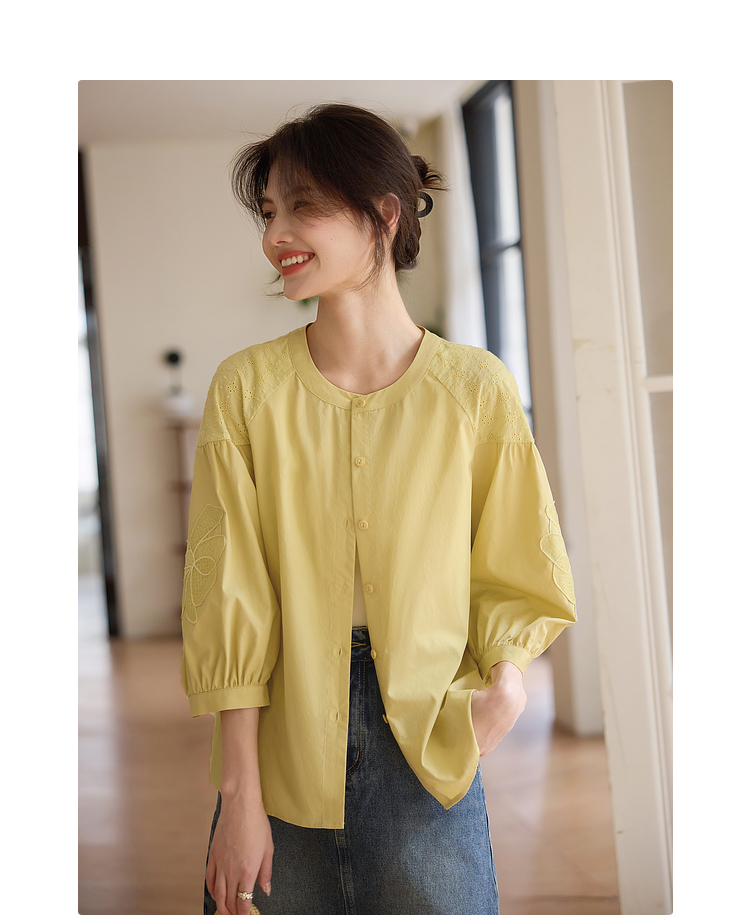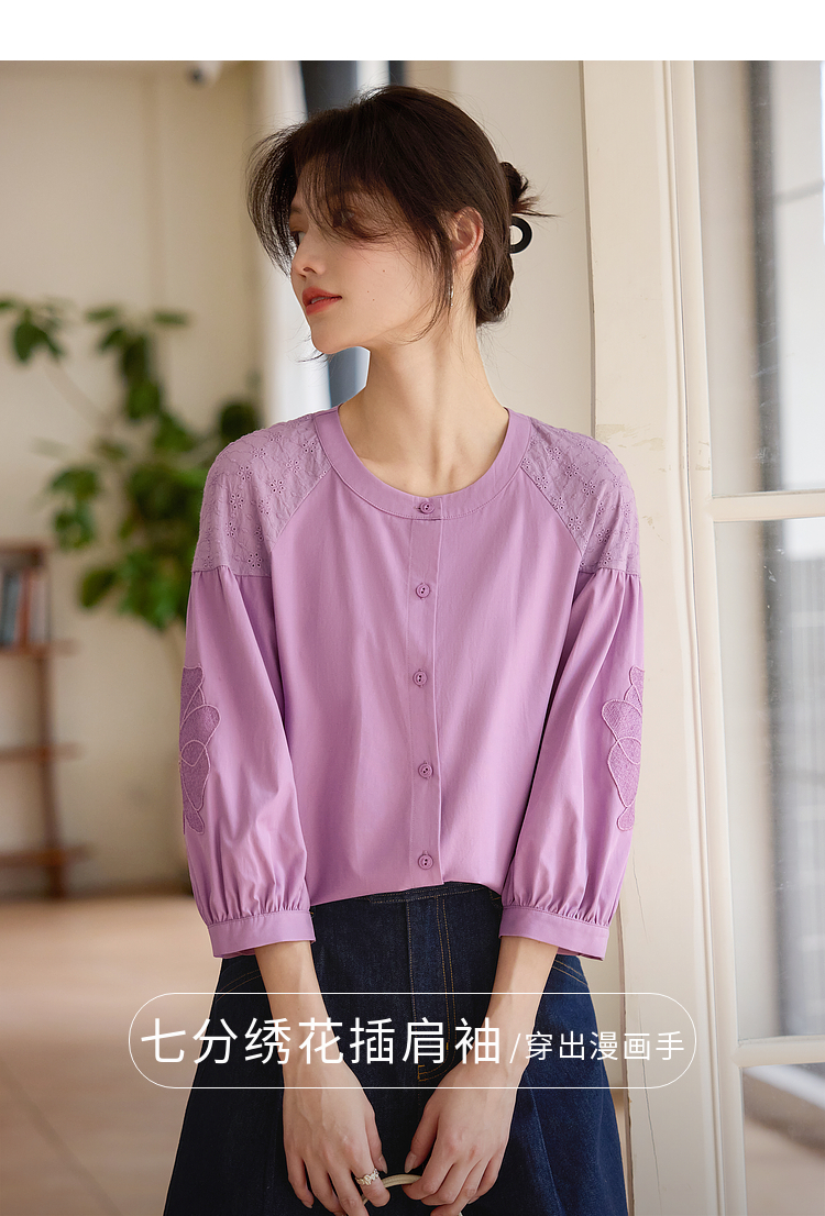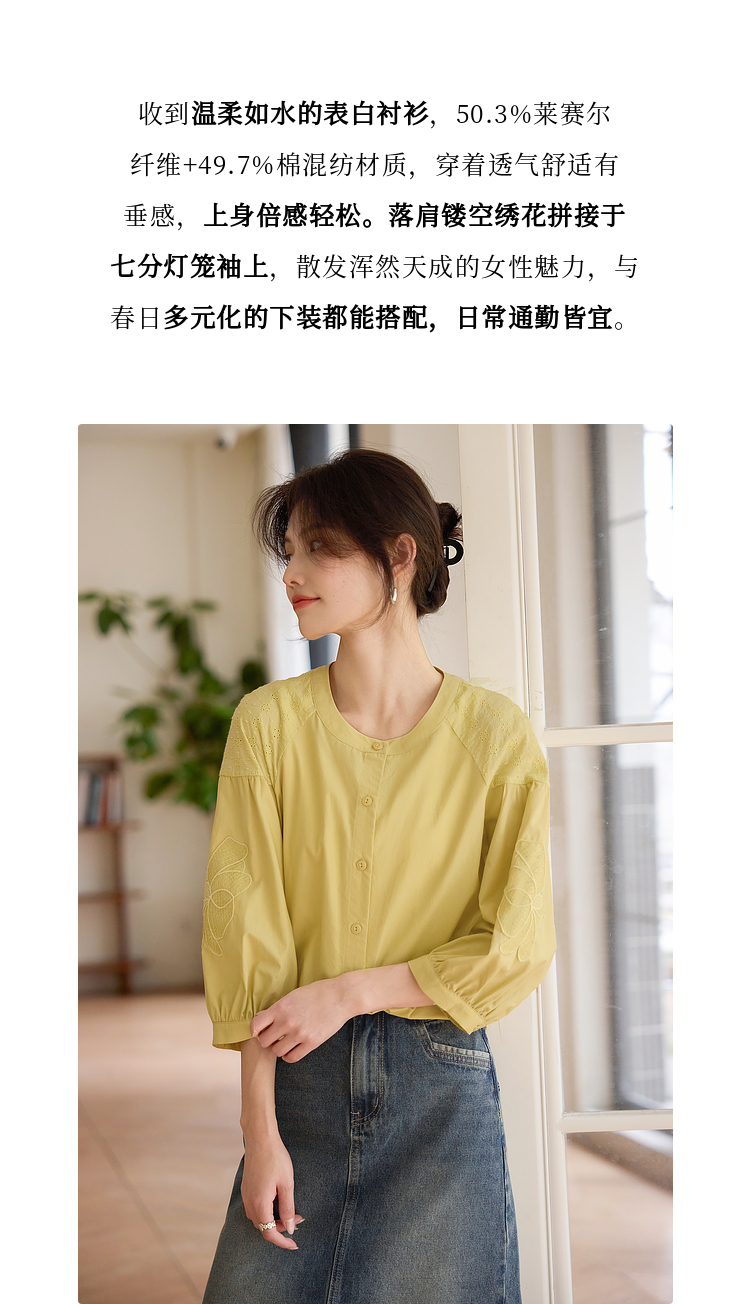 【周四狂欢价】熙世界绣花七分袖天丝衬衫女高级感减龄洋气中袖上衣2025秋新款
