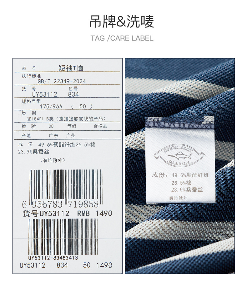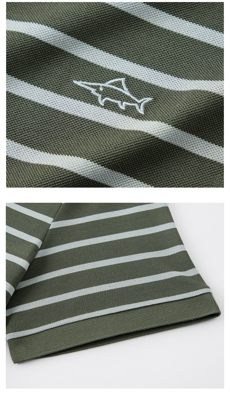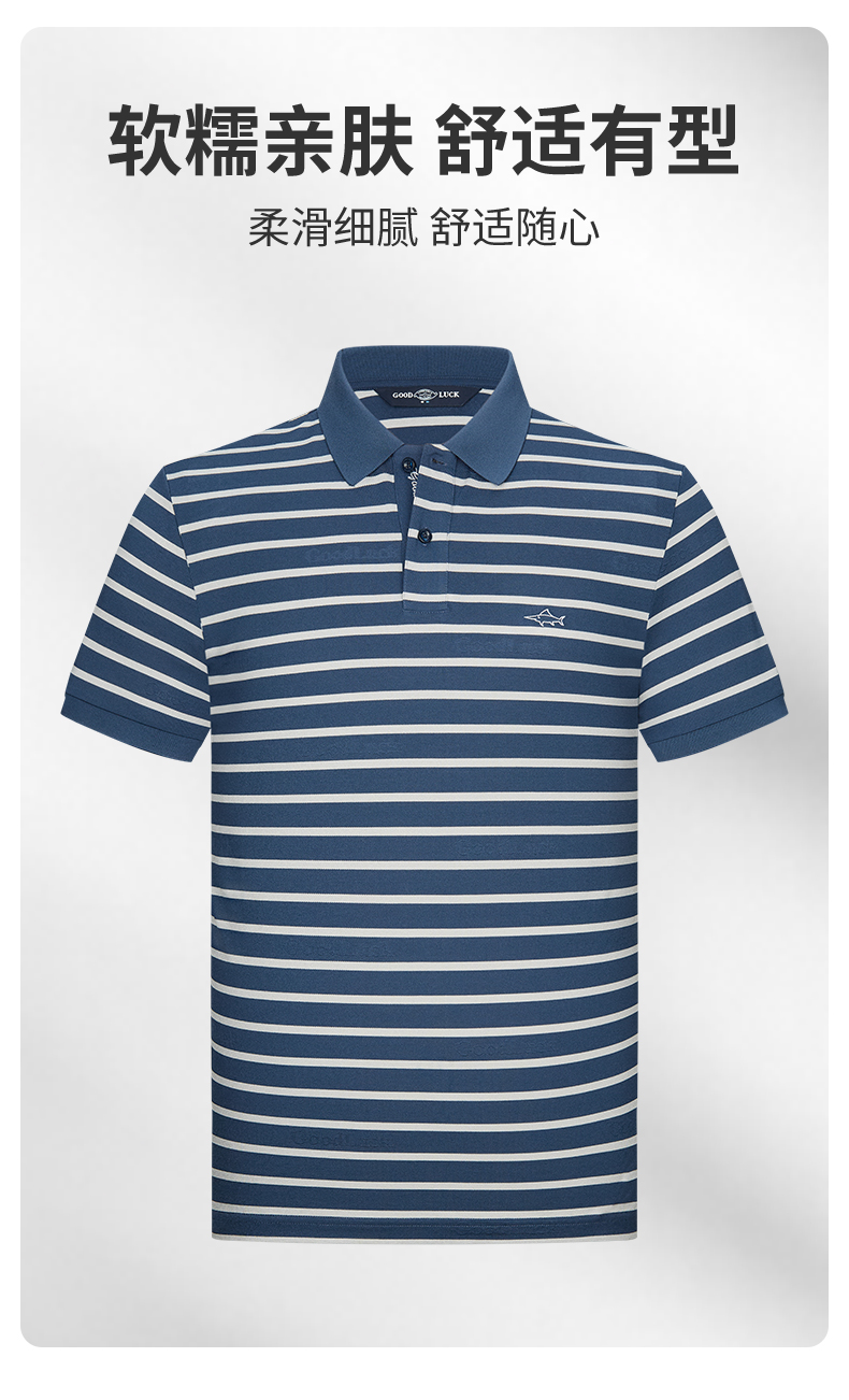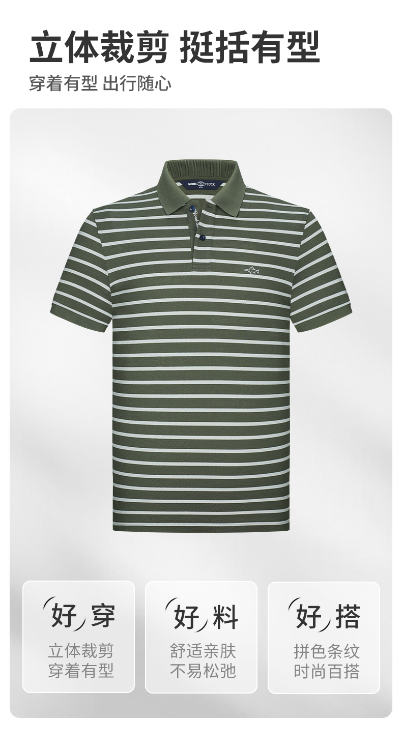 【桑蚕丝】德鲨男装商务短袖POLO衫2026夏新款休闲条纹翻领T恤男
