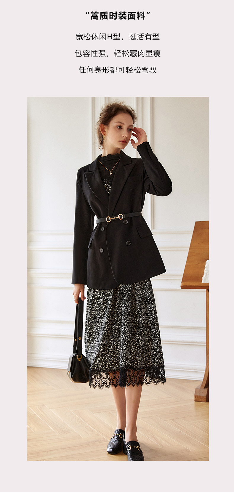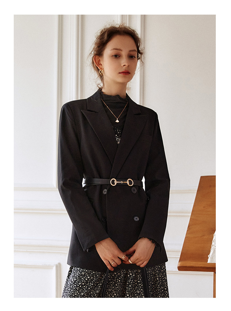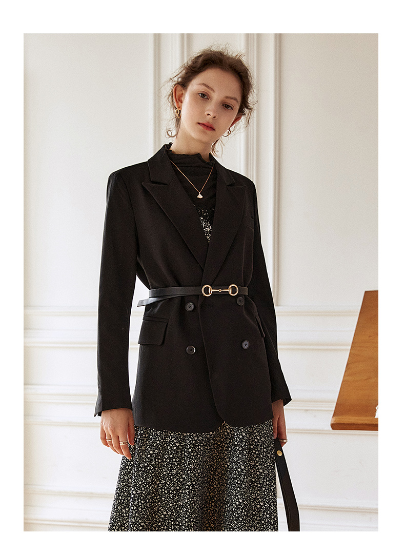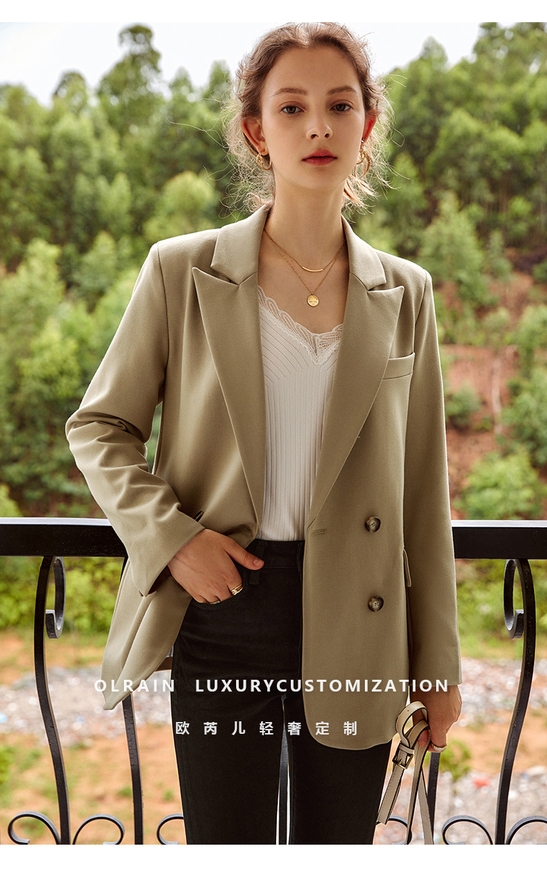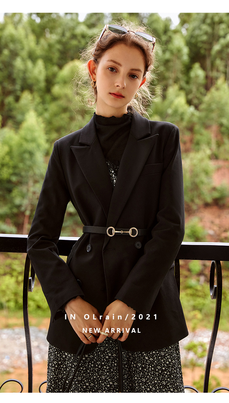 欧芮儿西装外套女新款2021时尚黑色休闲气质收腰双排扣大衣