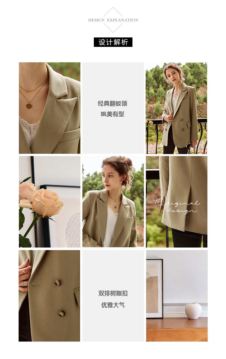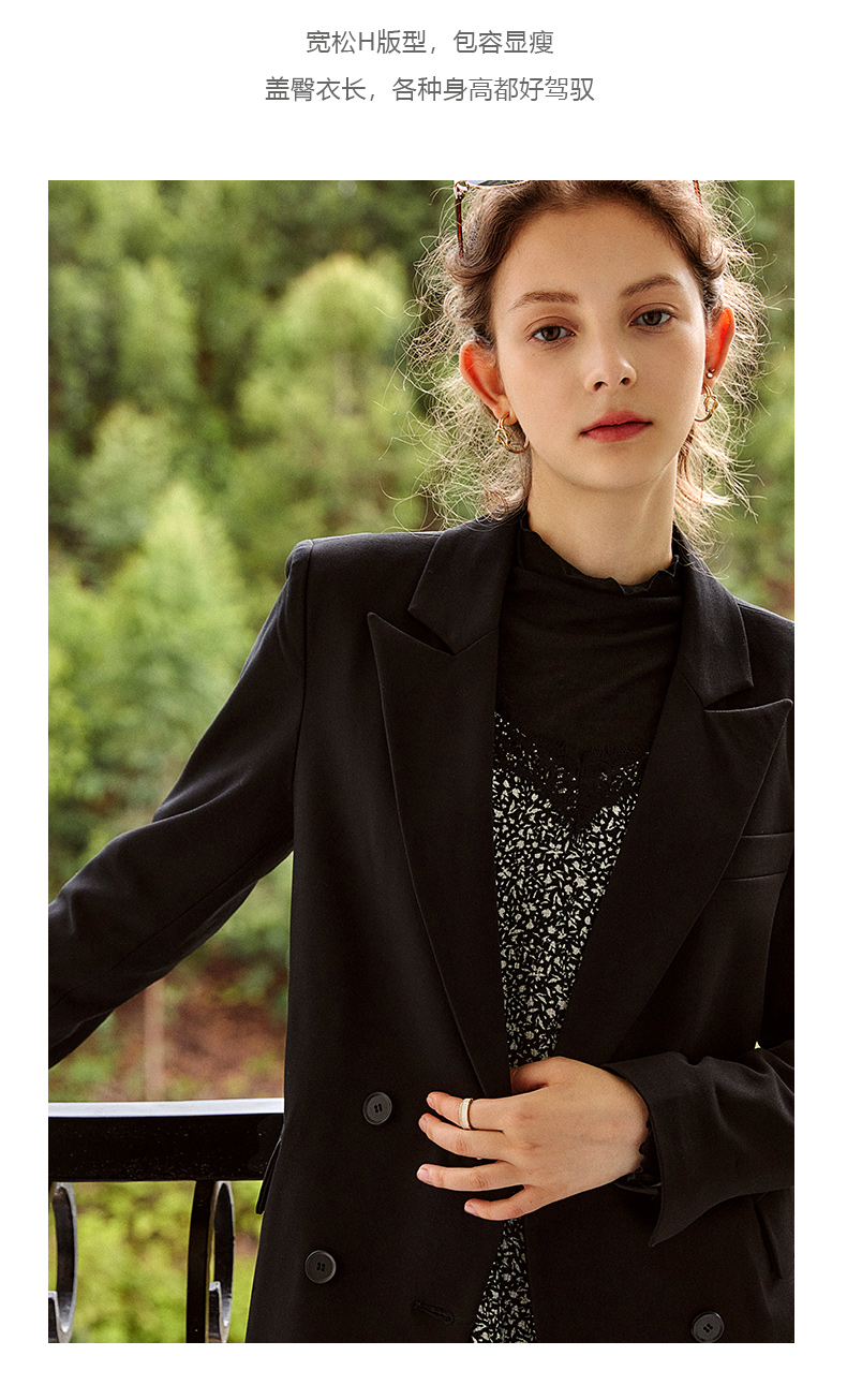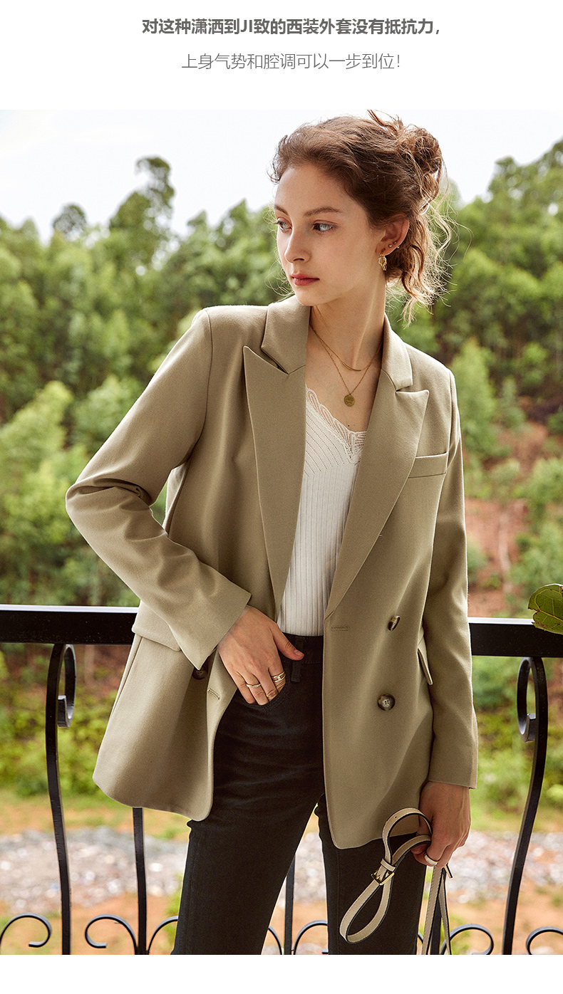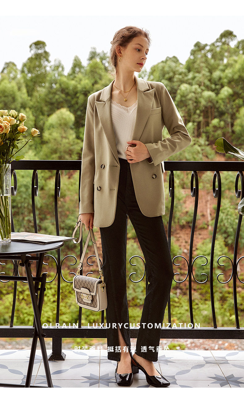 欧芮儿西装外套女新款2021时尚黑色休闲气质收腰双排扣大衣