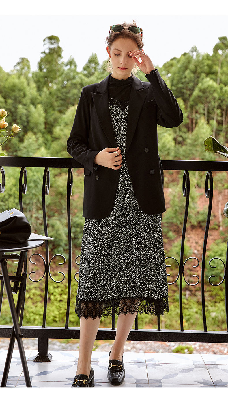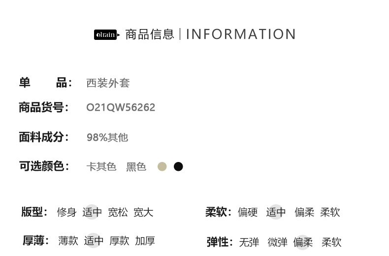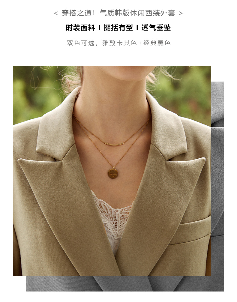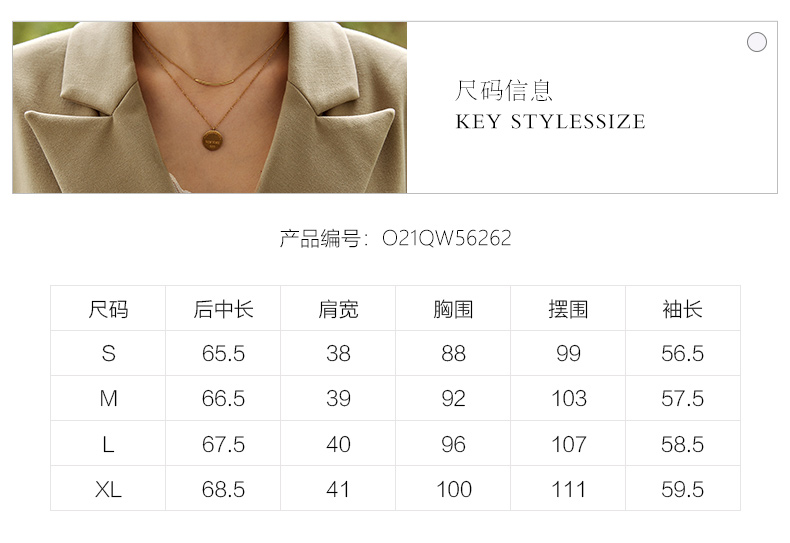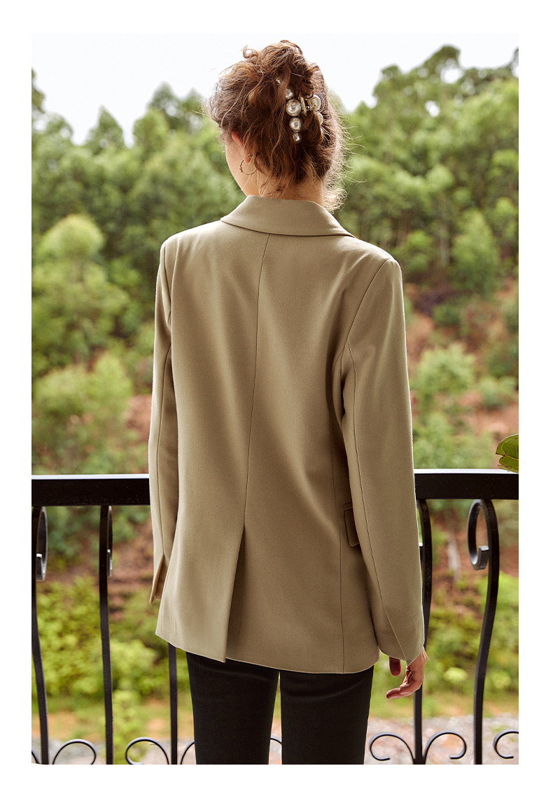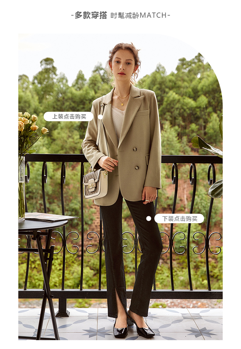 欧芮儿西装外套女新款2021时尚黑色休闲气质收腰双排扣大衣
