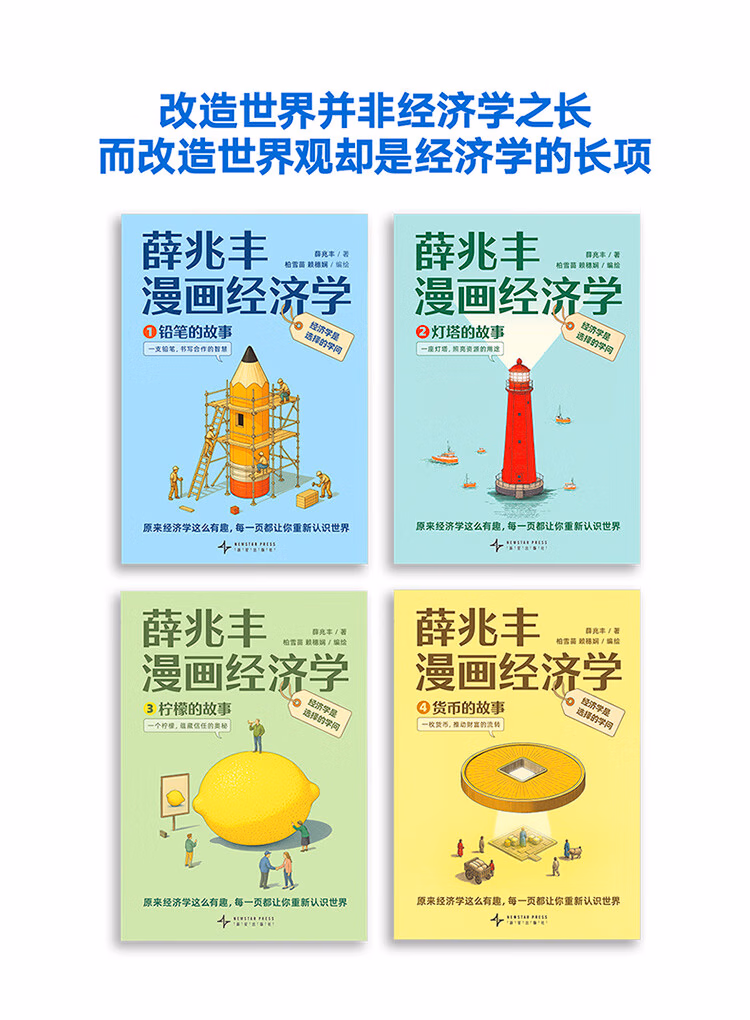 薛兆丰漫画经济学全4册 薛兆丰经济学讲义通识铅笔灯塔柠檬货币的故事逻辑思考理性决策SS 【全4册】