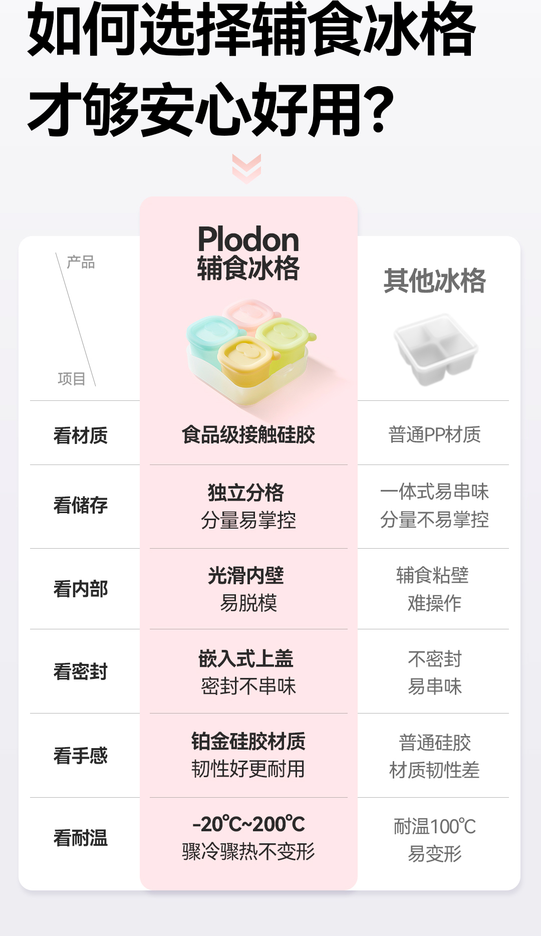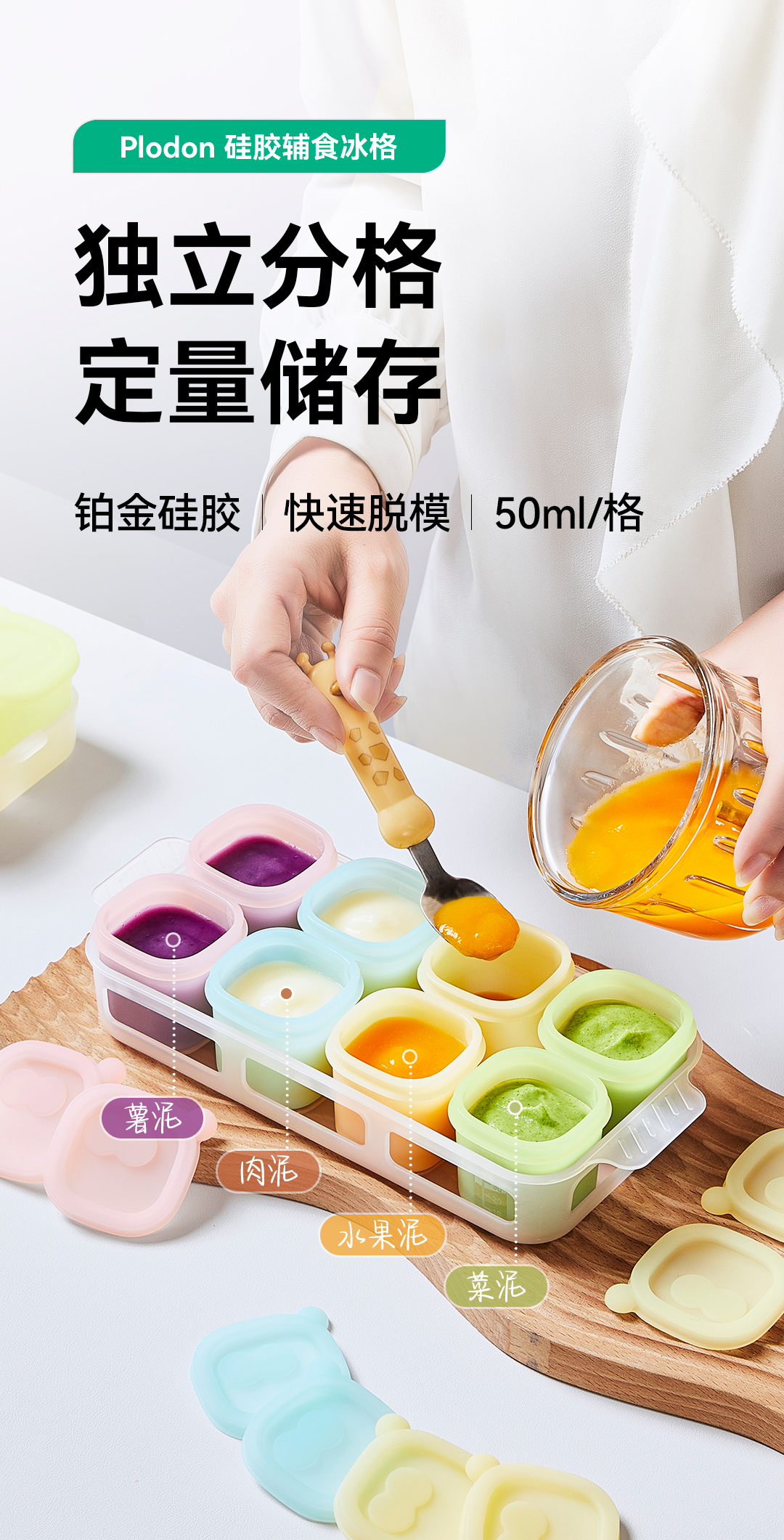 *【plodon浦利顿】宝宝辅食盒分装储存冷冻格婴儿肉泥保鲜硅胶蒸煮模具