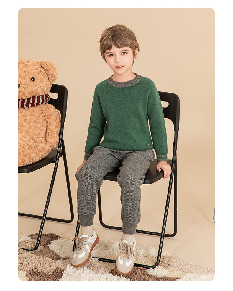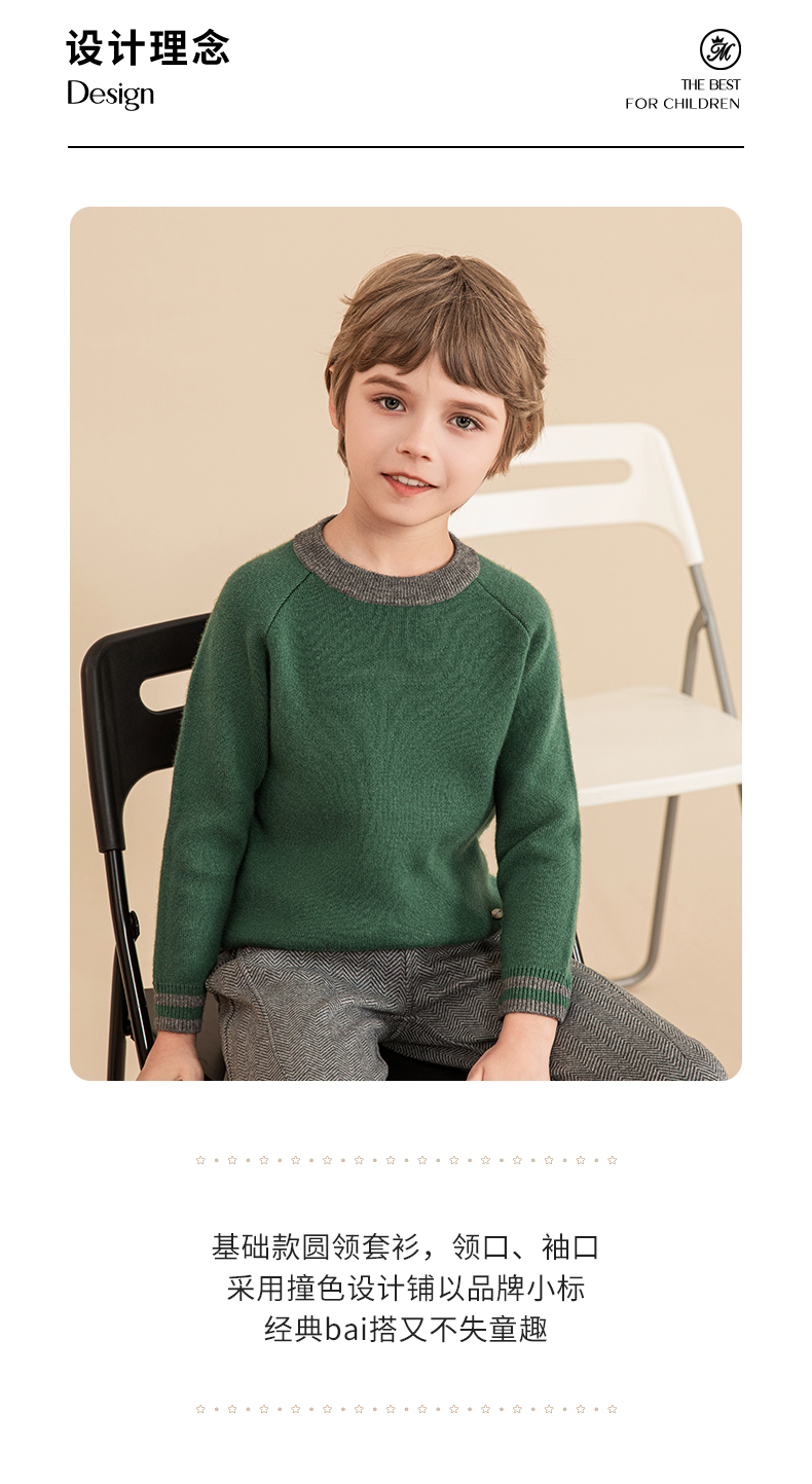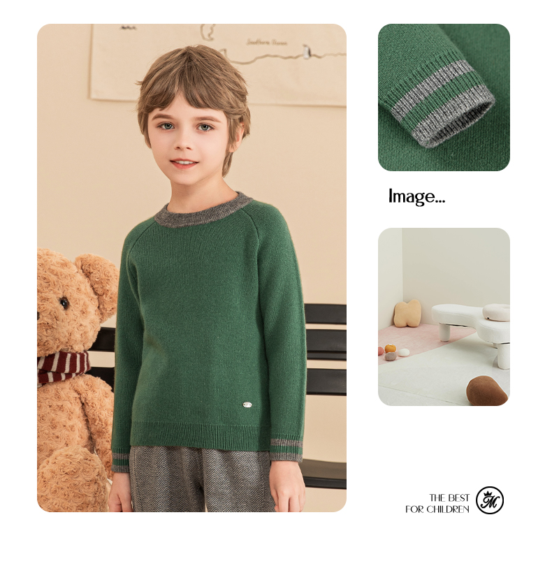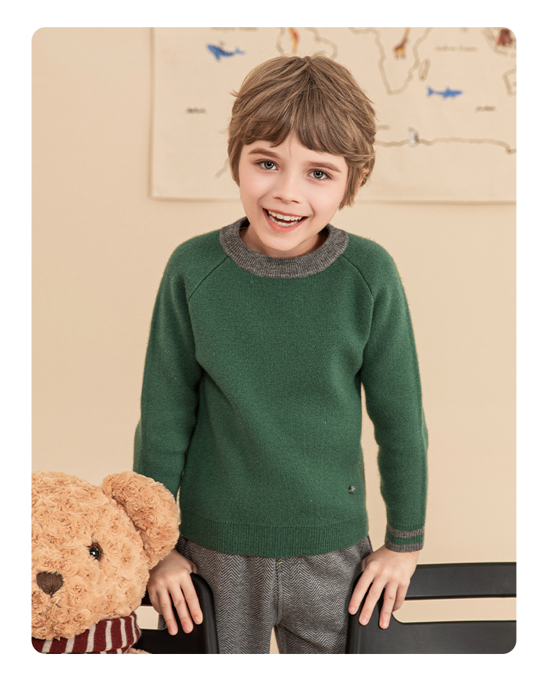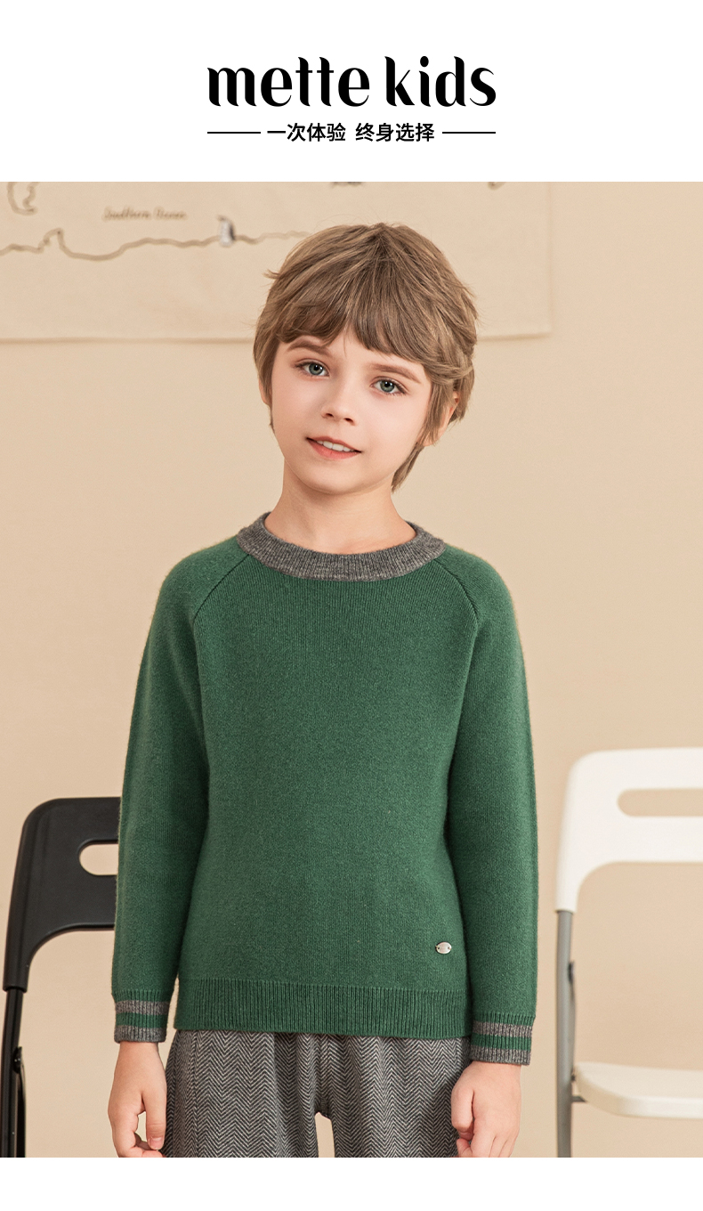 mettekids男童毛衣秋冬新款儿童加厚针织衫中大童休闲绿色童装