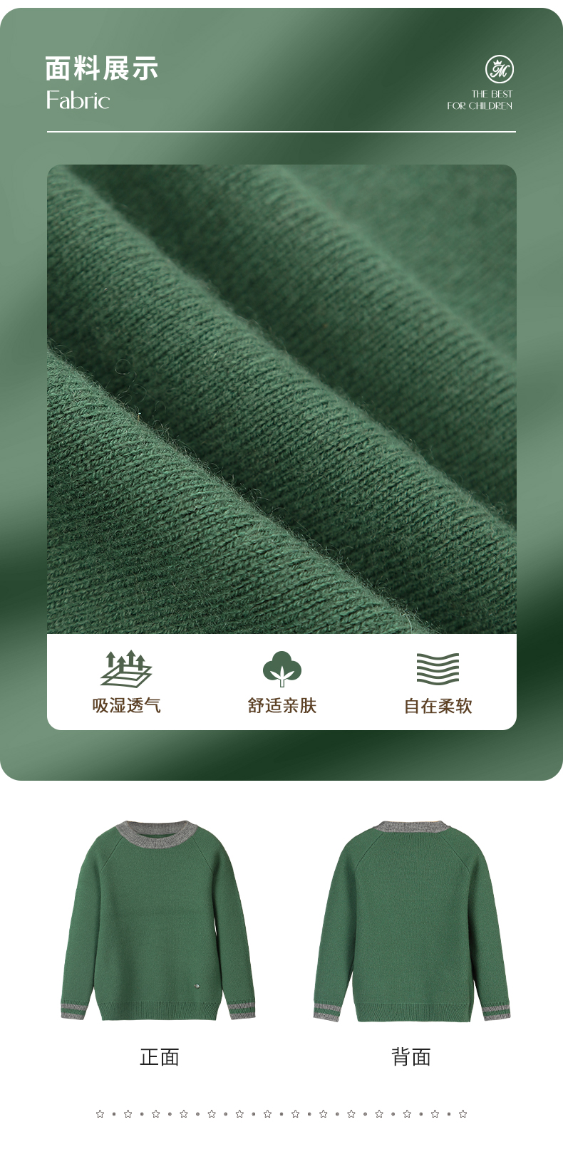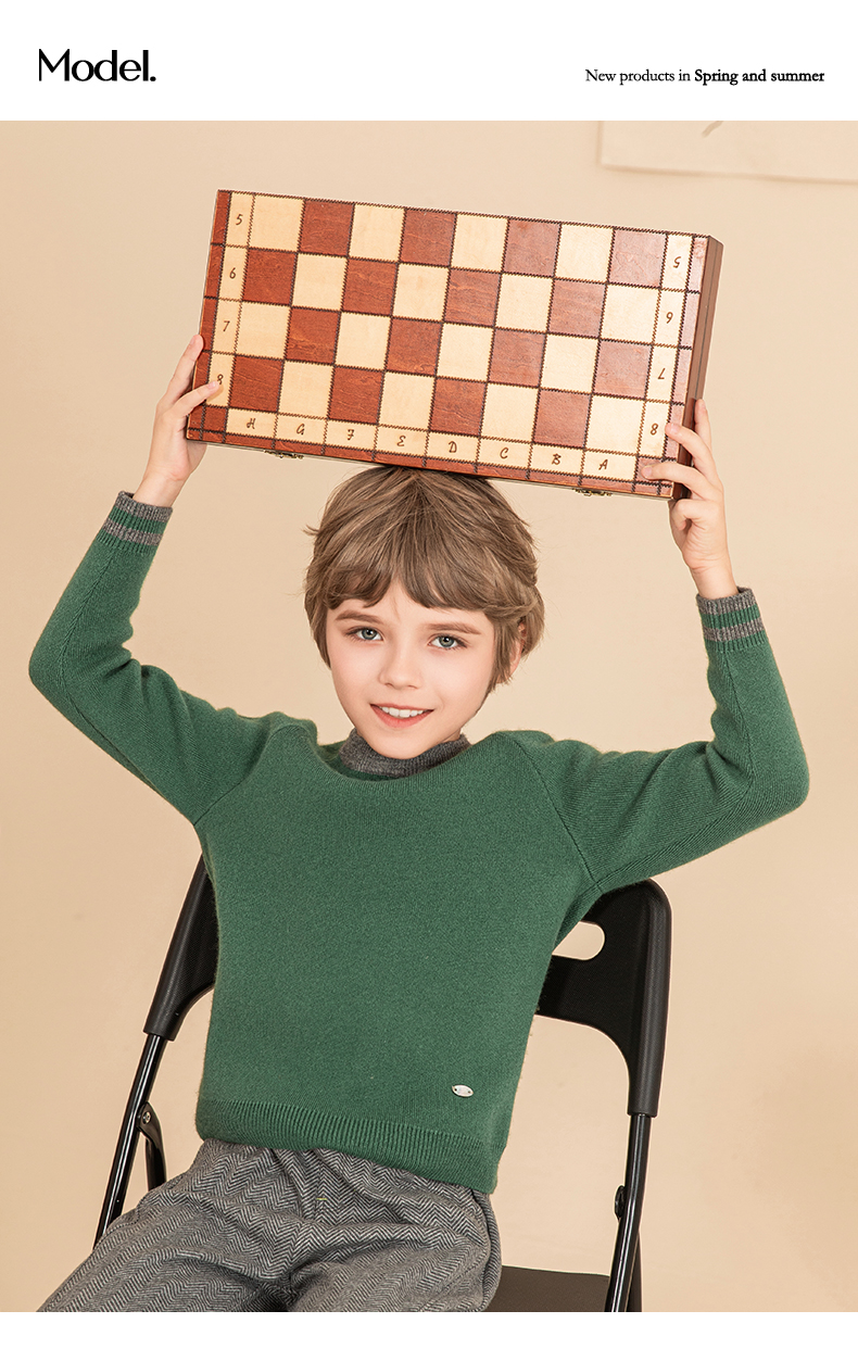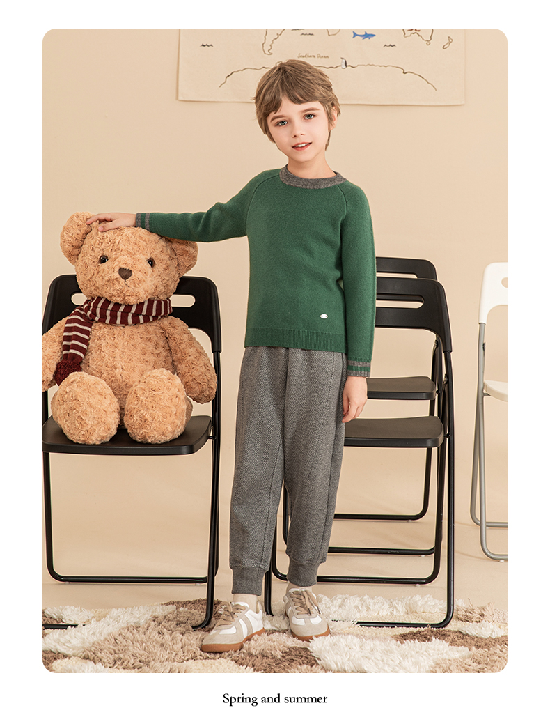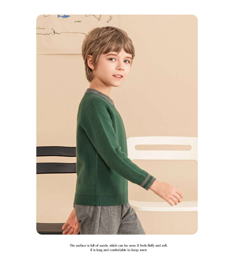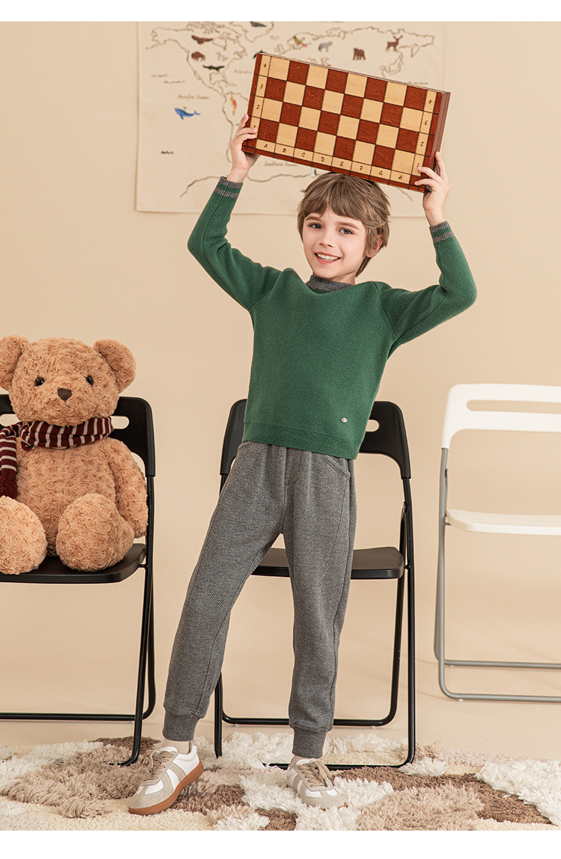 mettekids男童毛衣秋冬新款儿童加厚针织衫中大童休闲绿色童装