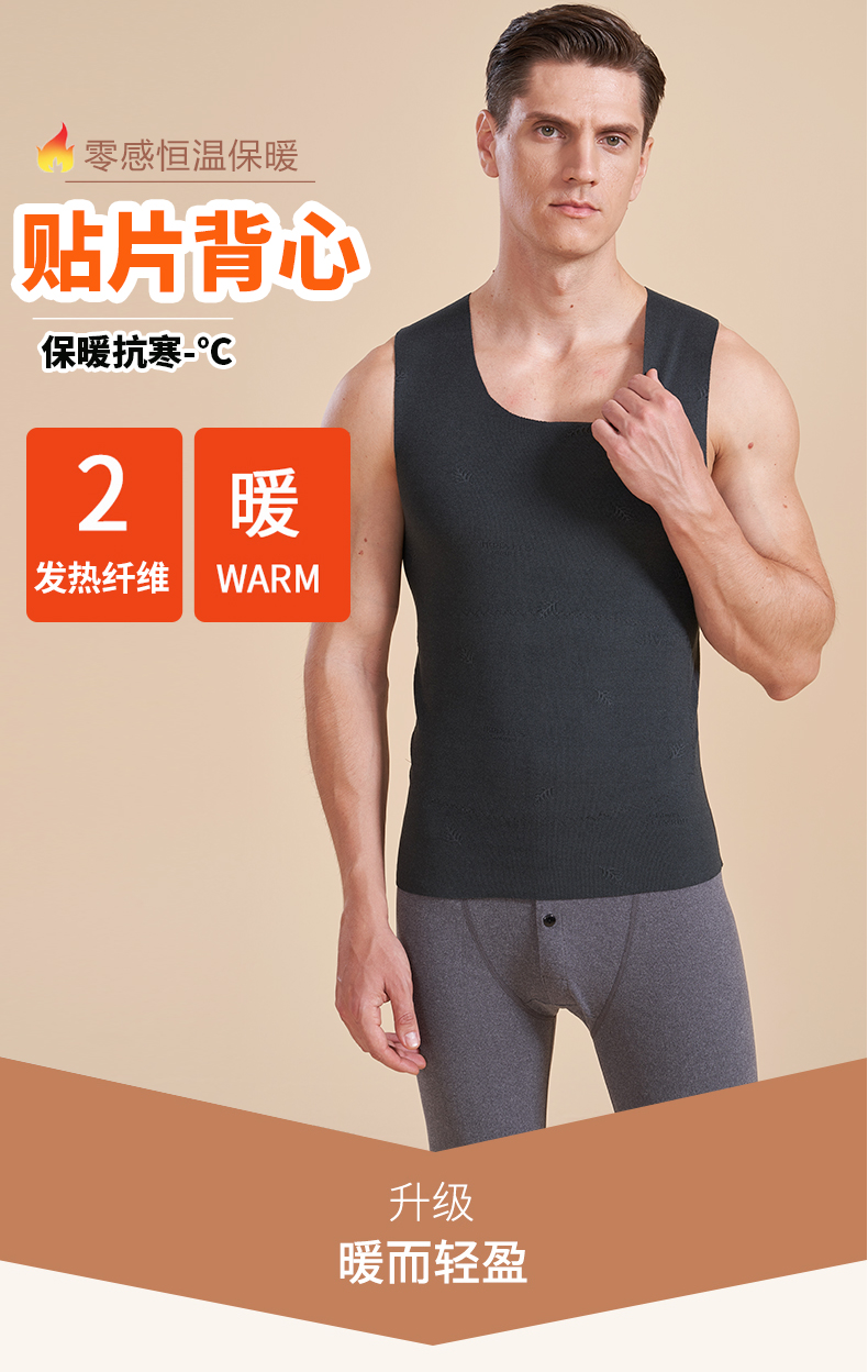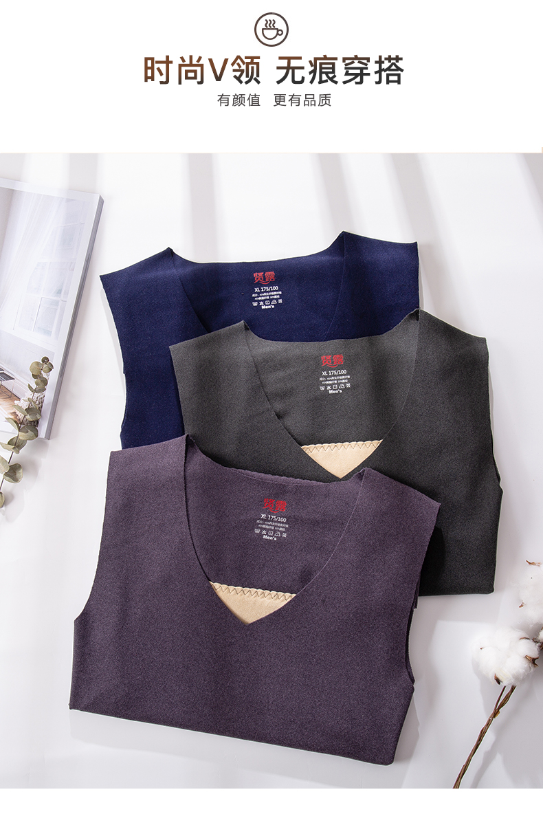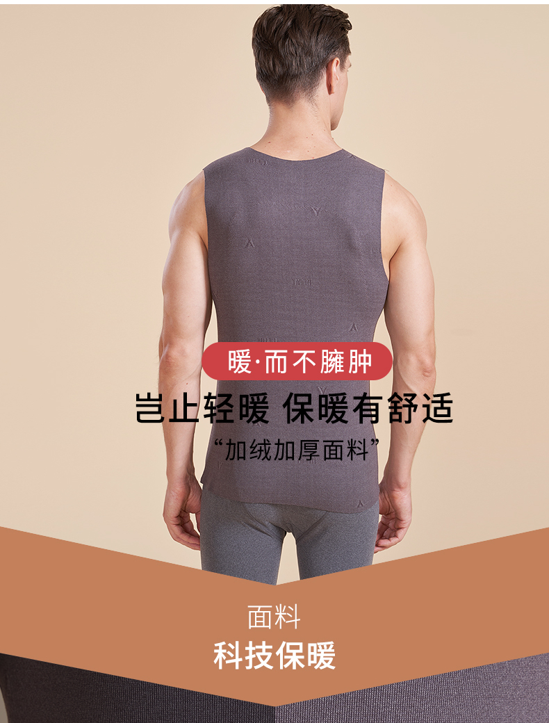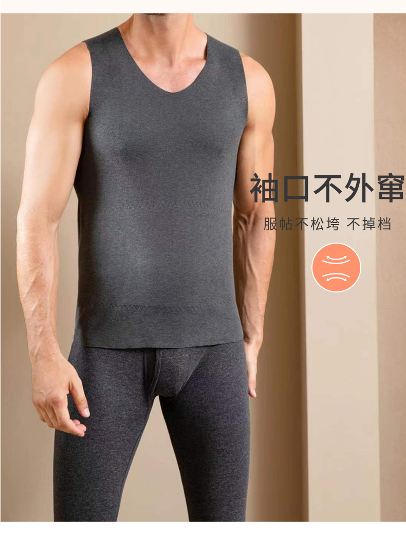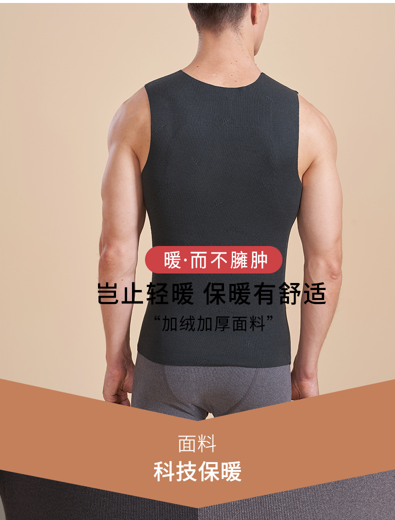 男士羽绒蚕丝聚热亲肤双面磨毛贴片加护加厚无痕保暖背心9925/9971/9926