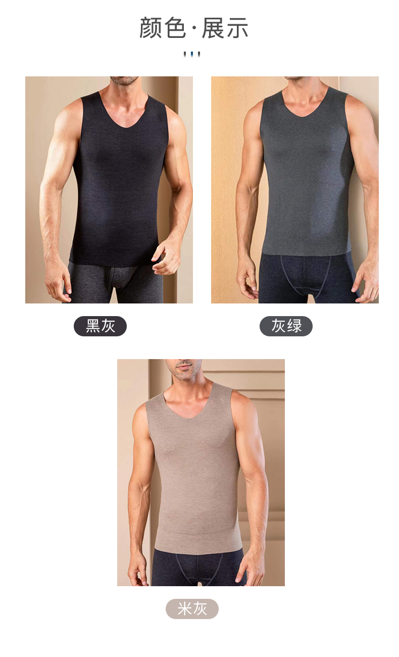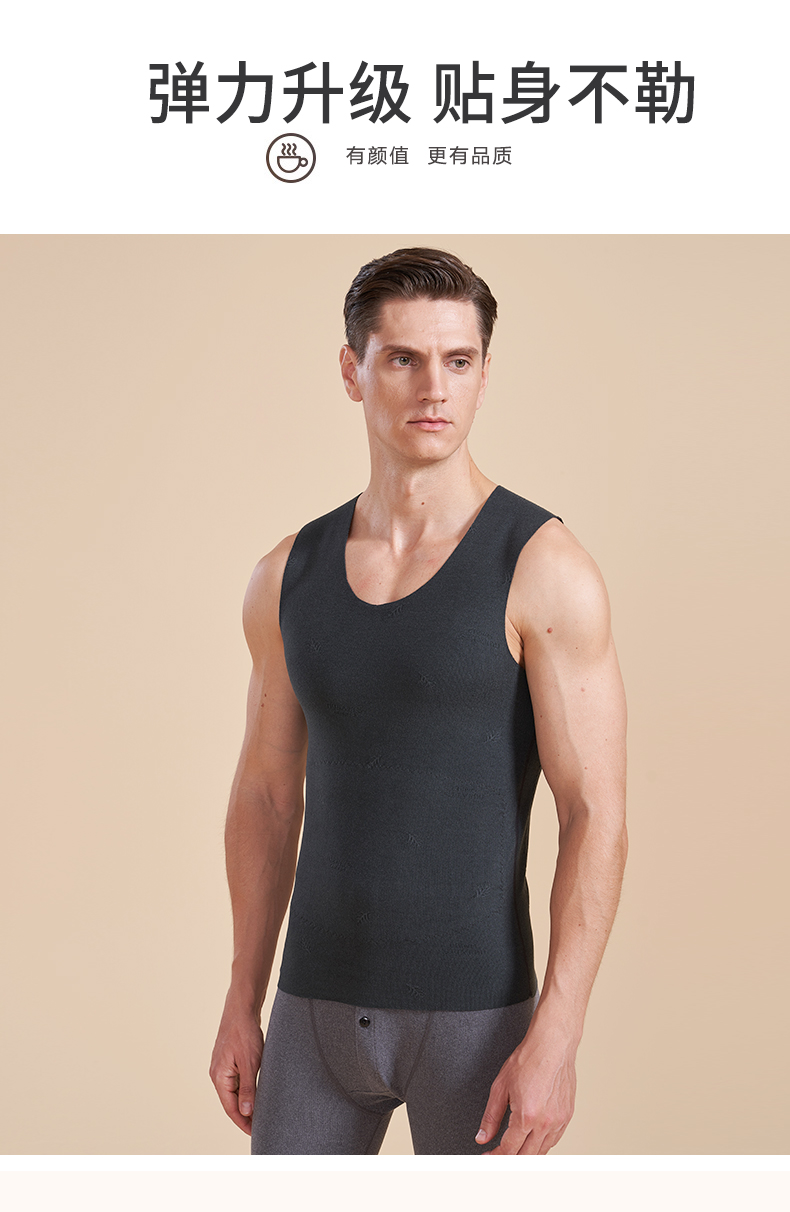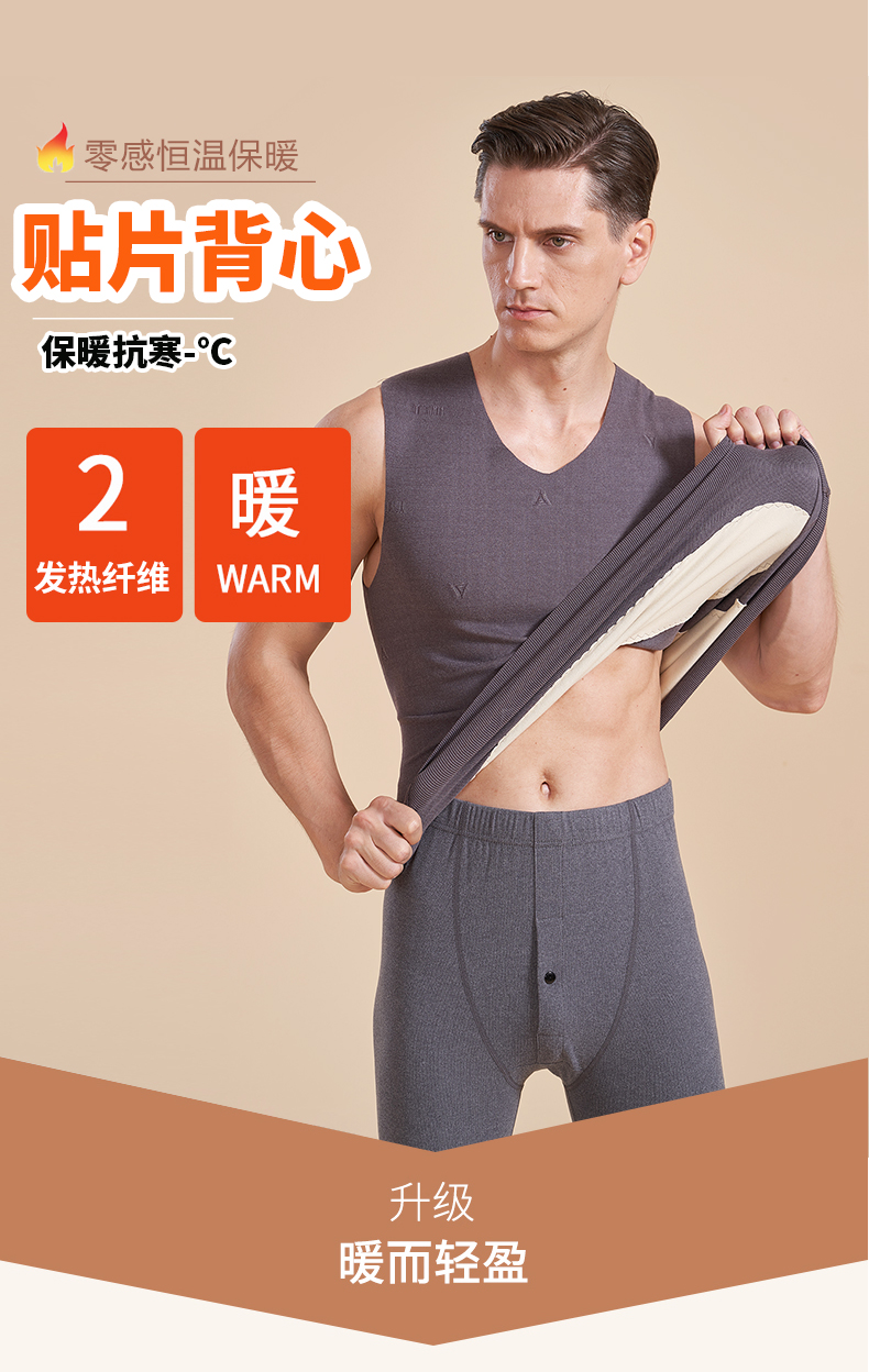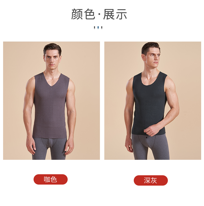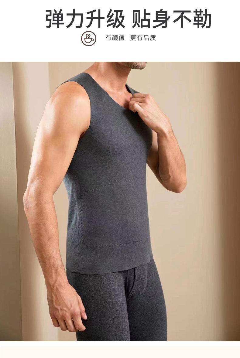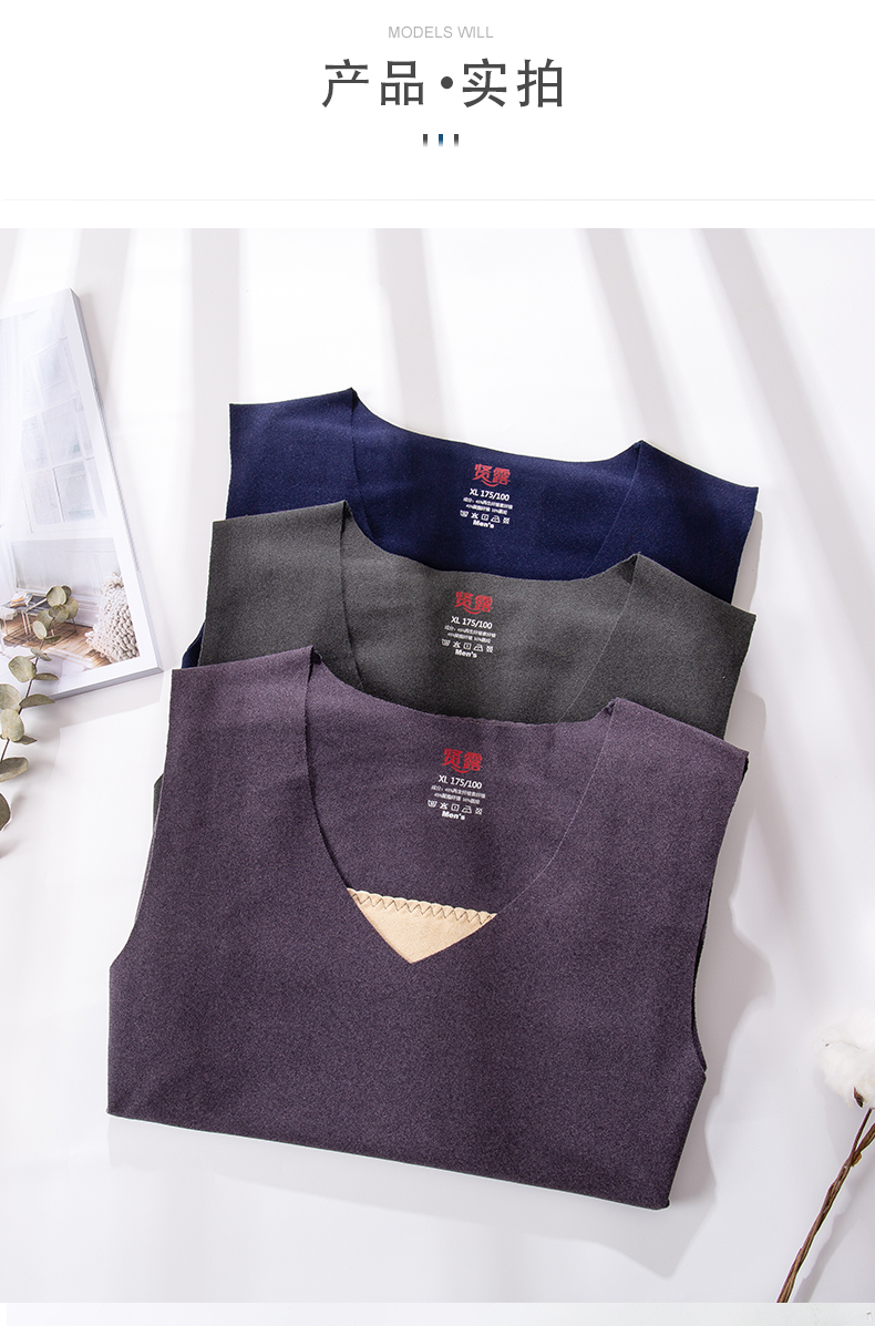 男士羽绒蚕丝聚热亲肤双面磨毛贴片加护加厚无痕保暖背心9925/9971/9926