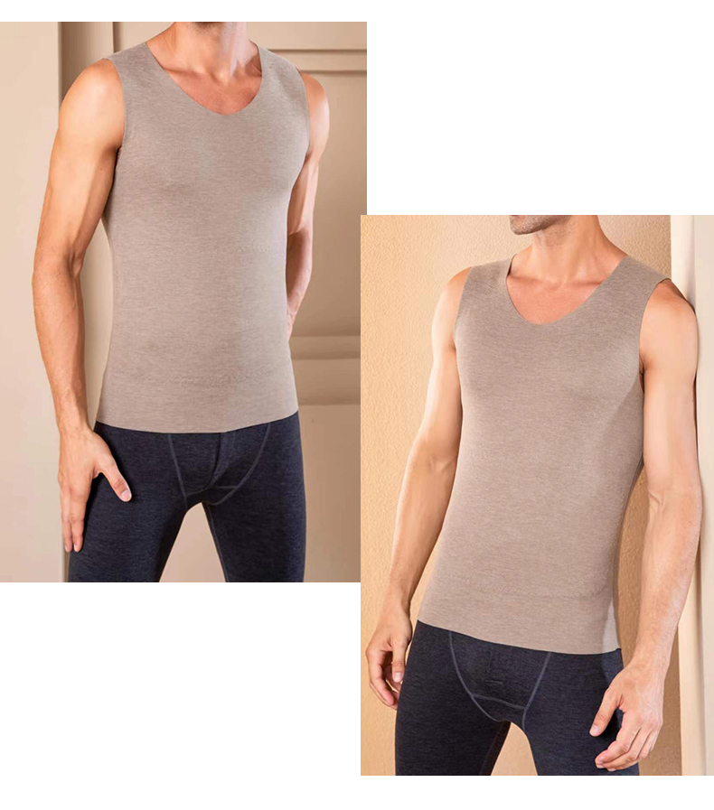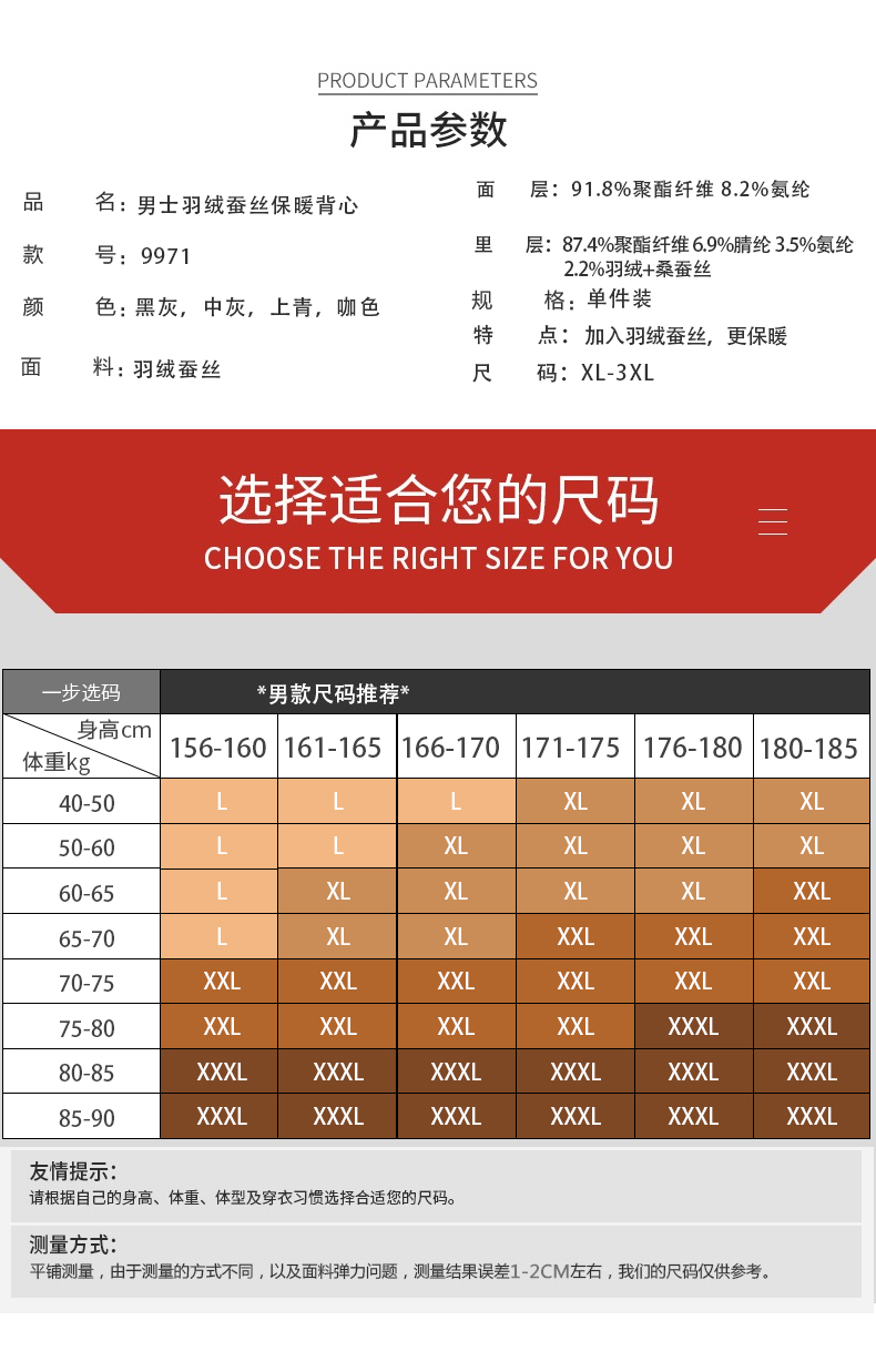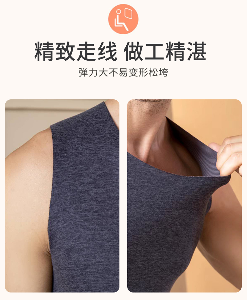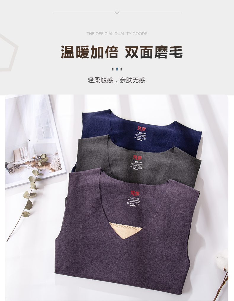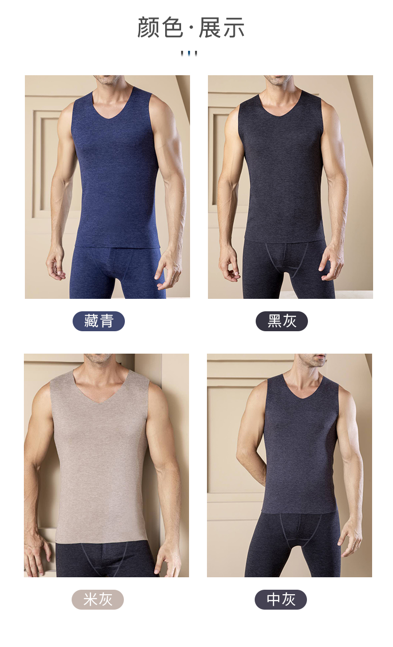 男士羽绒蚕丝聚热亲肤双面磨毛贴片加护加厚无痕保暖背心9925/9971/9926
