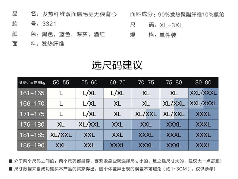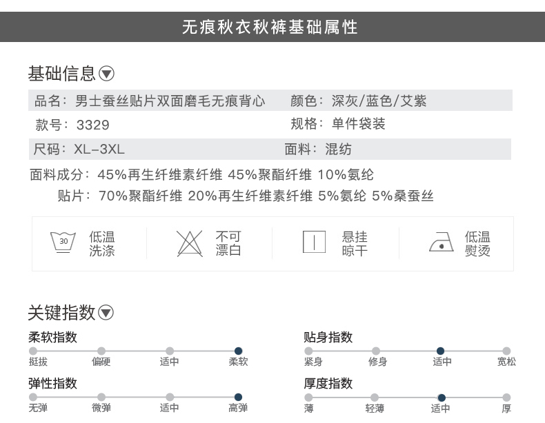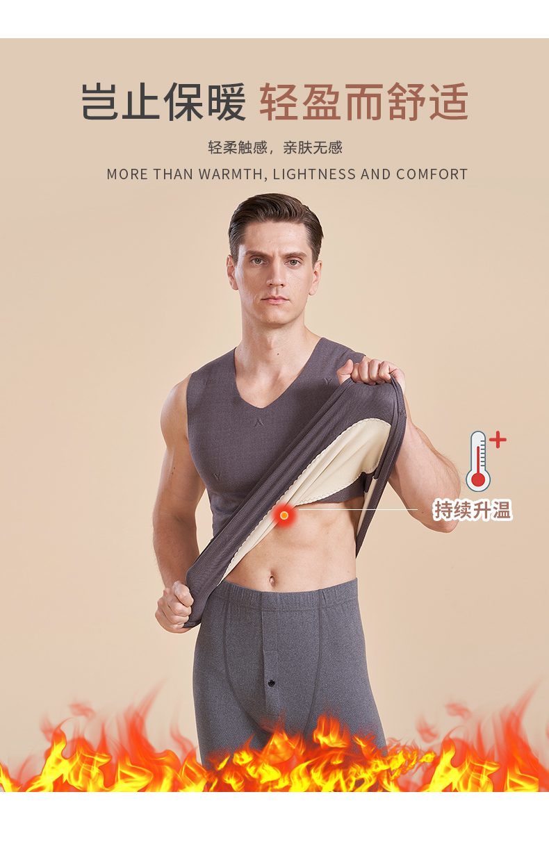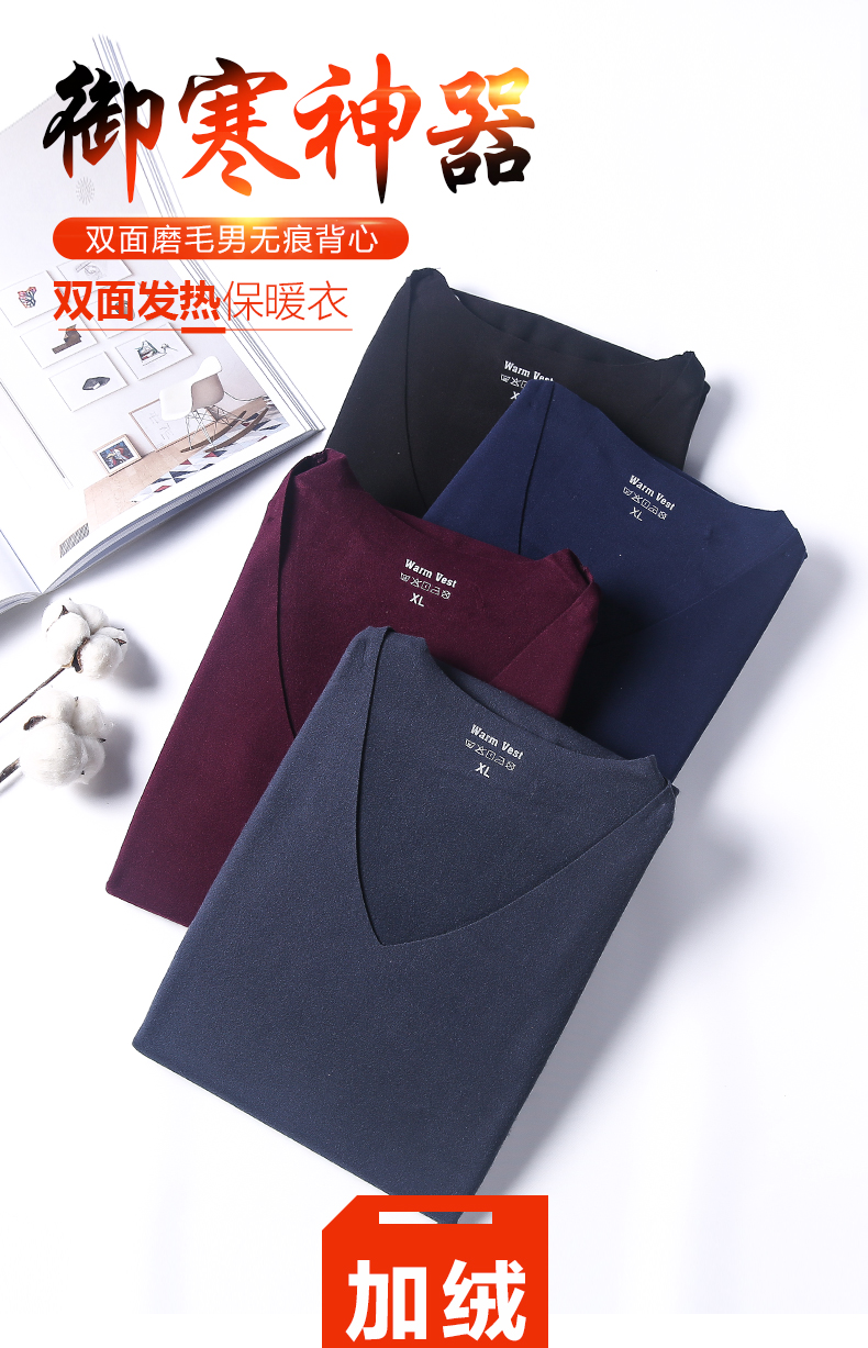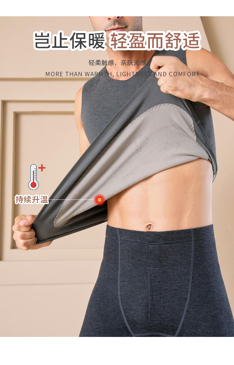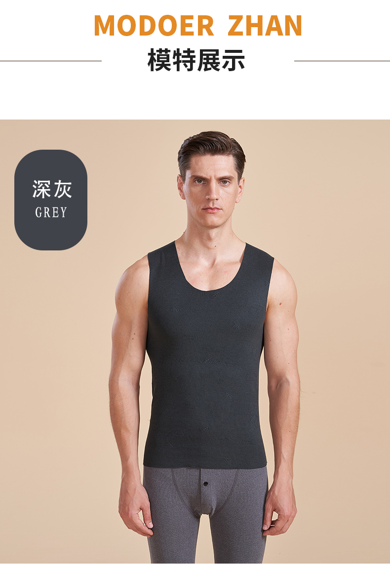 男士羽绒蚕丝聚热亲肤双面磨毛贴片加护加厚无痕保暖背心9925/9971/9926