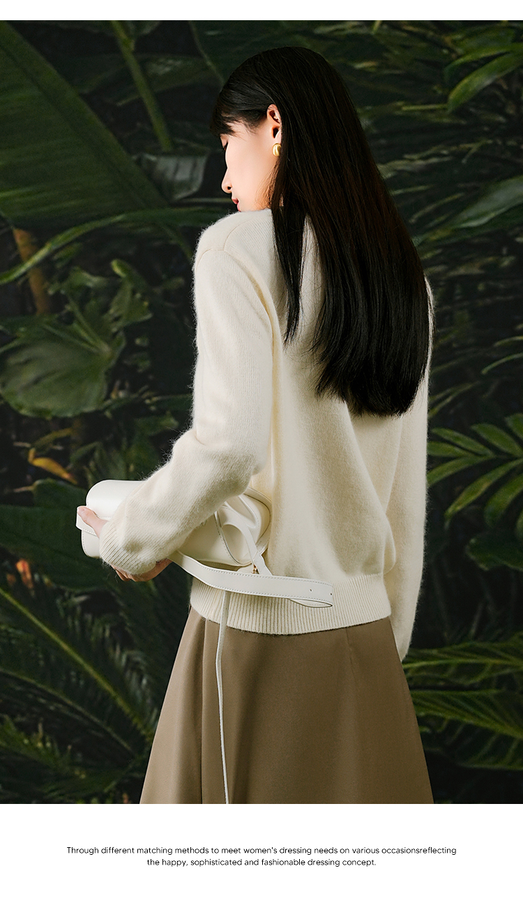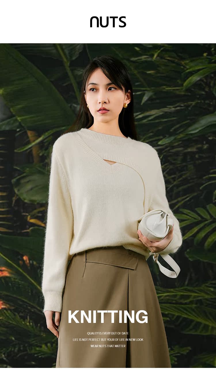 NUTS春秋季新款白色气质宽松显瘦百搭套头针织衫女411052278
