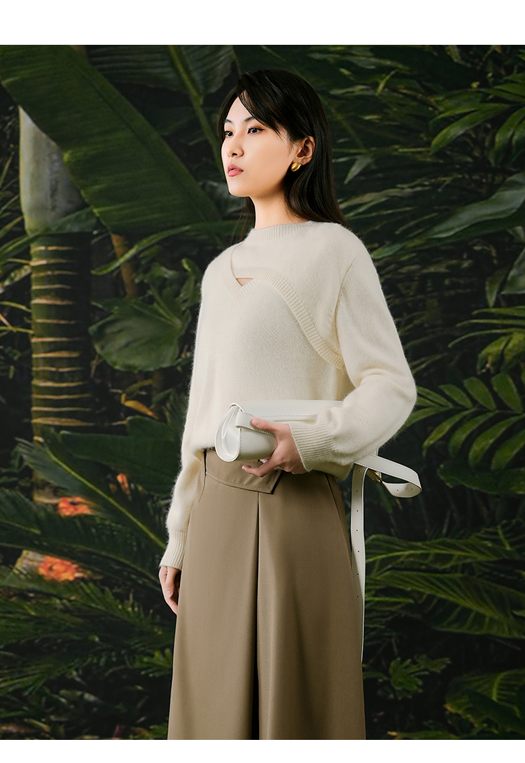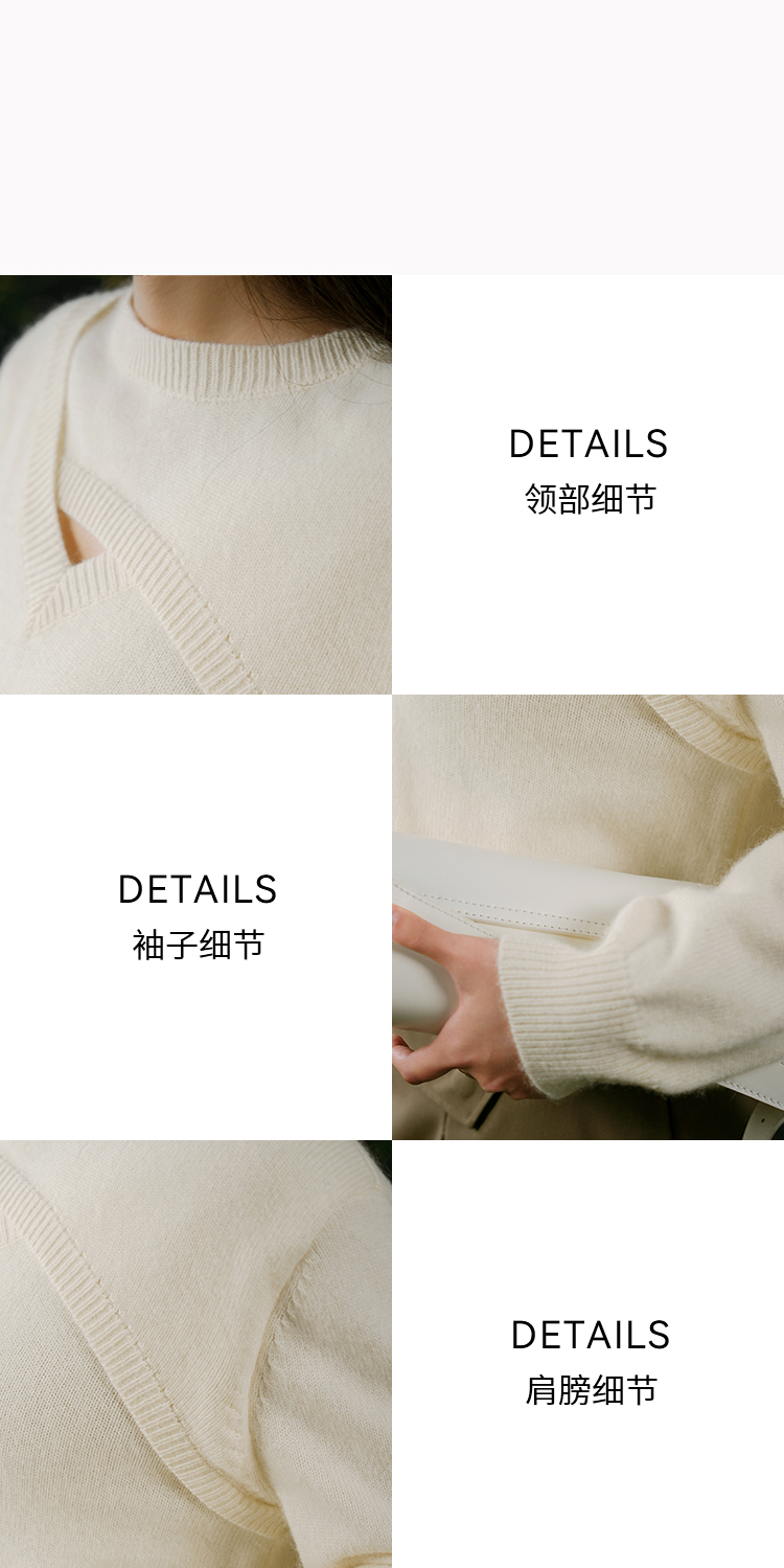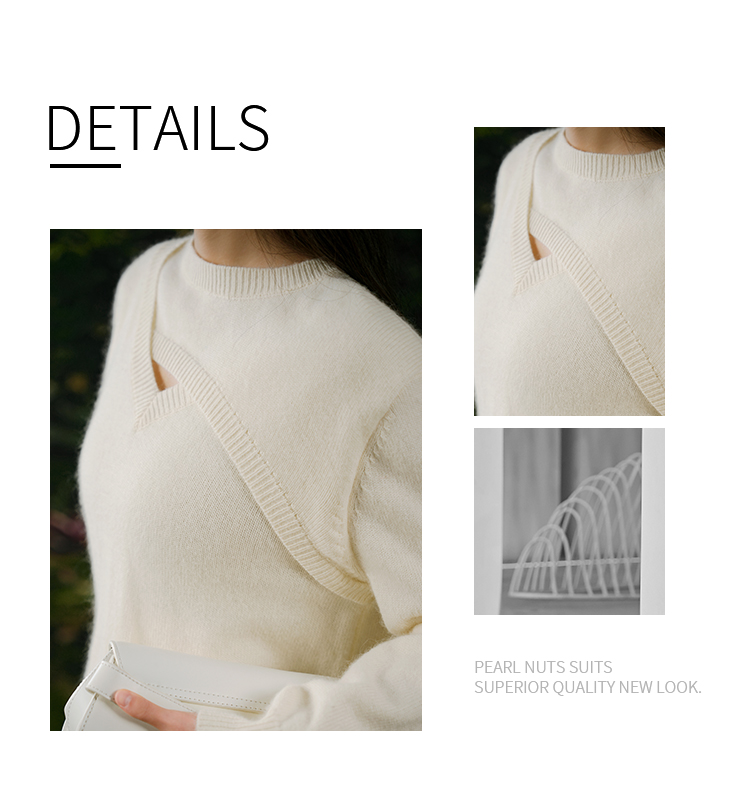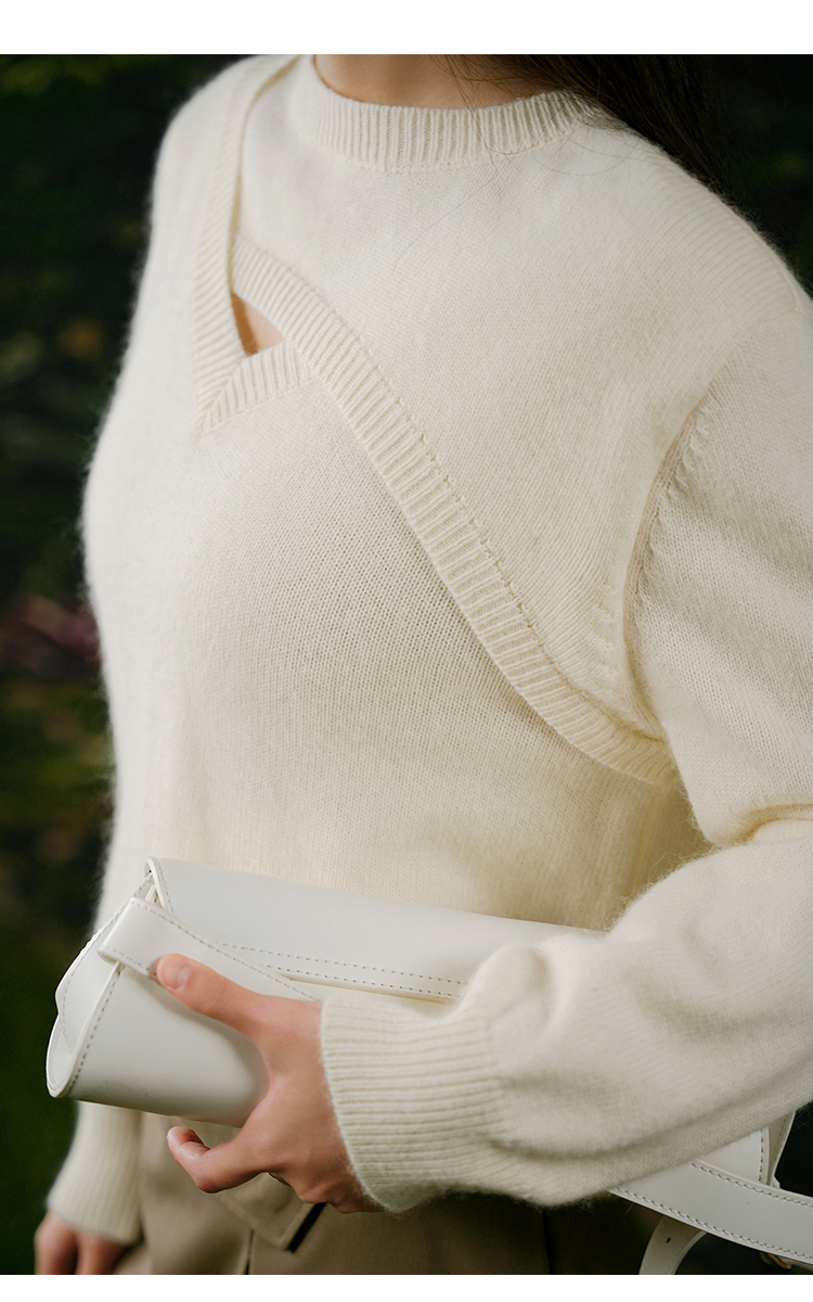 oldcolour白色针织衫春季新款圆领设计感宽松毛衣打底女P11052406
