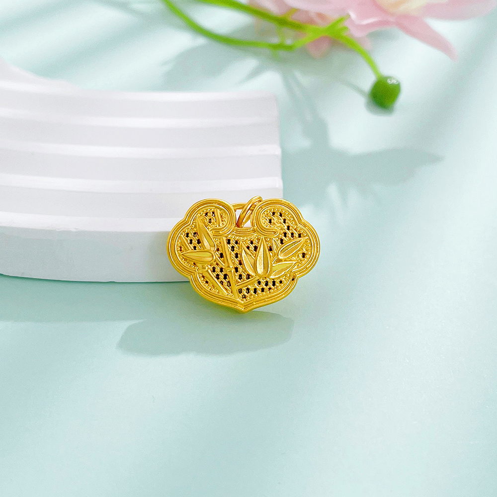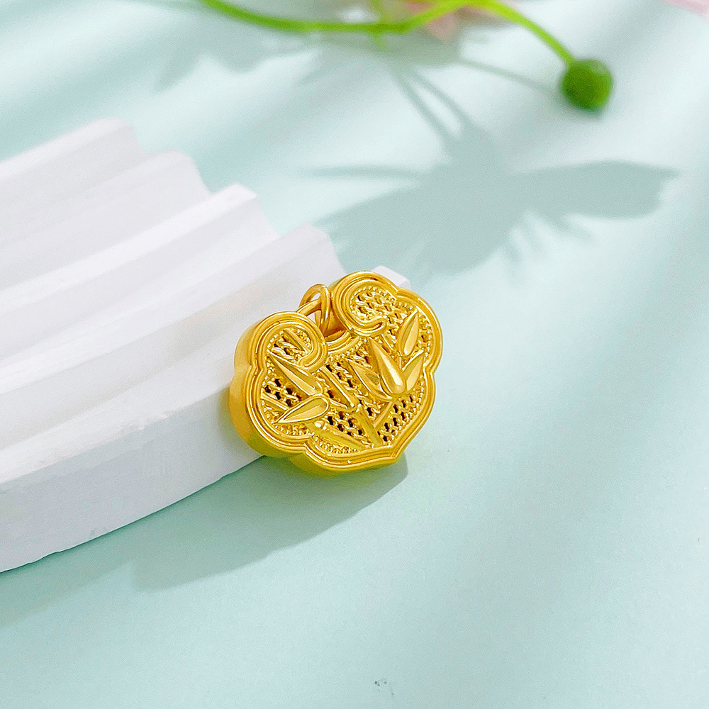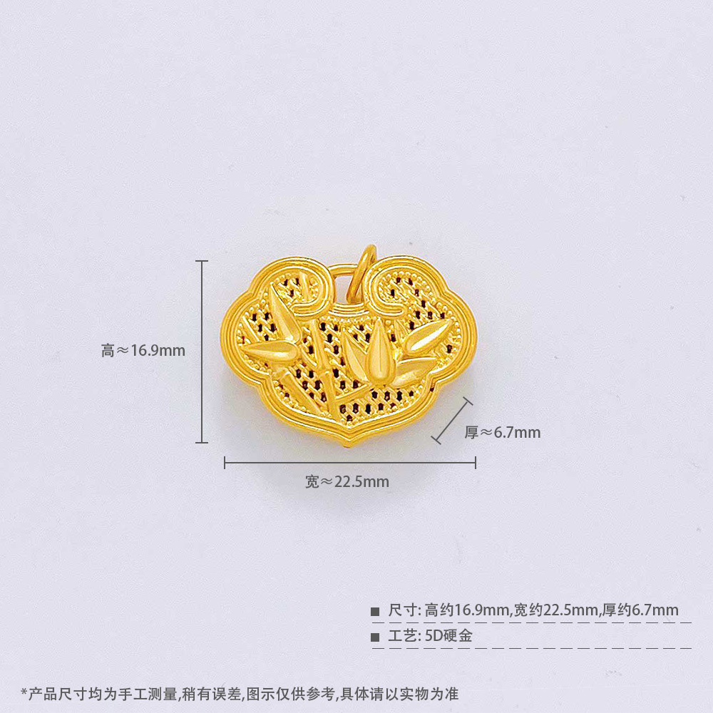 【限时7.5折】【定价黄金】足金 无氰5D硬金空心喜上眉梢平安锁锁包吊坠(V5DDZ00023)(预售产品下单后不退款不退货不换货不补差价)