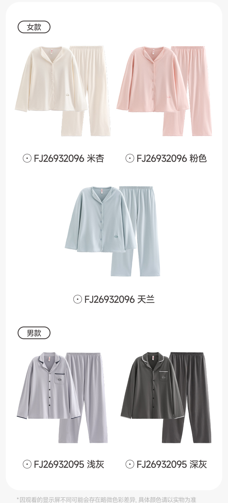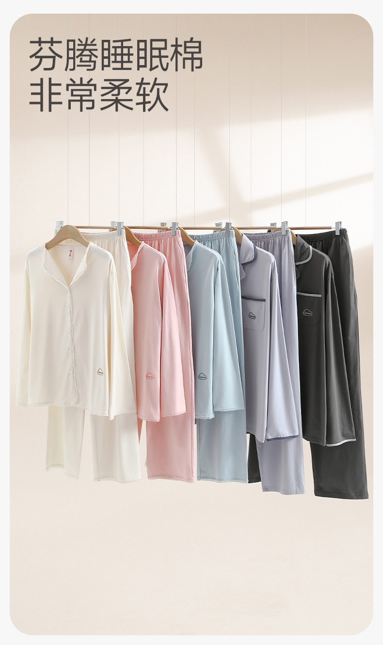 芬腾纯棉长袖情侣睡衣女士翻领开衫男士休闲宽松秋家居服开衫套装