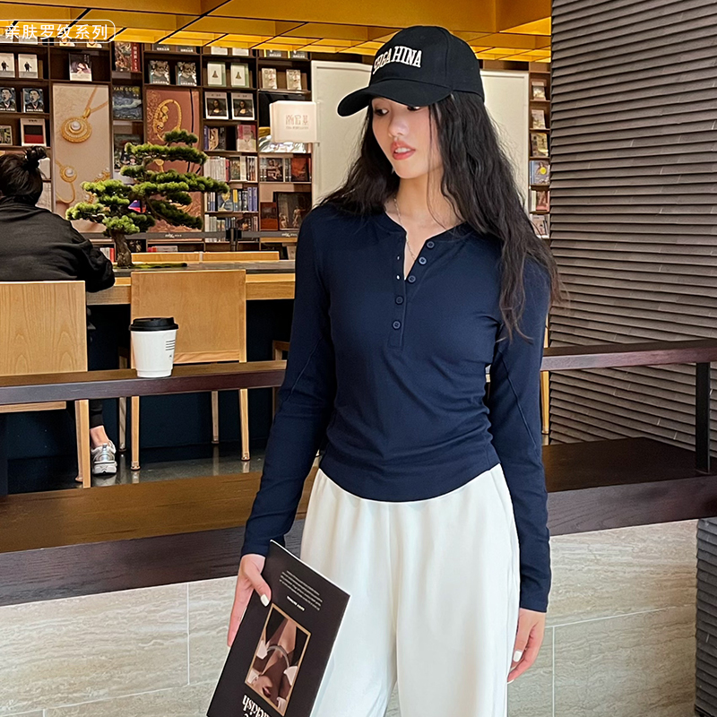 哈瓦塔(升级款)罗纹纽扣长袖兰精莫代尔超柔舒适上衣