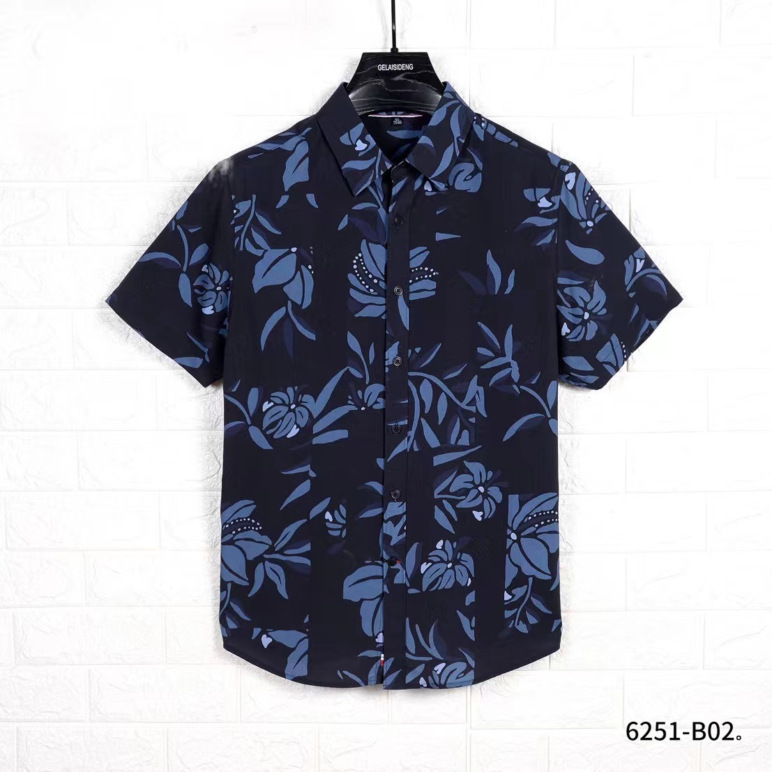 6251# 短袖衬衫 男装休闲度假风 印花疏织棉料 免烫柔软 尺码:M~2XL