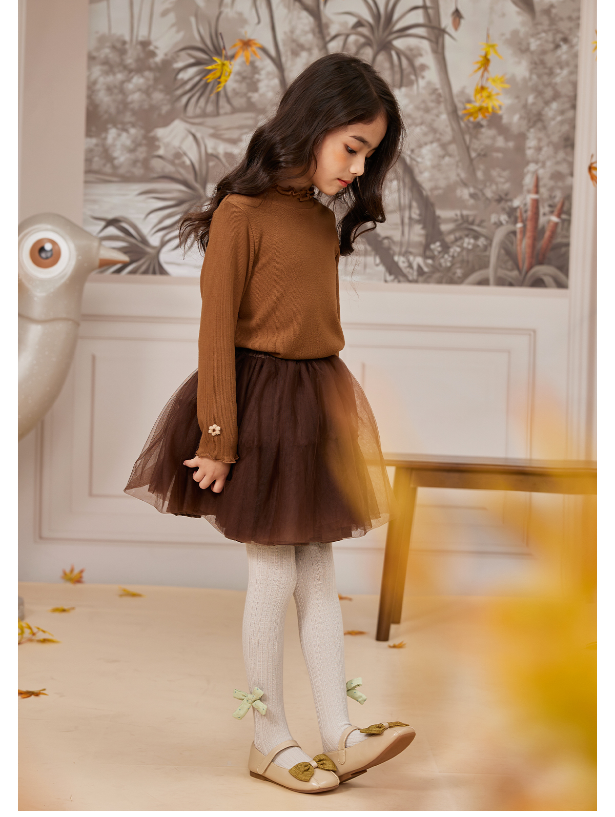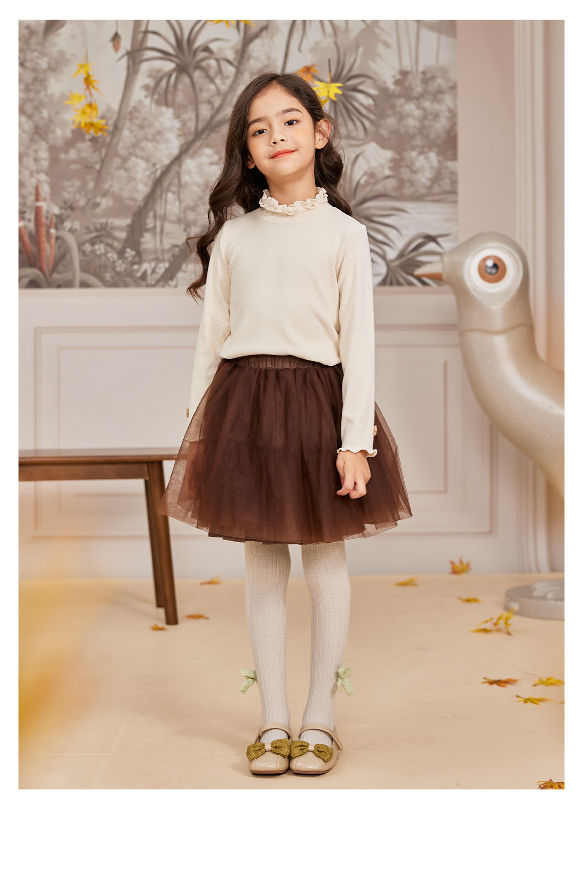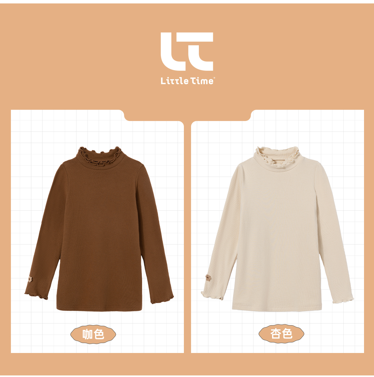 littletime法式女童打底衫花边长袖上衣 23新款秋装儿童针织衫T恤