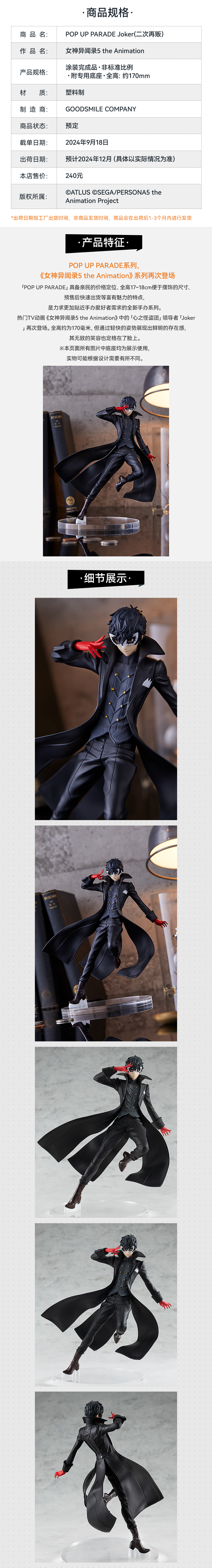 【GSC现货】POP UP PARADE Joker(二次再贩)女神异闻录5 the Animation