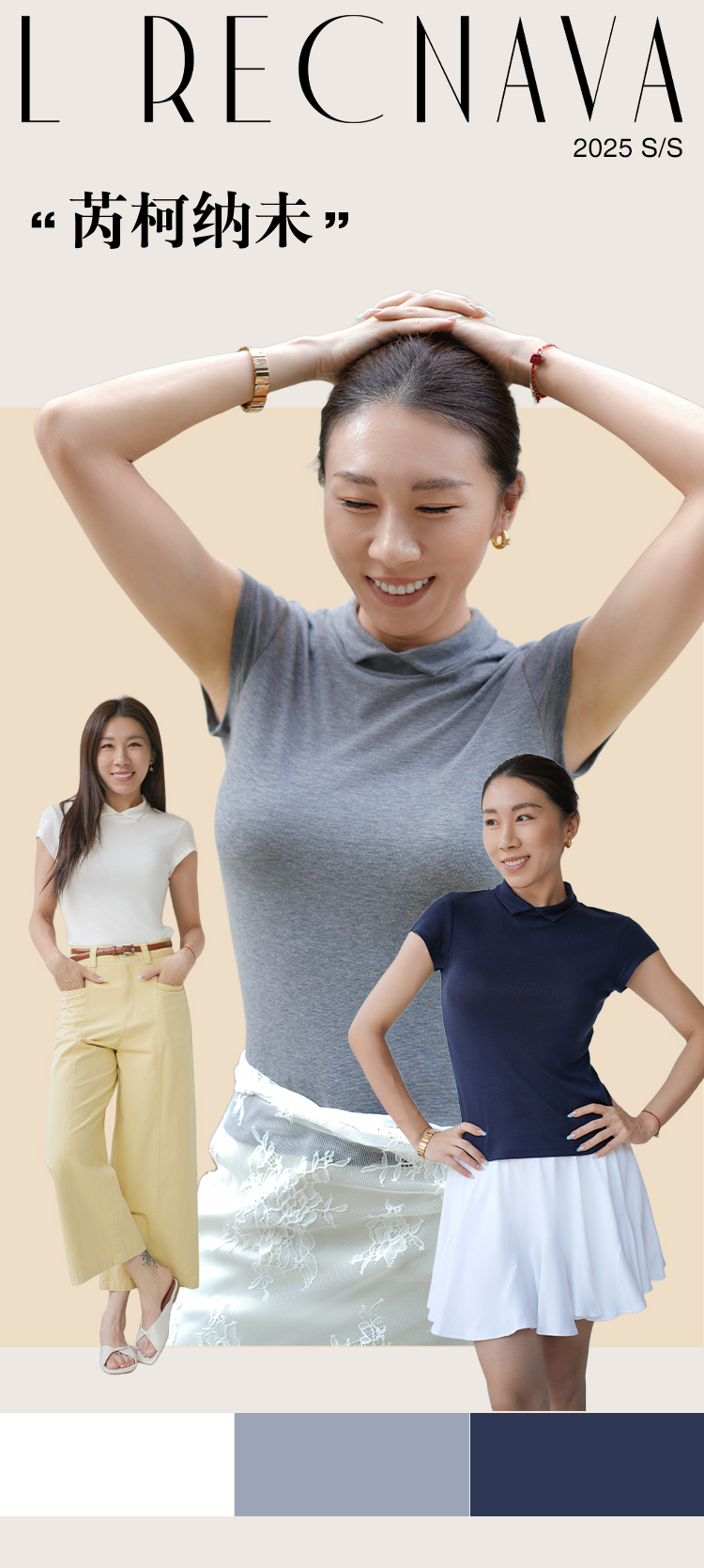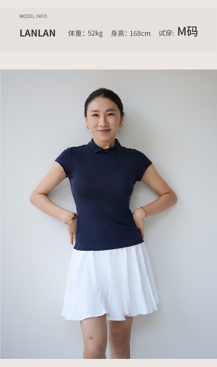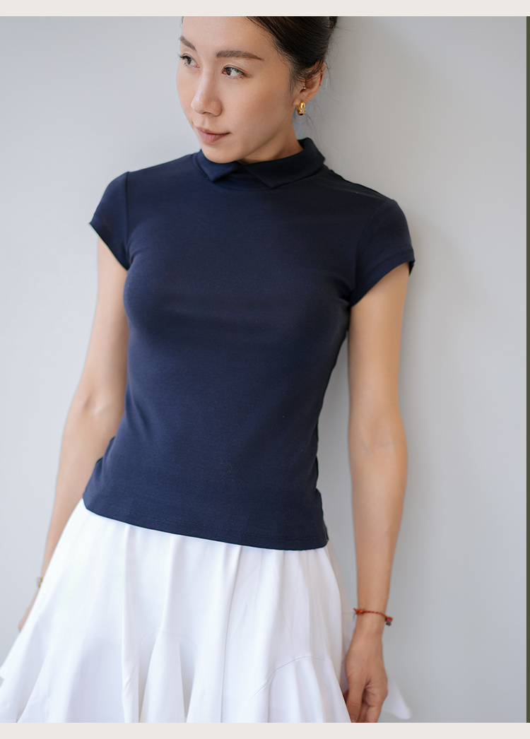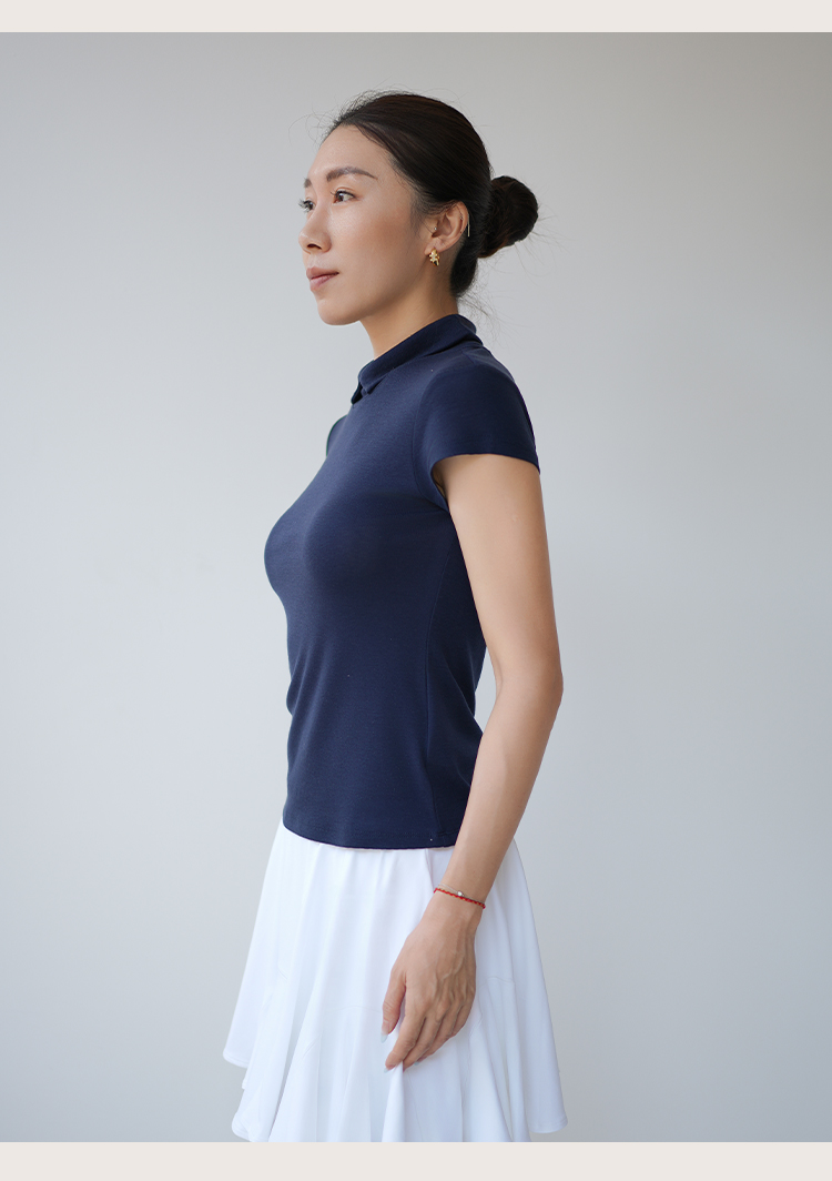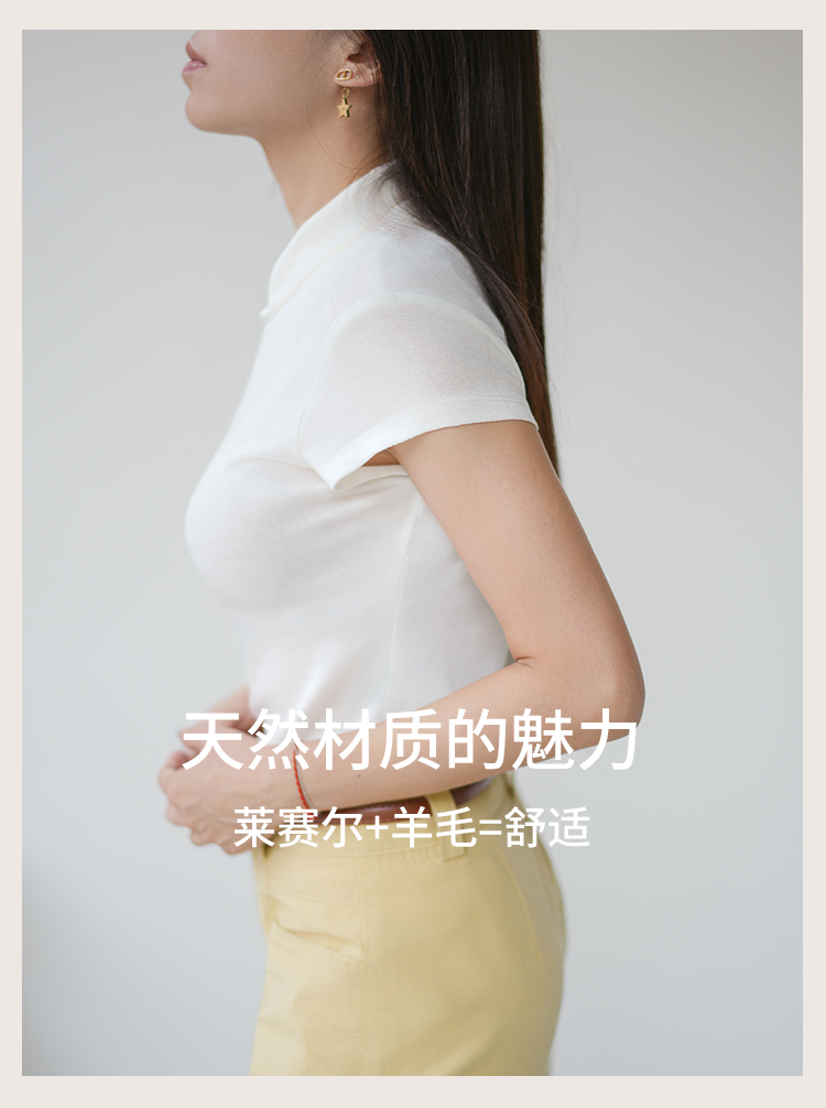 L RECNAVA 天丝莱赛尔 正肩翻领 气质修身短袖