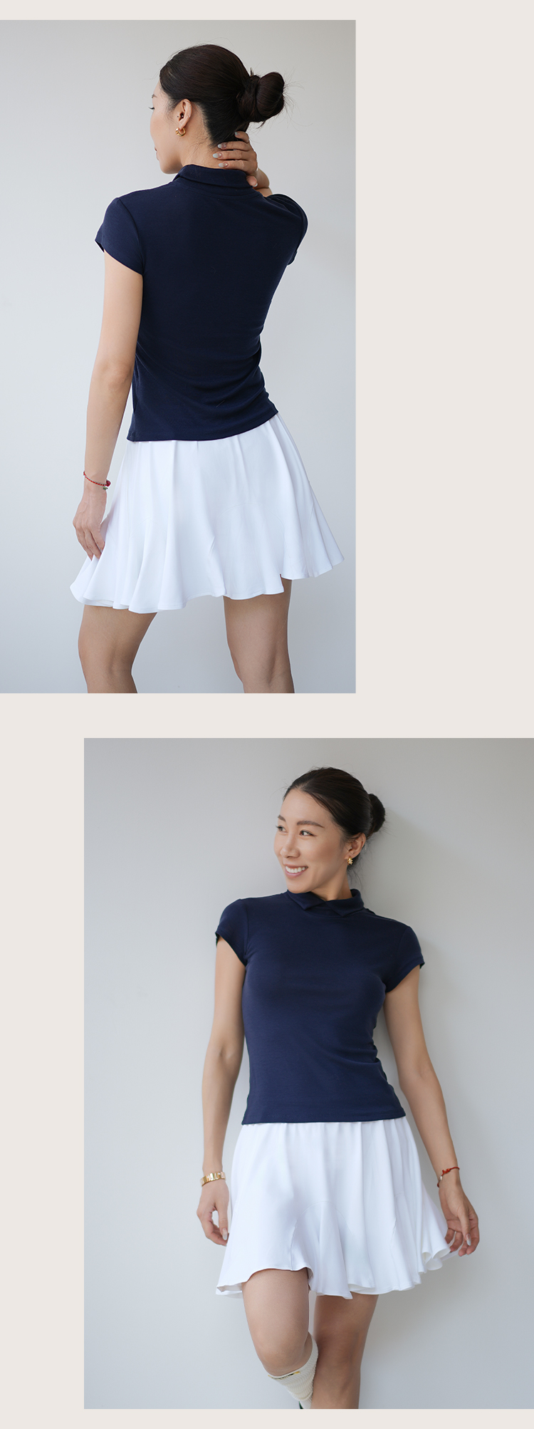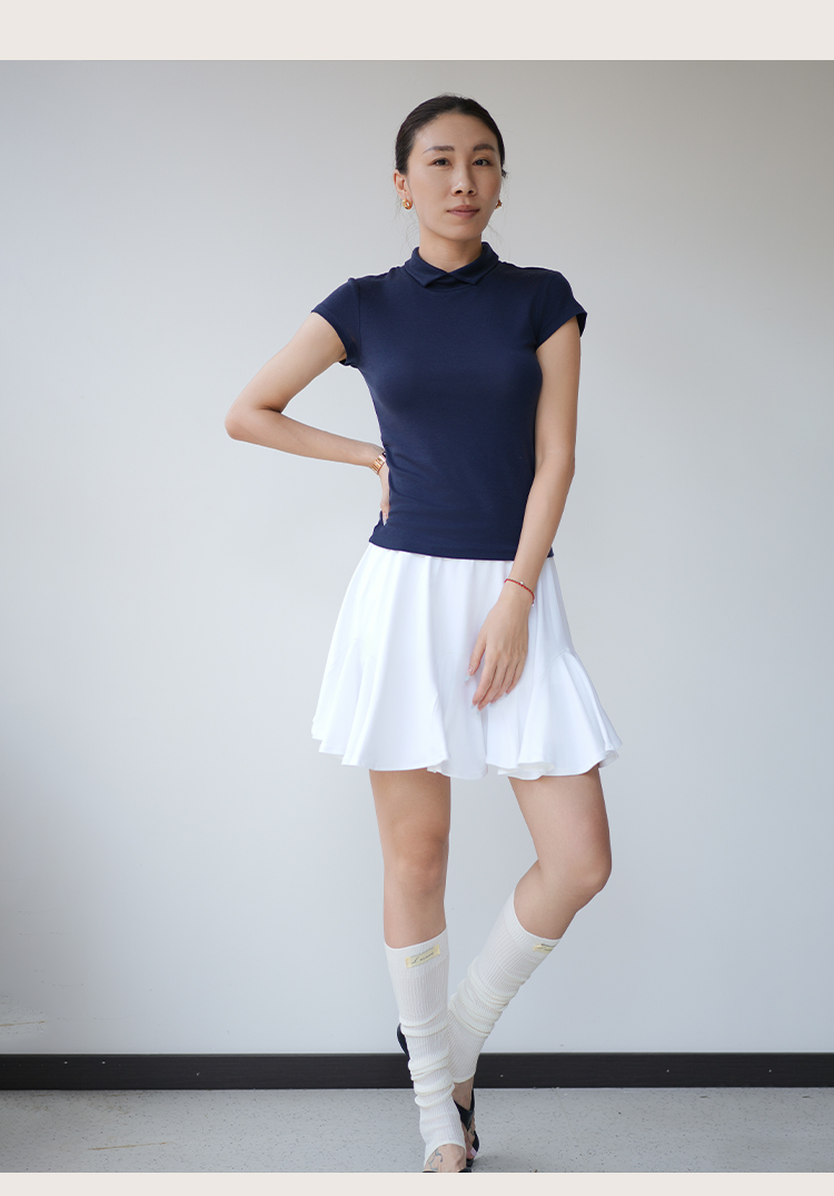 【100%棉】圆领运动休闲短裙套装 透气吸汗上衣+短裙 裤子松紧带内衬 防走光