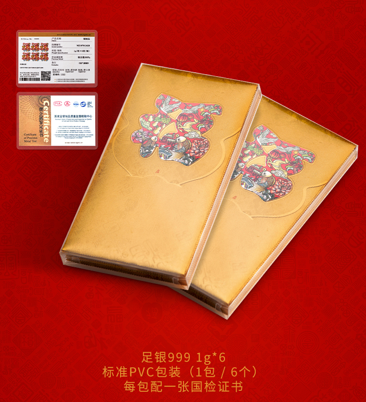 福气满满 舍不得丢弃的红包 品牌定制 专利工艺 足银999 1克*6枚